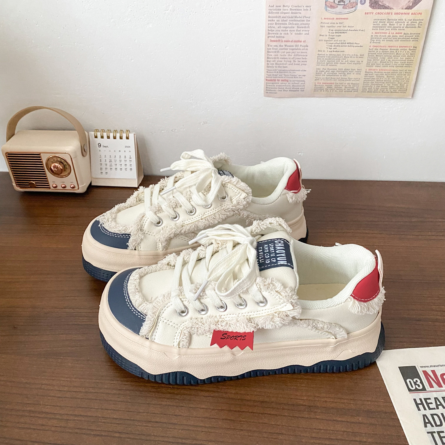 Xiaozhong 두꺼운 밑창 작은 흰색 신발 여성의 2024 봄과 가을 신입생 올 매치 캔버스 신발 캐주얼 스포츠 보드 신발스토어 가기