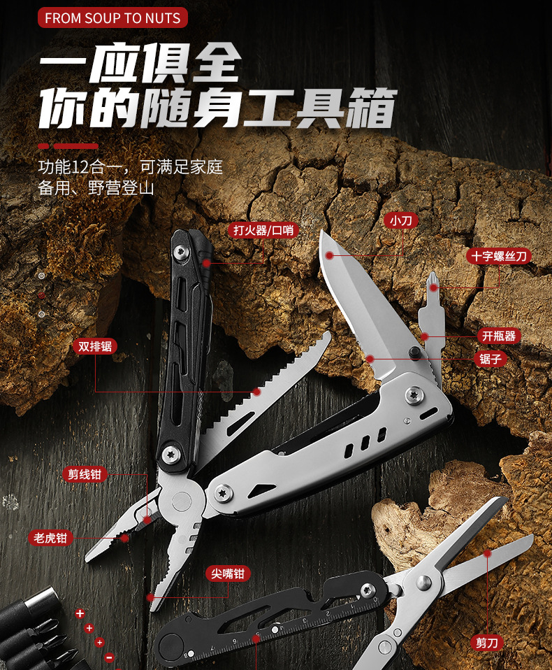 야외 다기능 도구 펜치 자동차 휴대용 접이식 펜치 캠핑 다목적 공구 벨트 부싯돌 이중 목적 절단 펜치스토어 가기