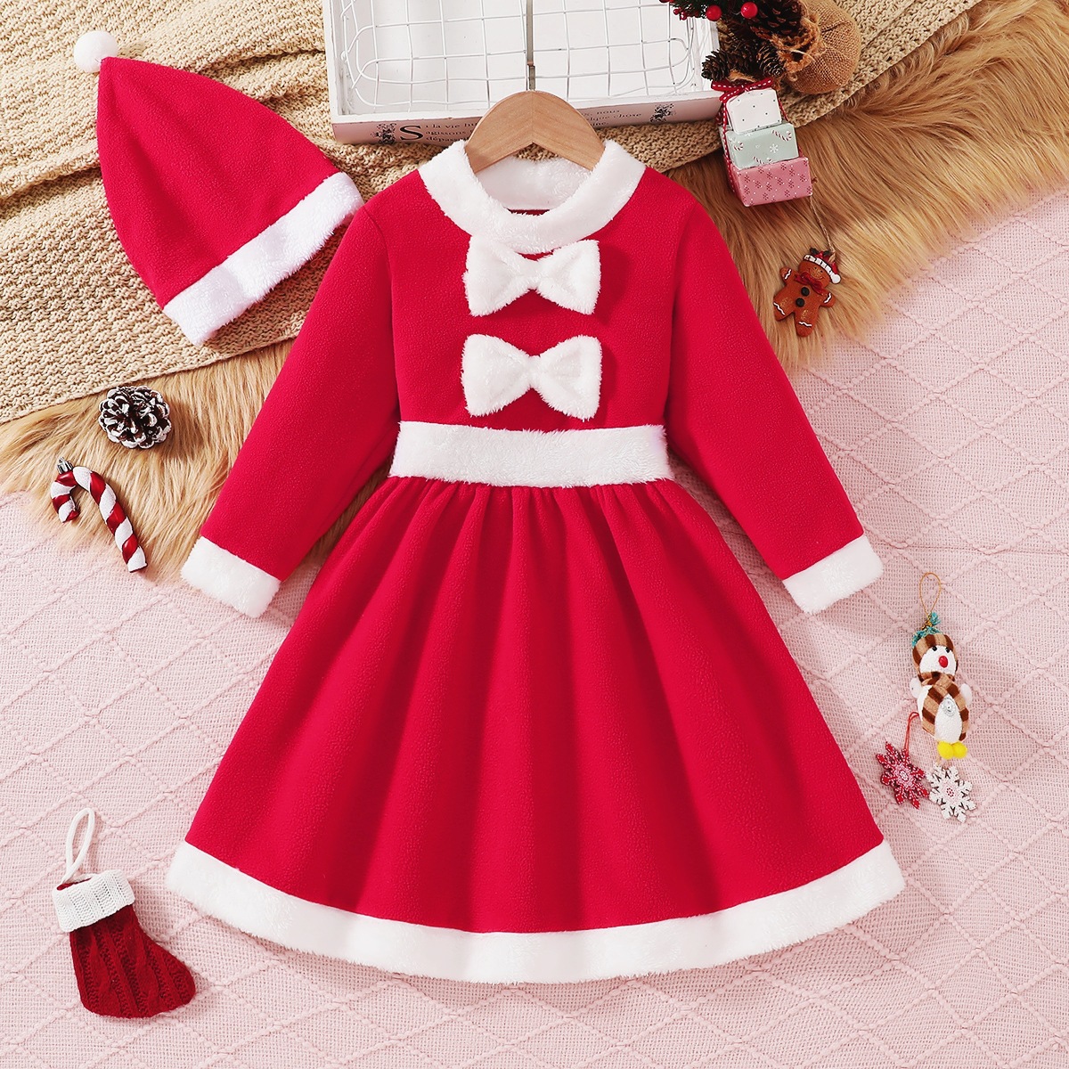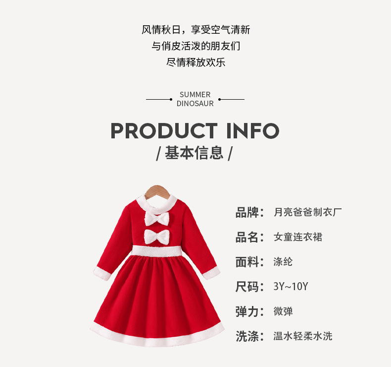 국경을 넘는 소녀 드레스 빨간 모자 귀여운 라운드 넥 입체 리본 공연복 어린이 축제 롱 드레스