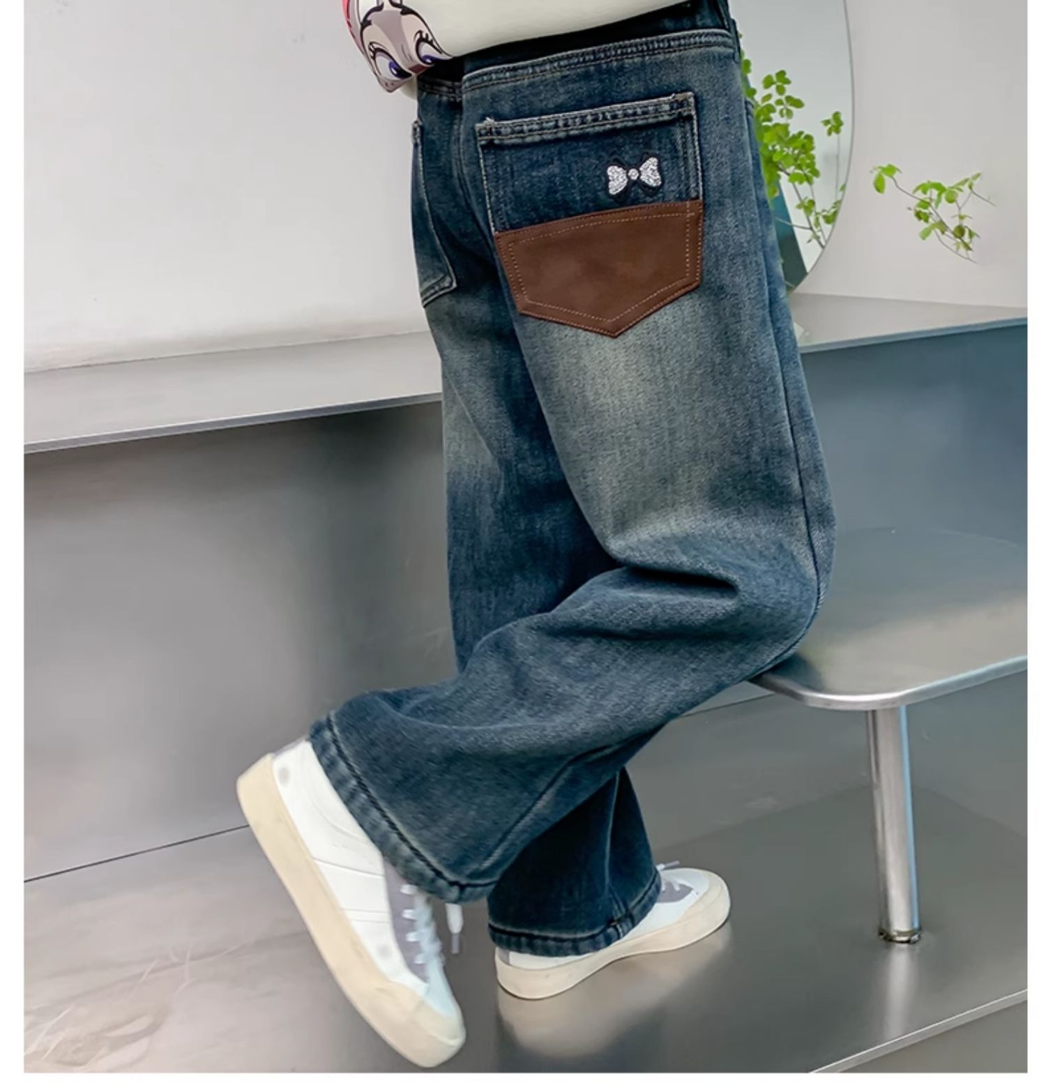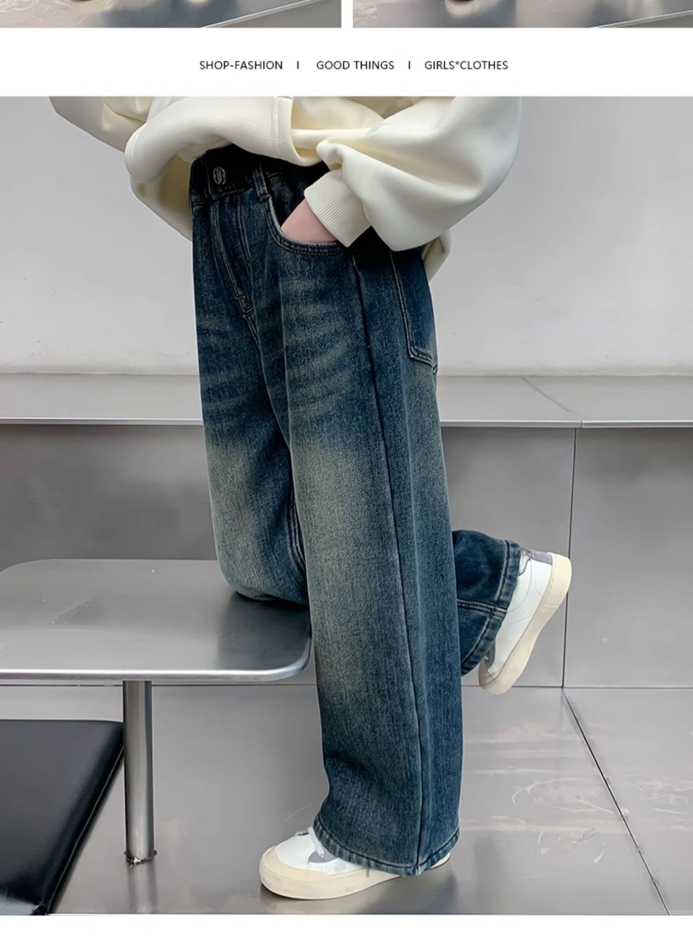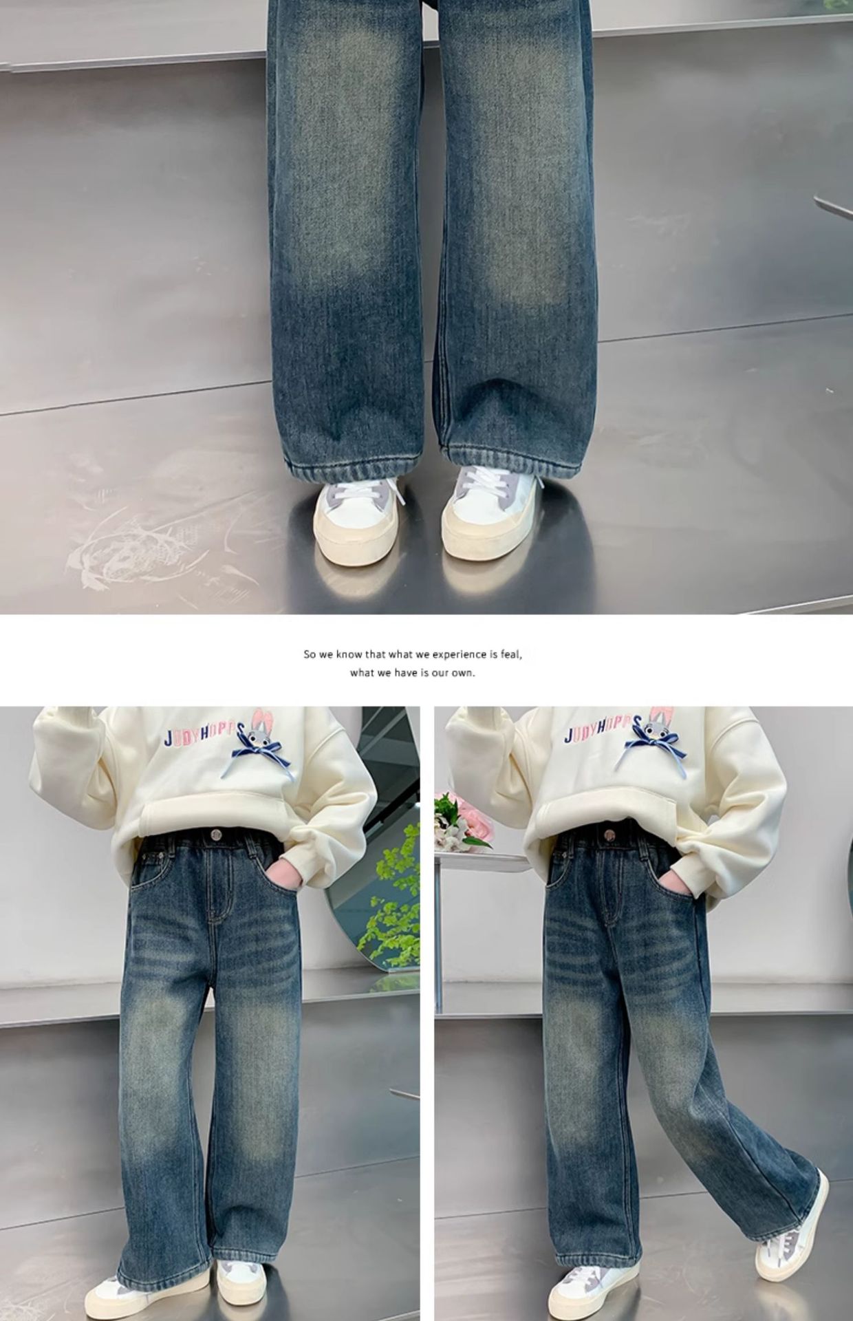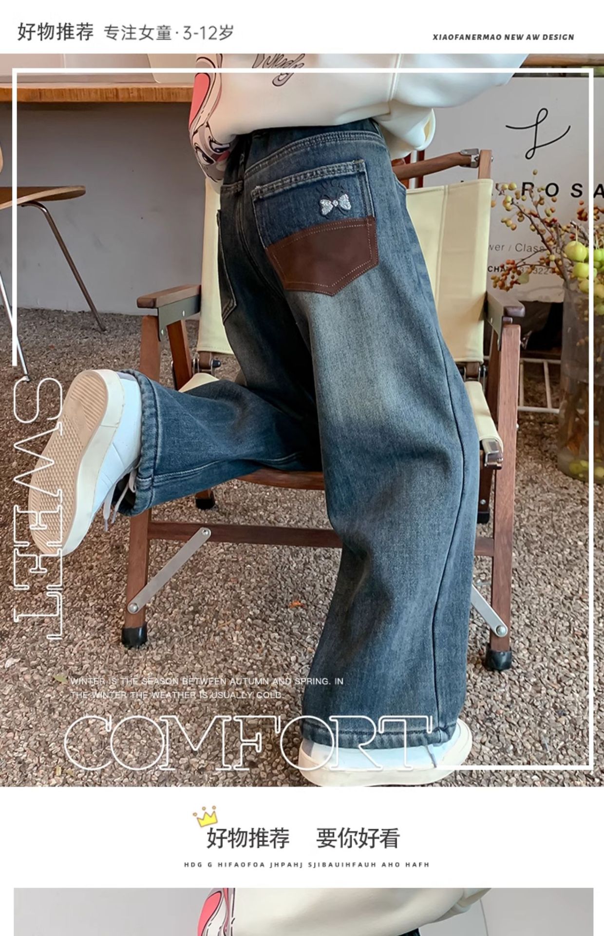 소녀 청바지 2024 가을과 겨울 새로운 스타일 어린이 서양식 기모 두꺼운 바지 어린이 겨울 외부 바지