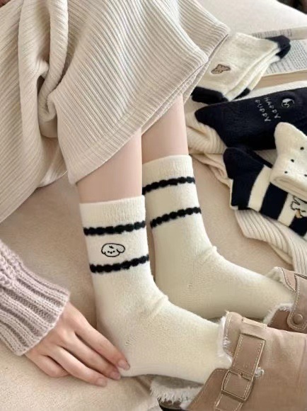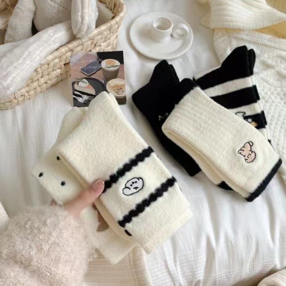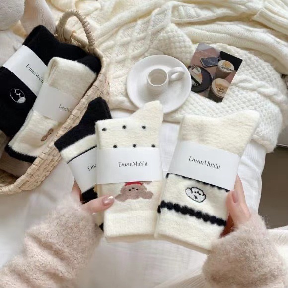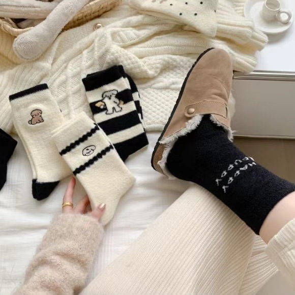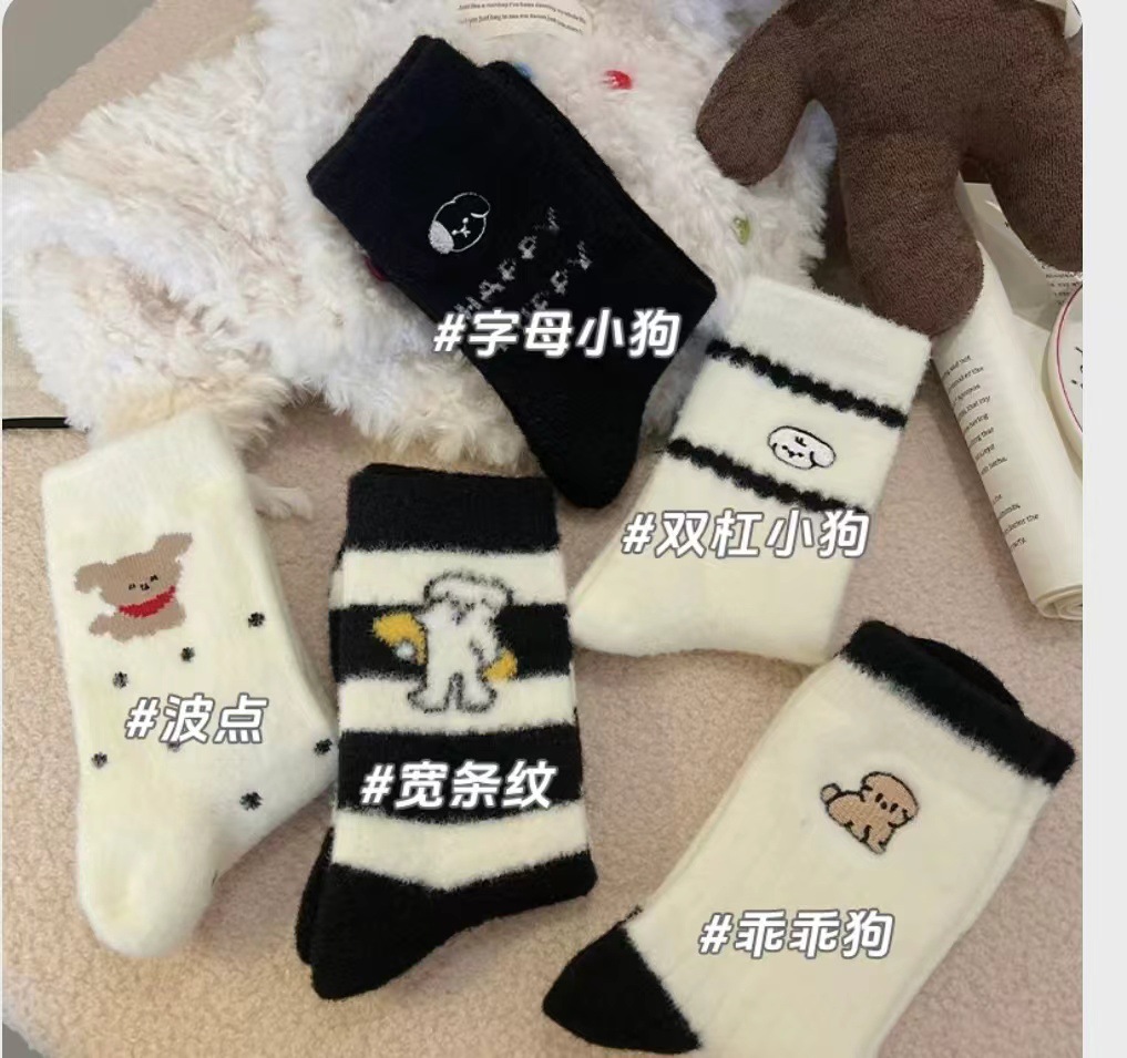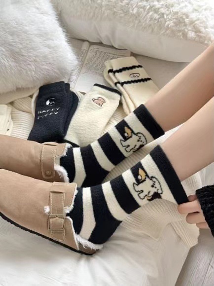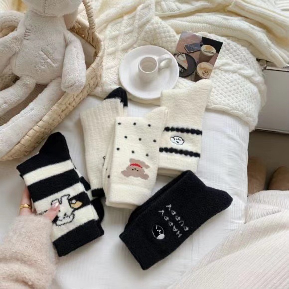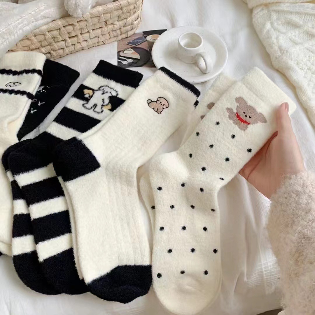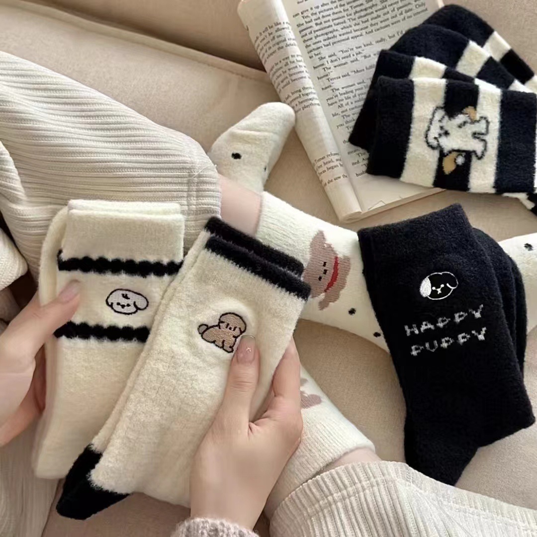 여성용 호주 벨벳 강아지 미드 튜브 양말 가을과 겨울 기모 두꺼운 따뜻한 일본 스타일 귀여운 흰색 봉제 팩 양말스토어 가기