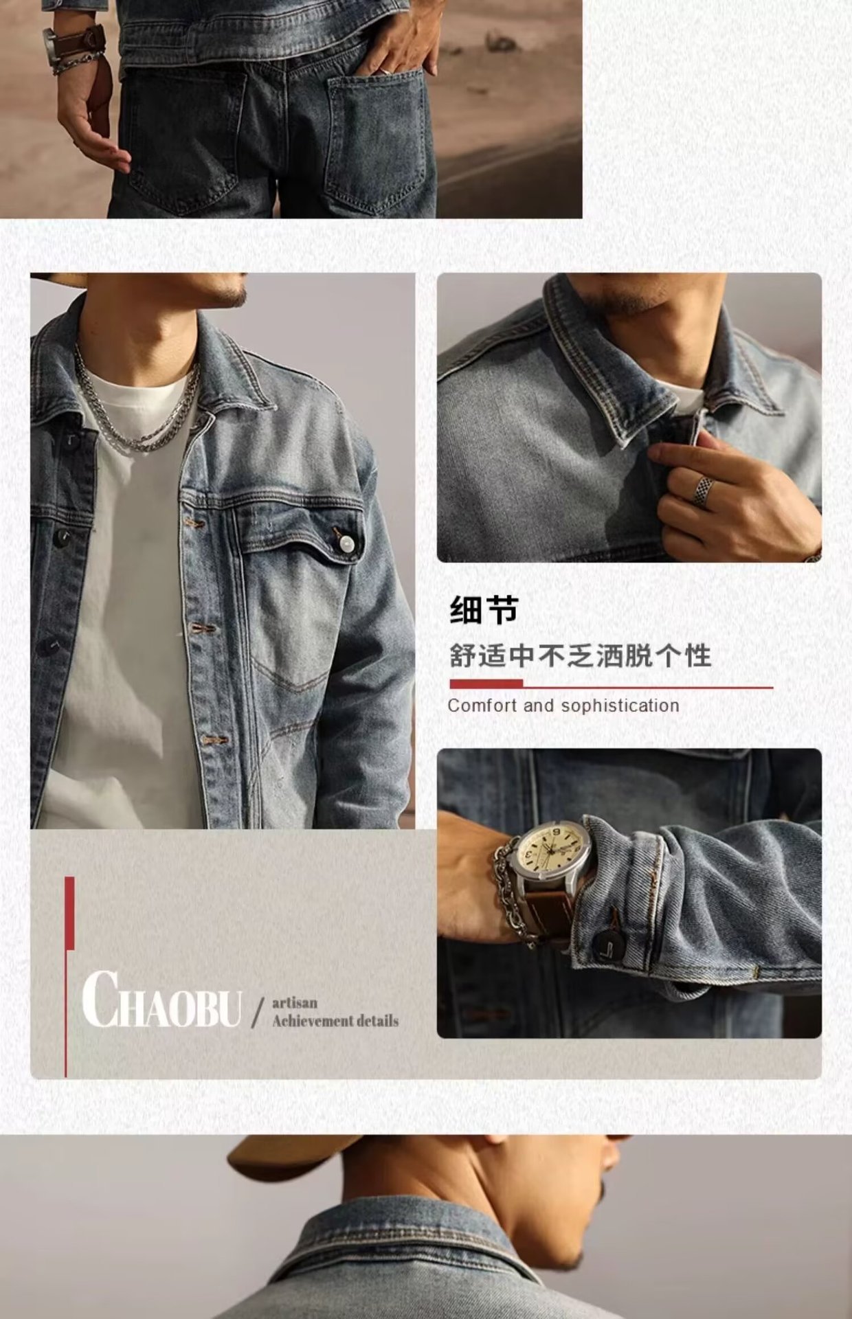일본 빈티지 올드 데님 재킷 남자 2024 가을 무거운 세탁 슬리밍 올 매치 캐주얼 자켓 트렌드스토어 가기