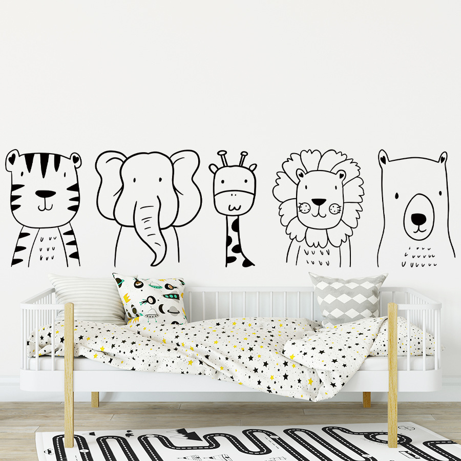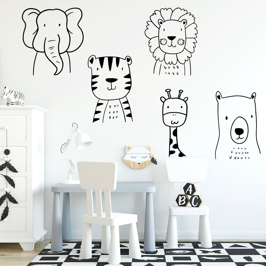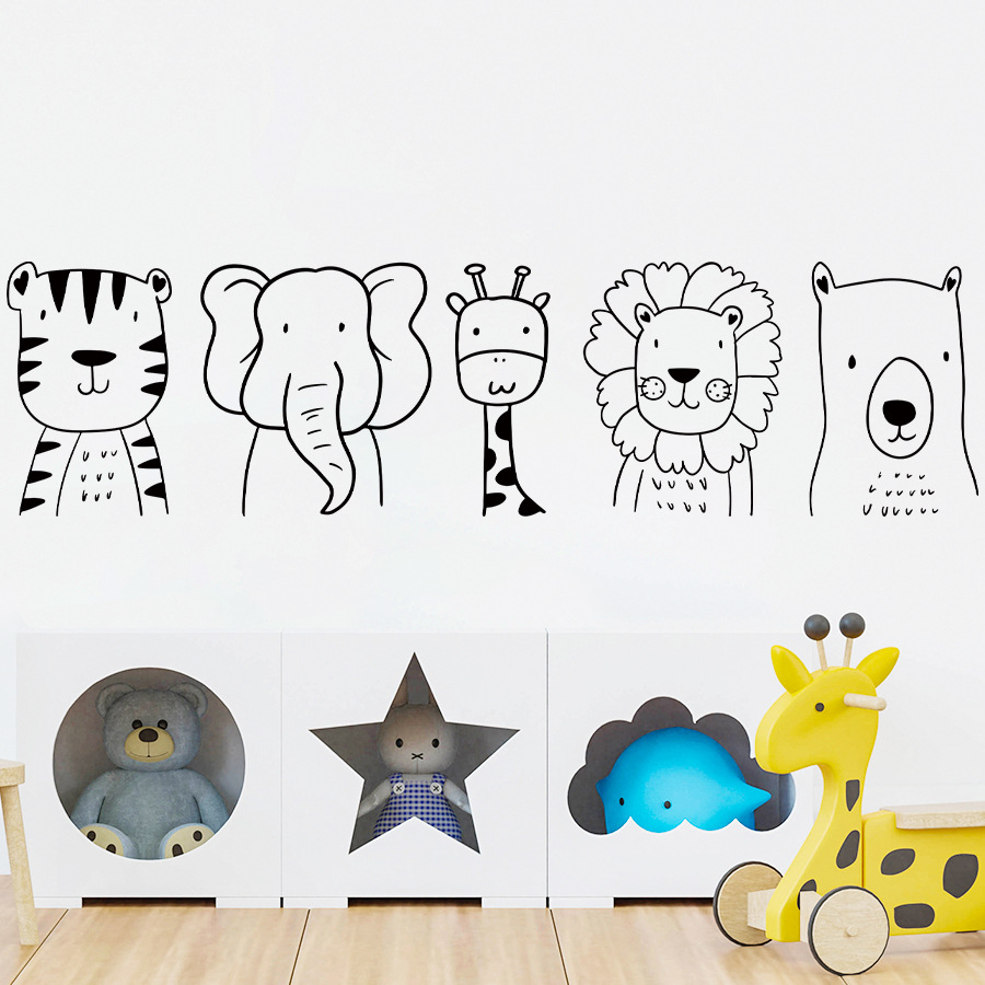 만화 귀여운 간단한 작은 동물 자기 접착 벽 스티커 어린이 방 유치원 장식 스티커 ZN3062H스토어 가기
