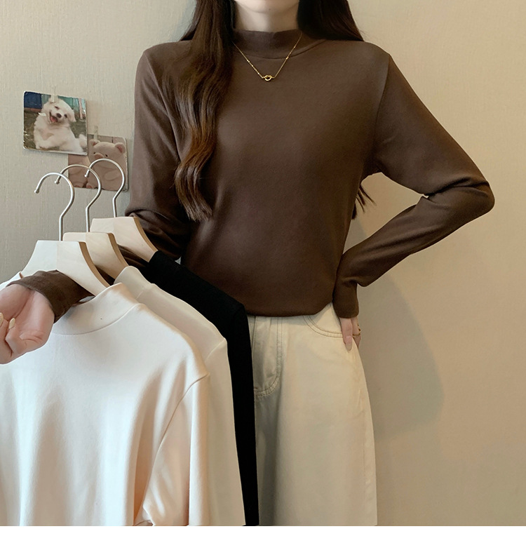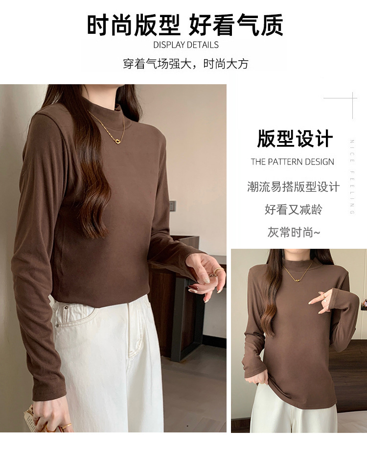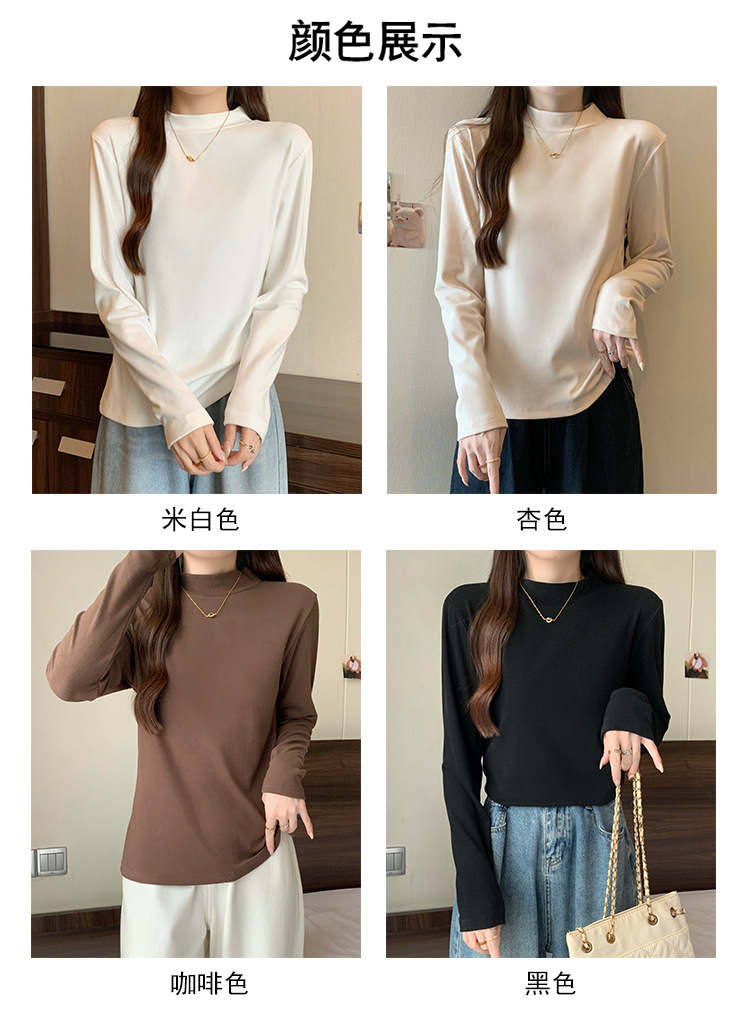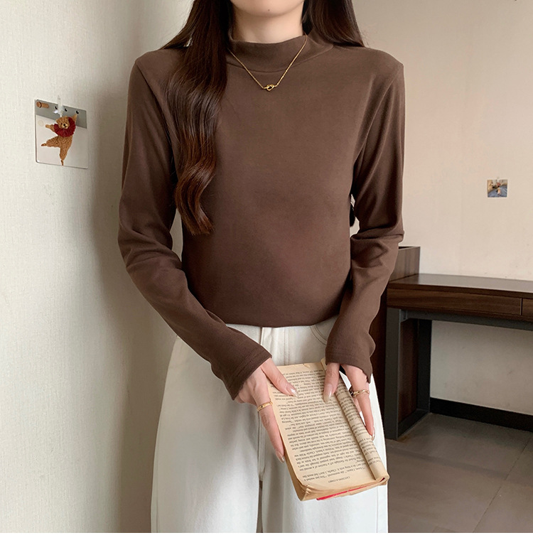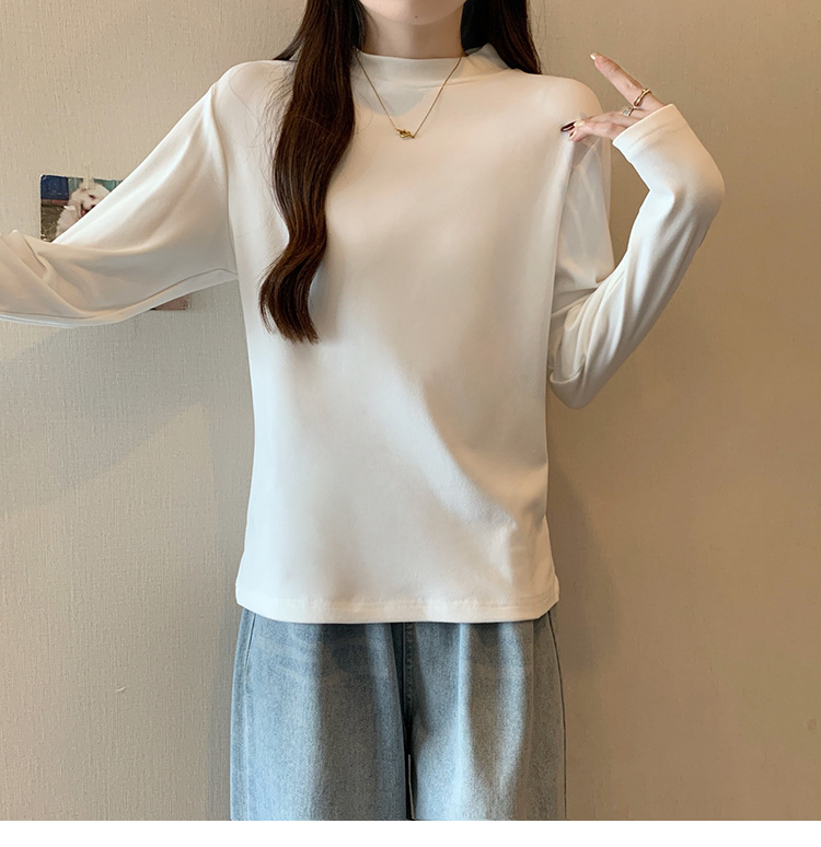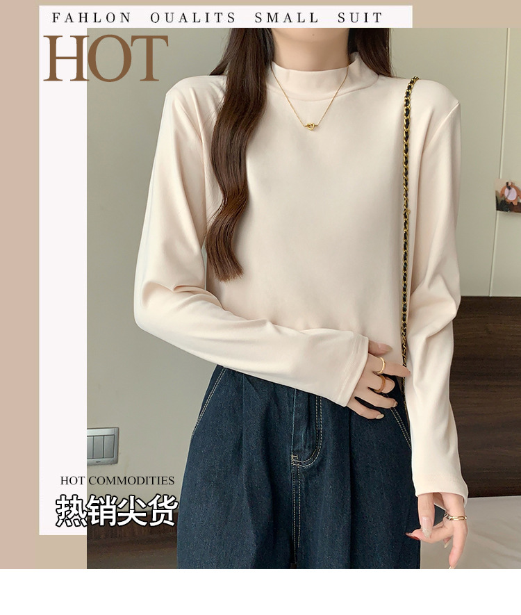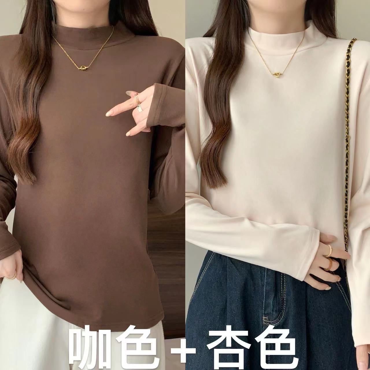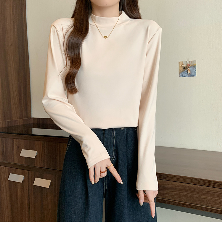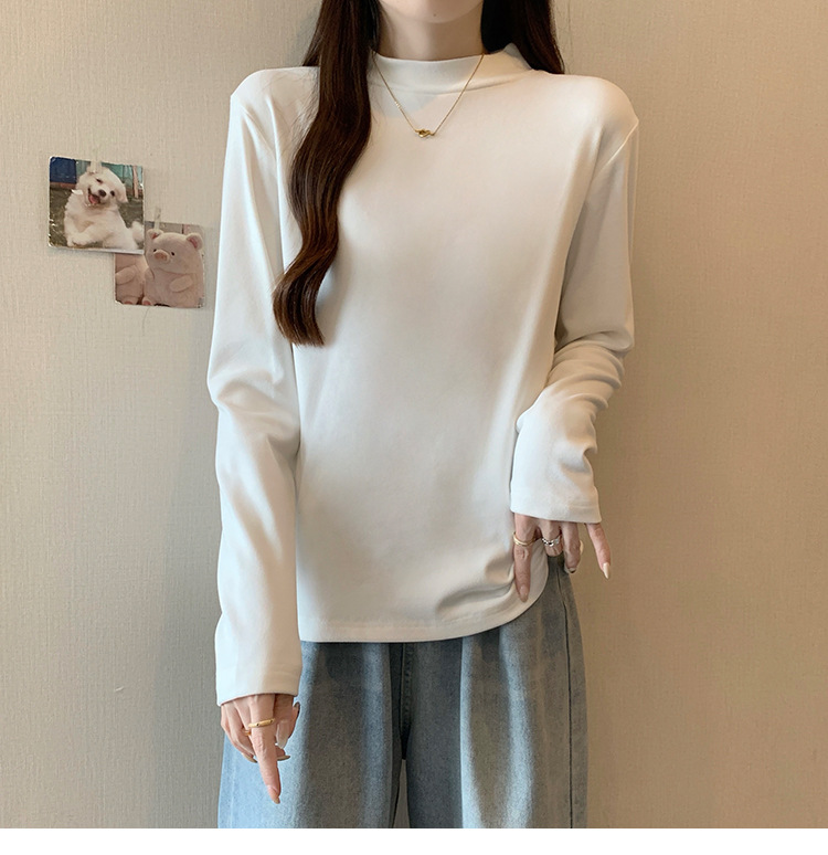 가을/겨울 세미 하이 칼라 벨벳 니트 바닥 셔츠 여성용 슬림 핏 벨벳 풀오버 티셔츠 66233 #스토어 가기