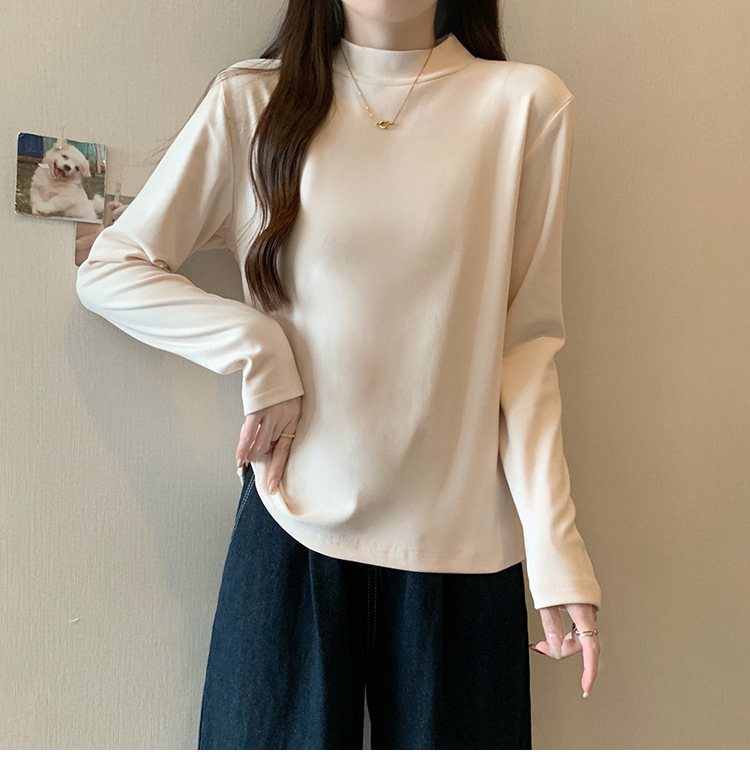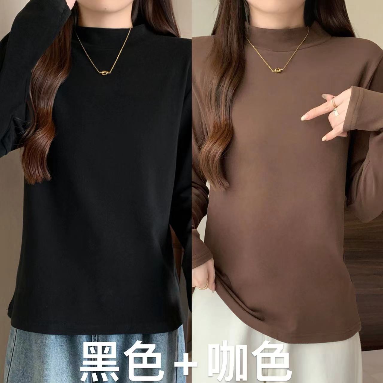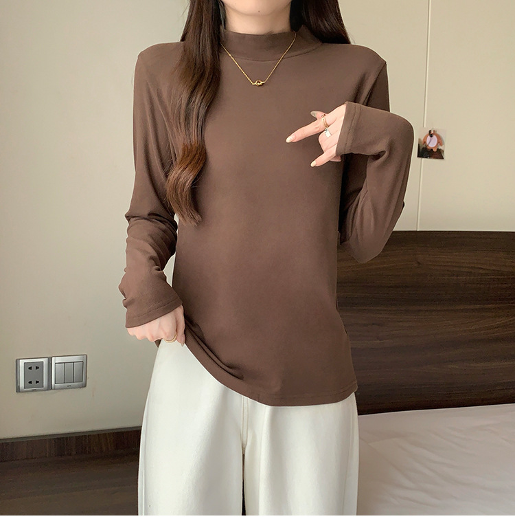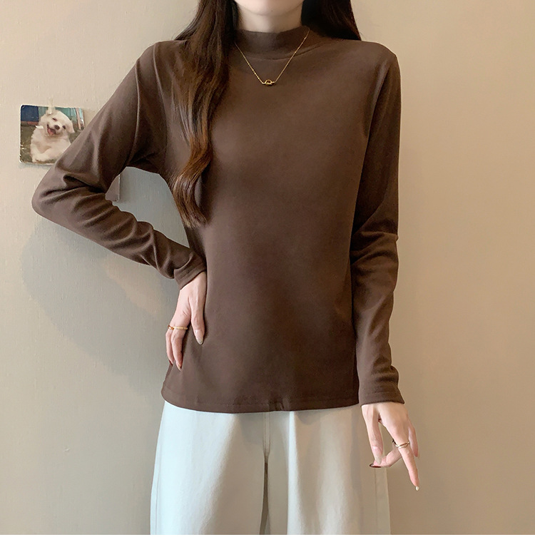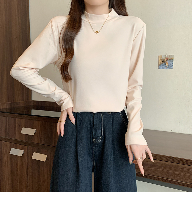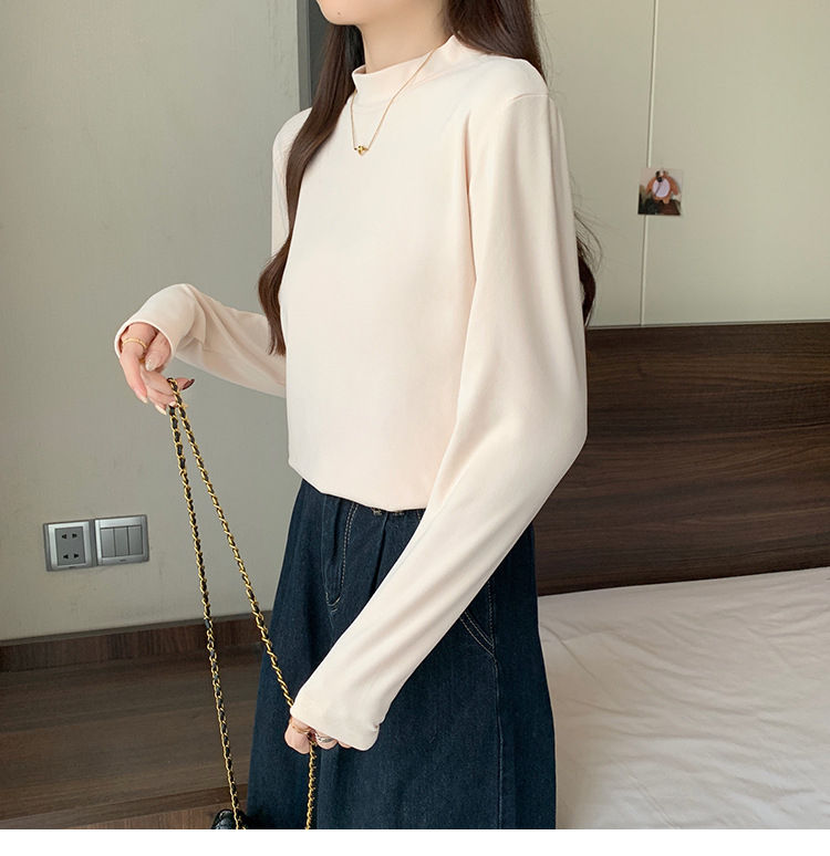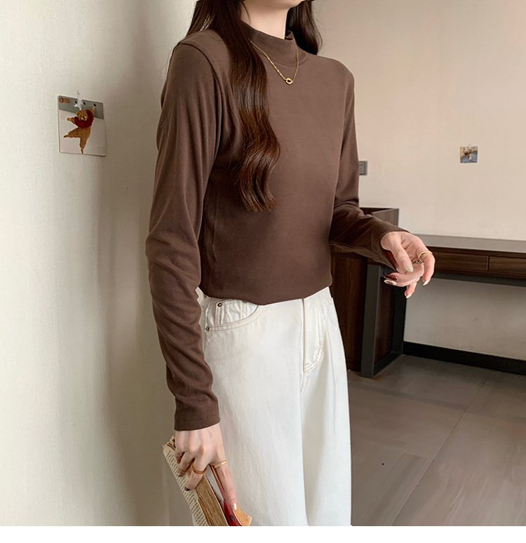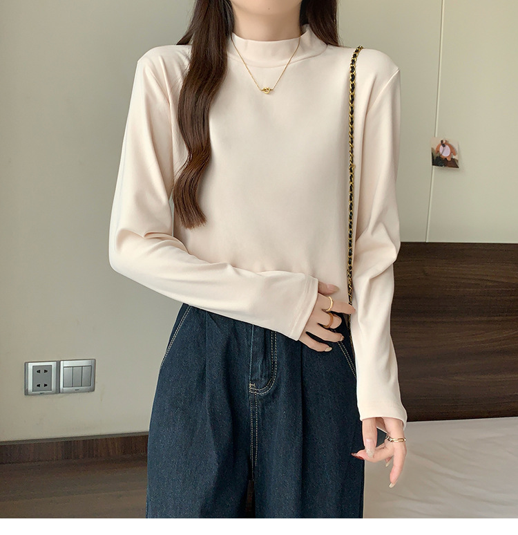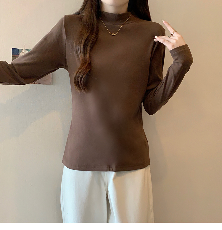 가을/겨울 세미 하이 칼라 벨벳 니트 바닥 셔츠 여성용 슬림 핏 벨벳 풀오버 티셔츠 66233 #스토어 가기