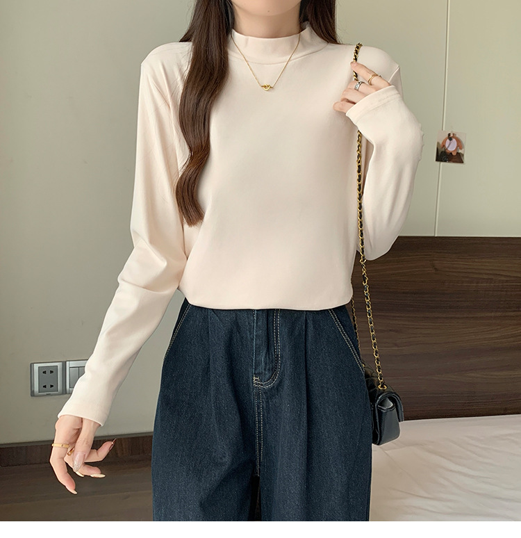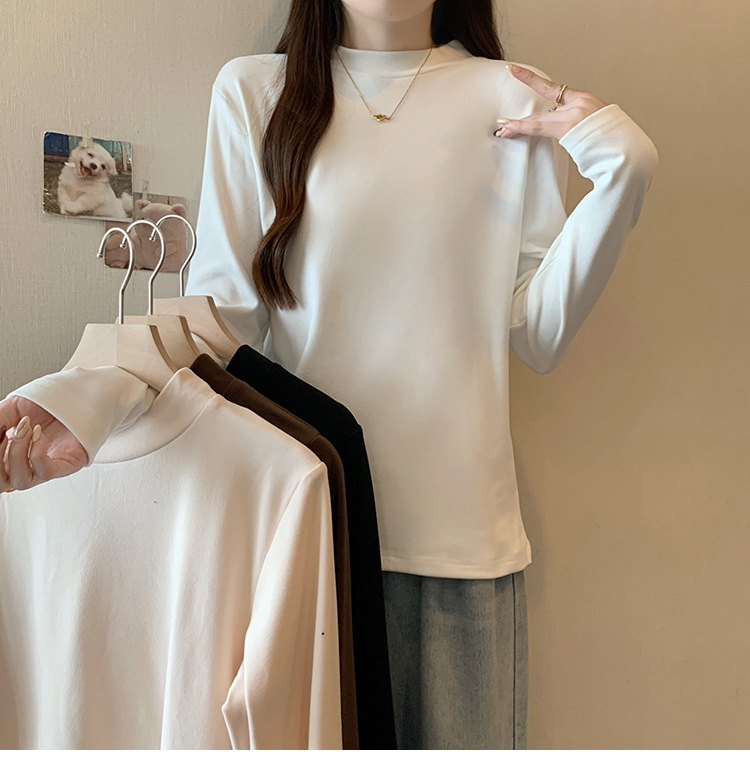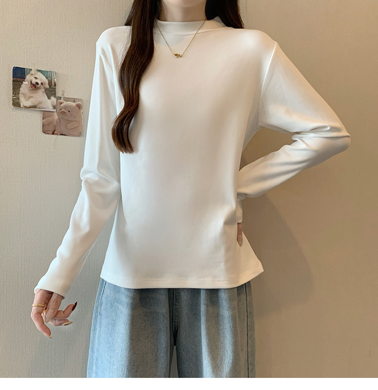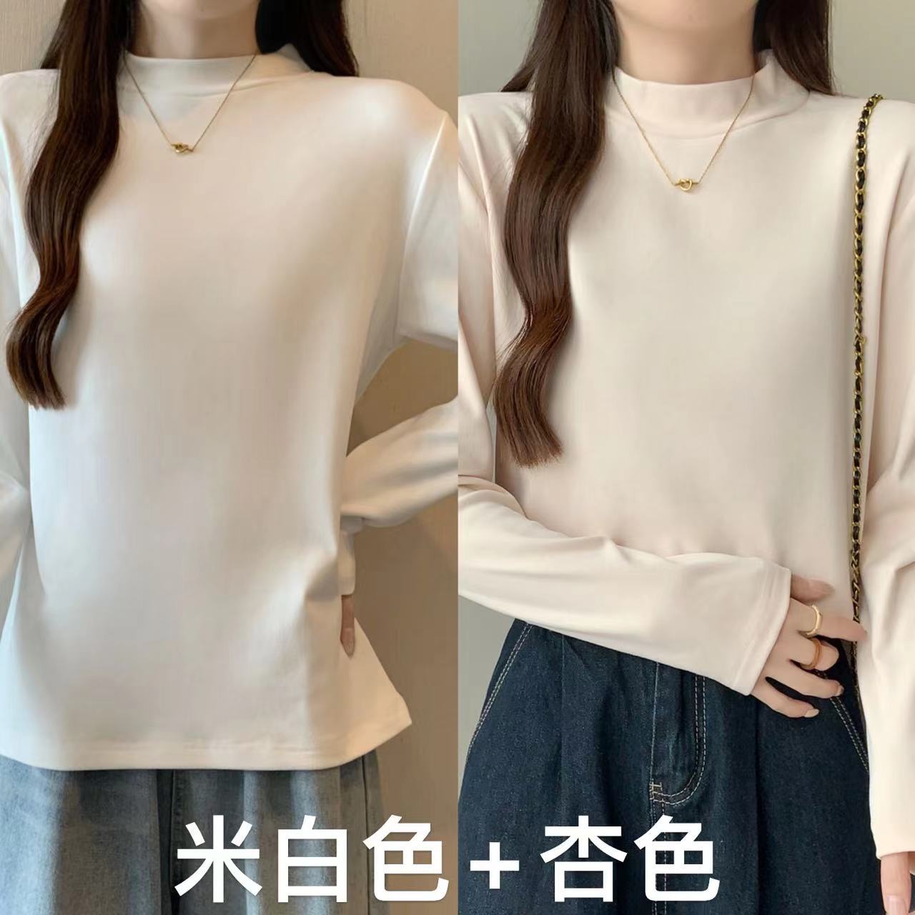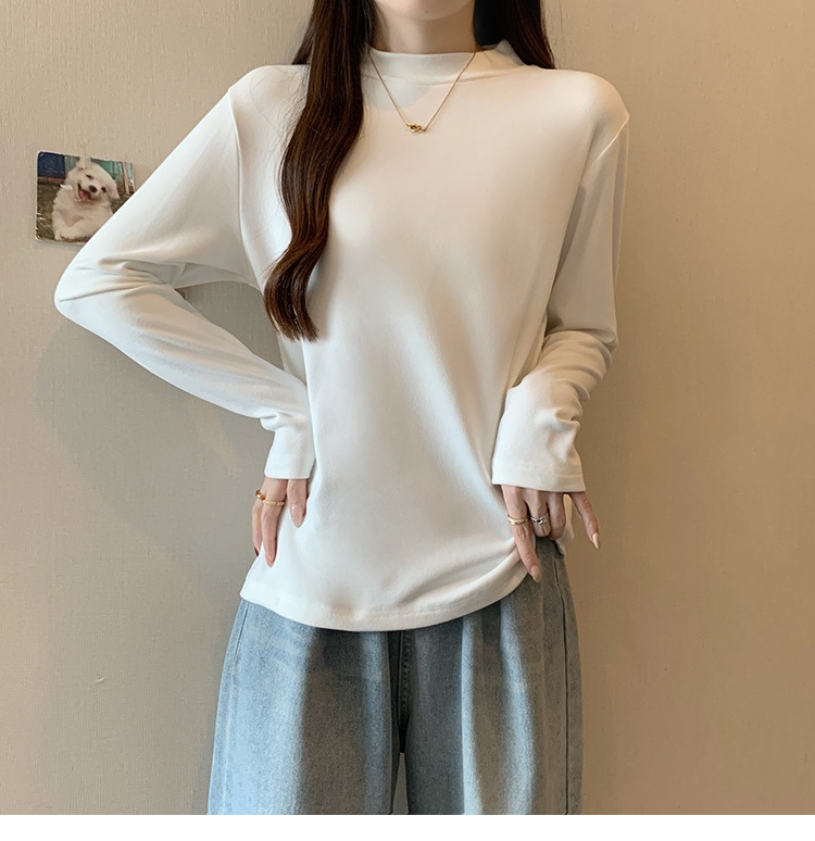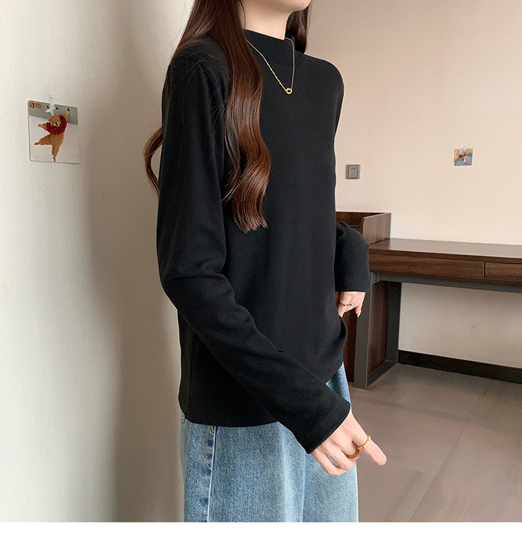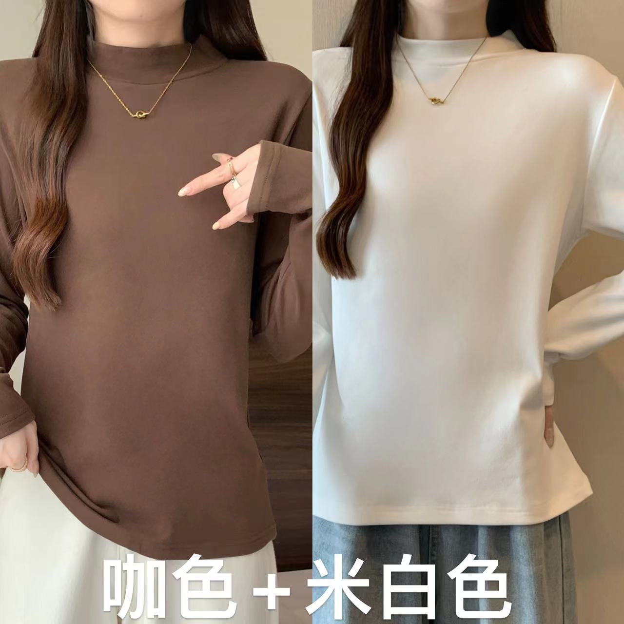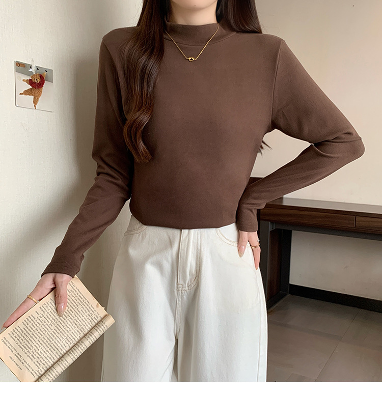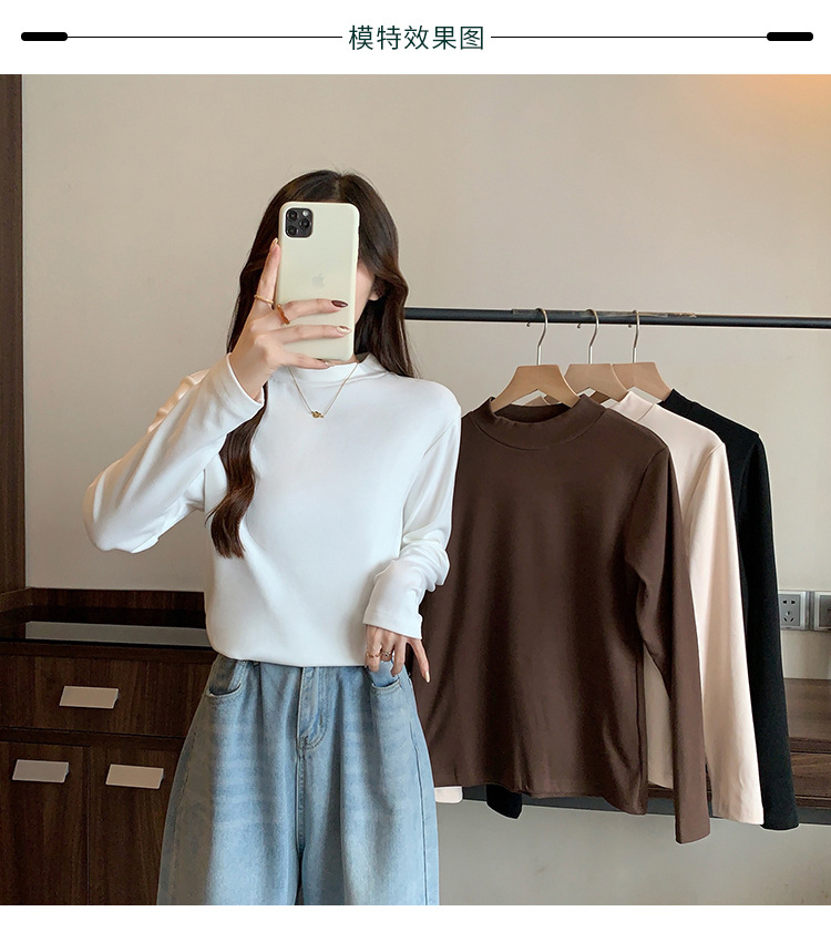 가을/겨울 세미 하이 칼라 벨벳 니트 바닥 셔츠 여성용 슬림 핏 벨벳 풀오버 티셔츠 66233 #스토어 가기