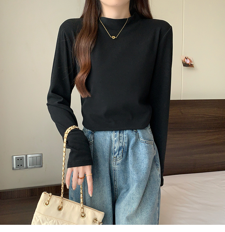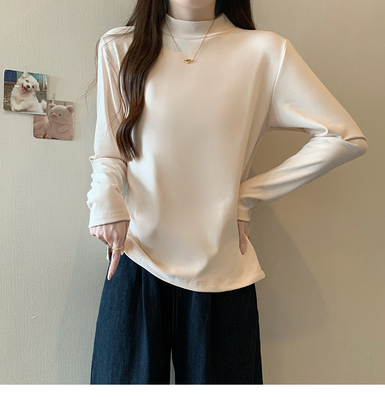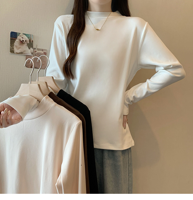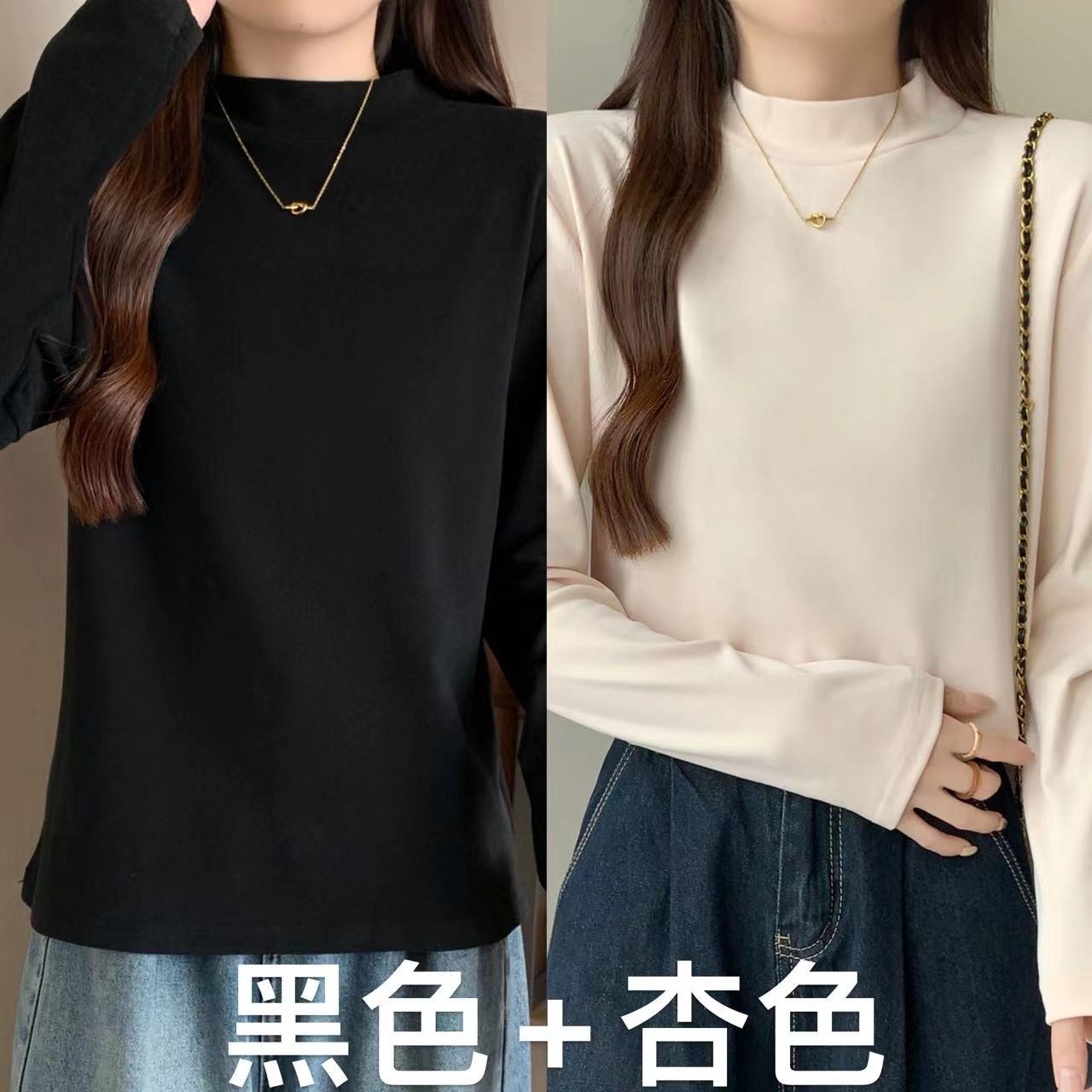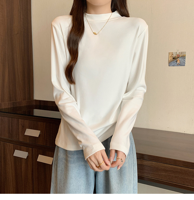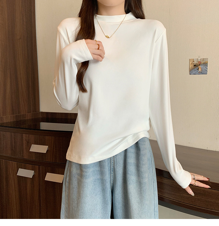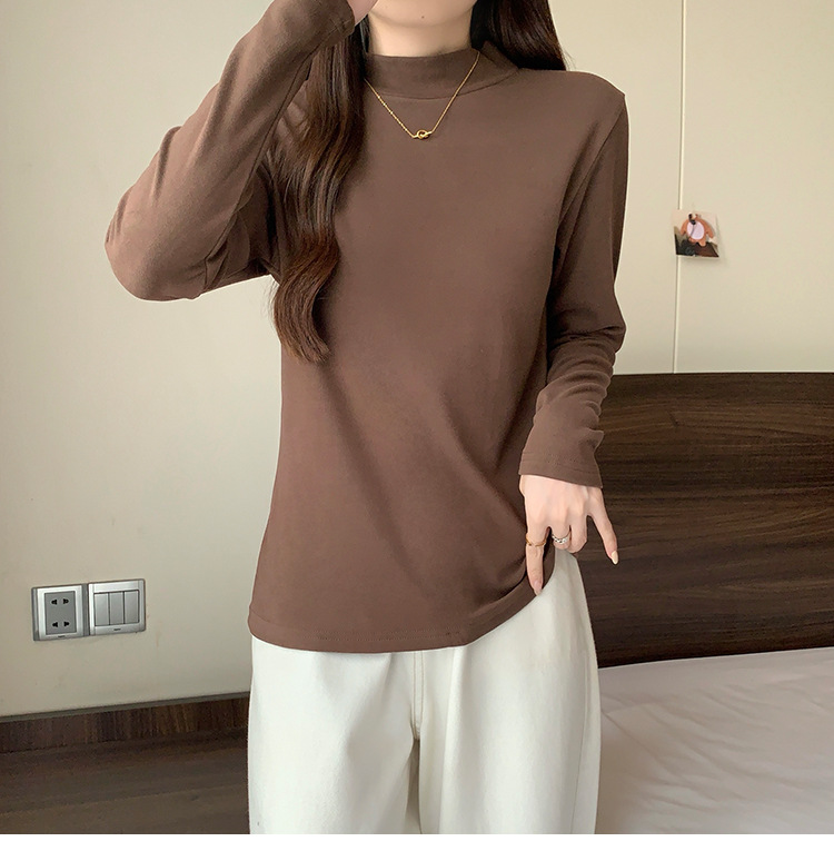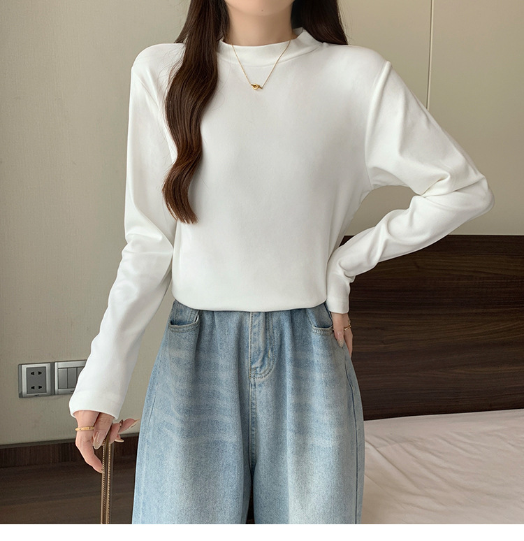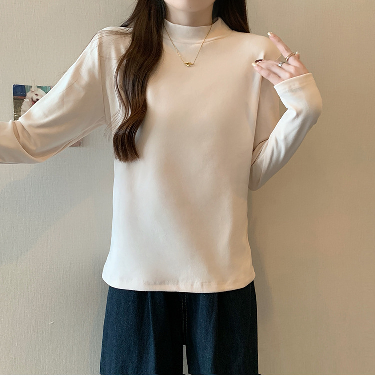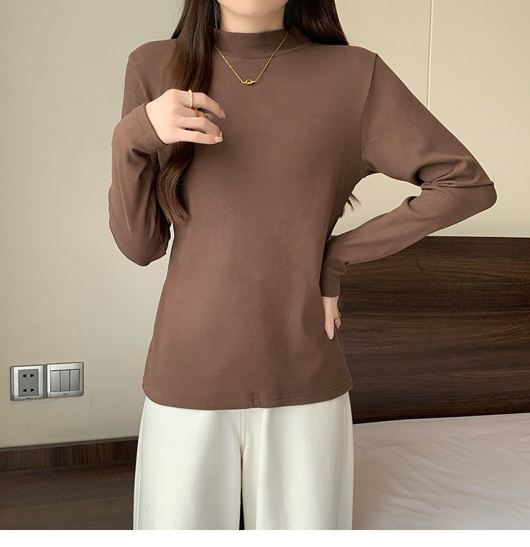 가을/겨울 세미 하이 칼라 벨벳 니트 바닥 셔츠 여성용 슬림 핏 벨벳 풀오버 티셔츠 66233 #스토어 가기