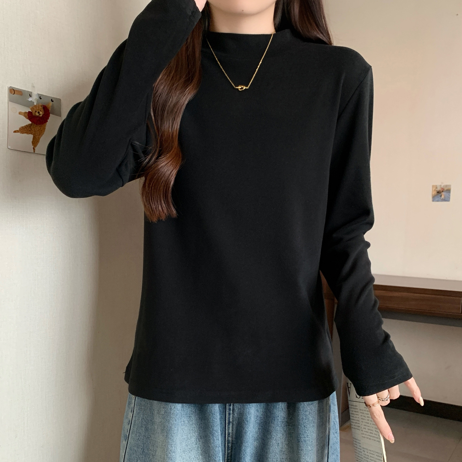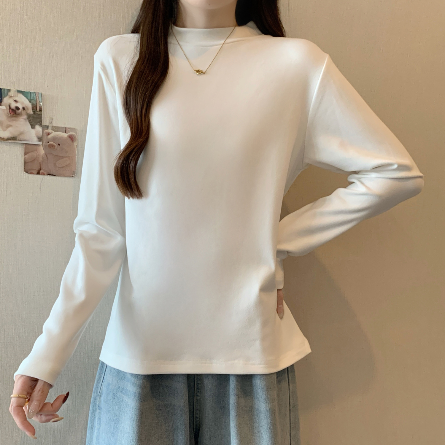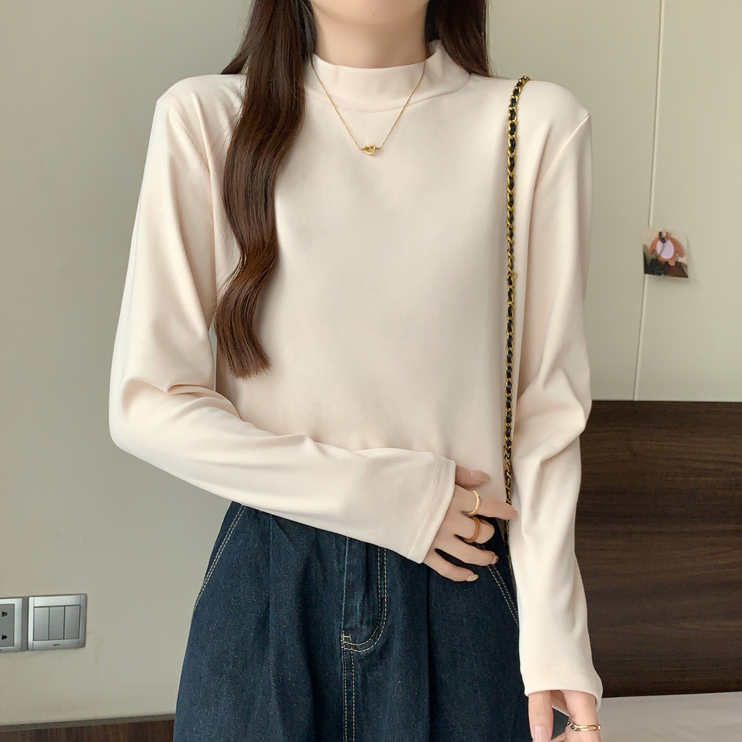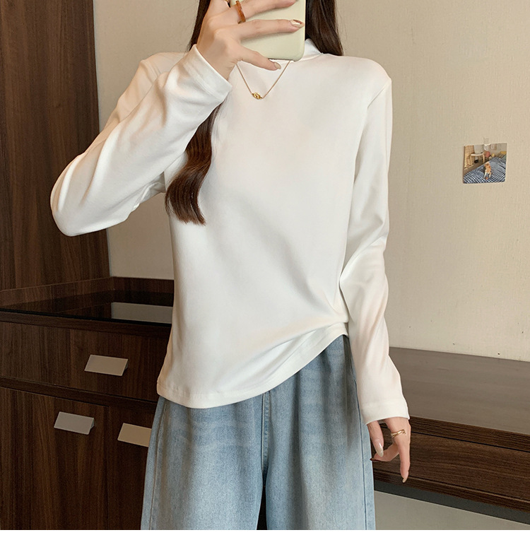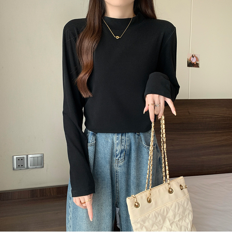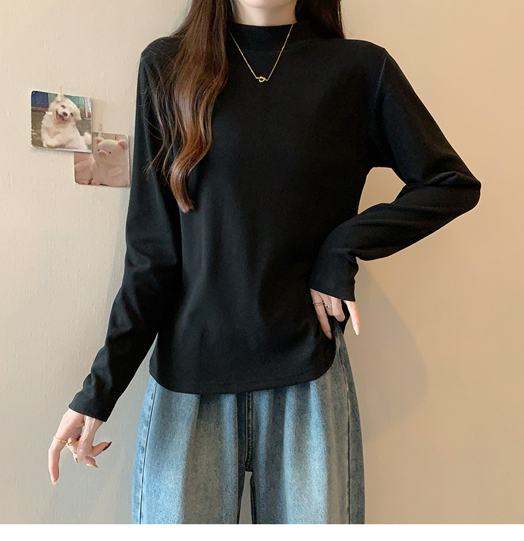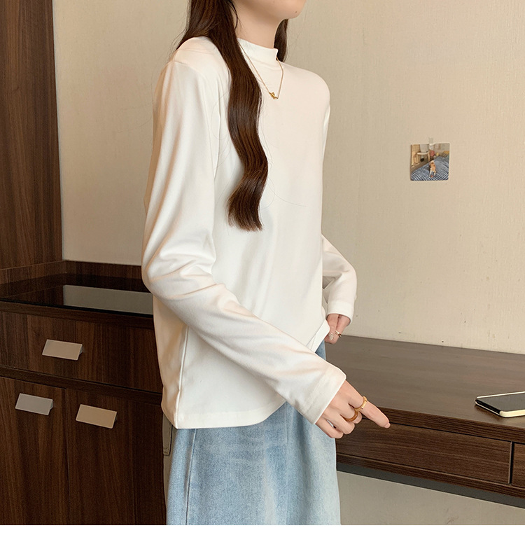 가을/겨울 세미 하이 칼라 벨벳 니트 바닥 셔츠 여성용 슬림 핏 벨벳 풀오버 티셔츠 66233 #스토어 가기