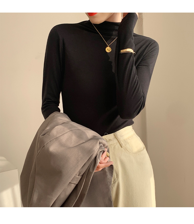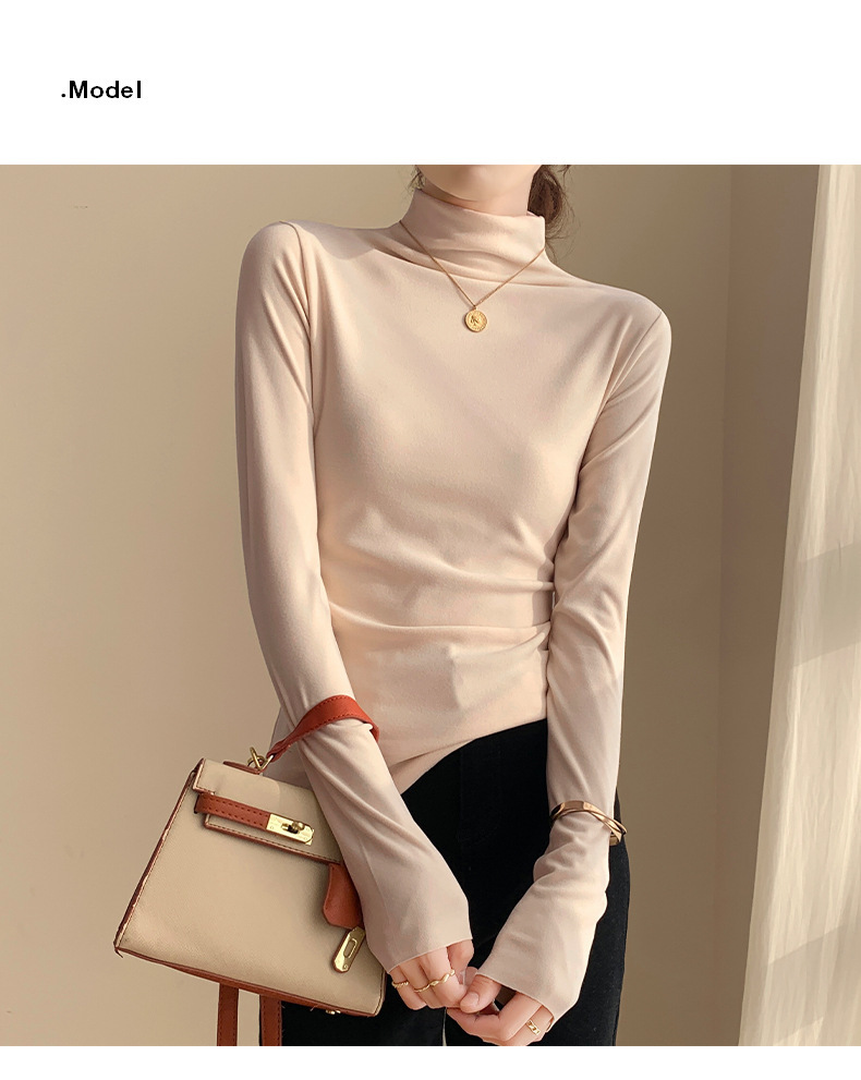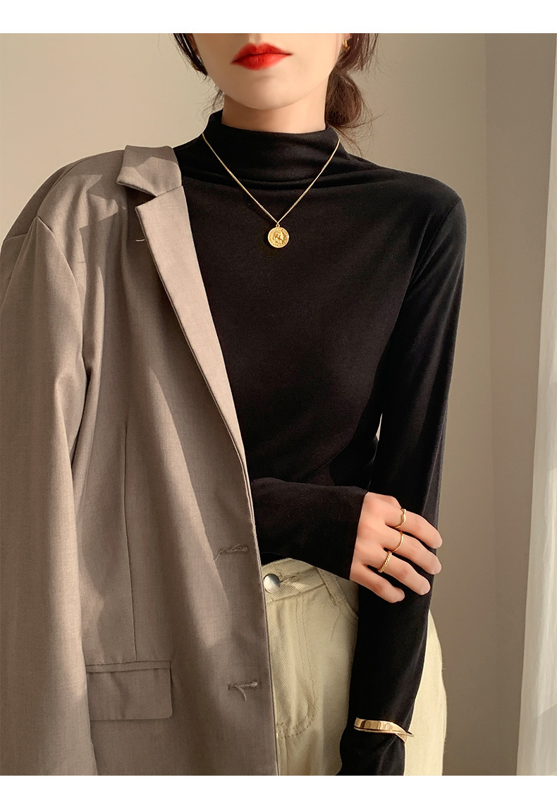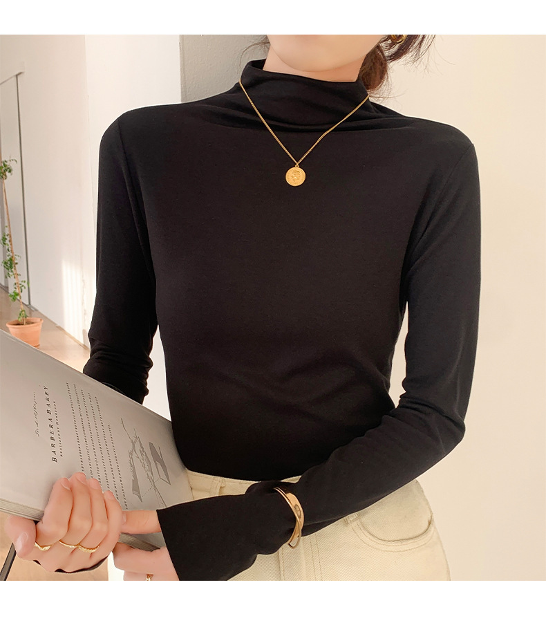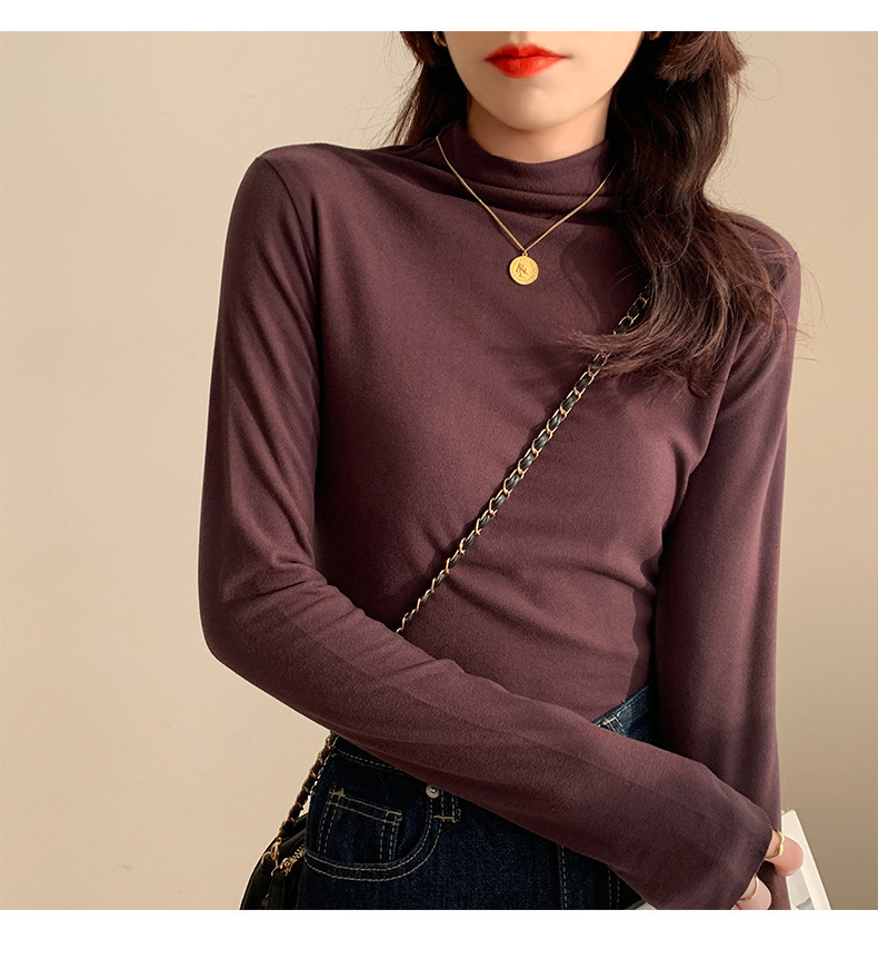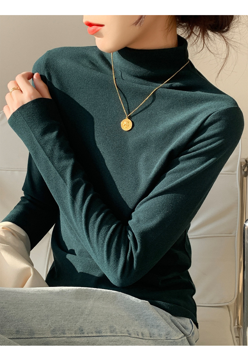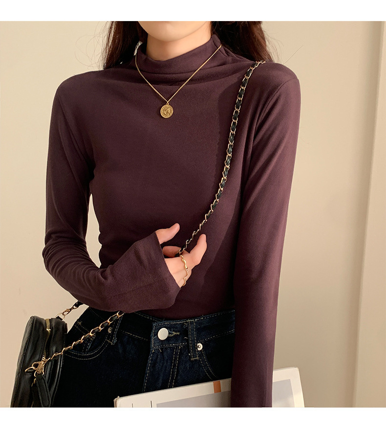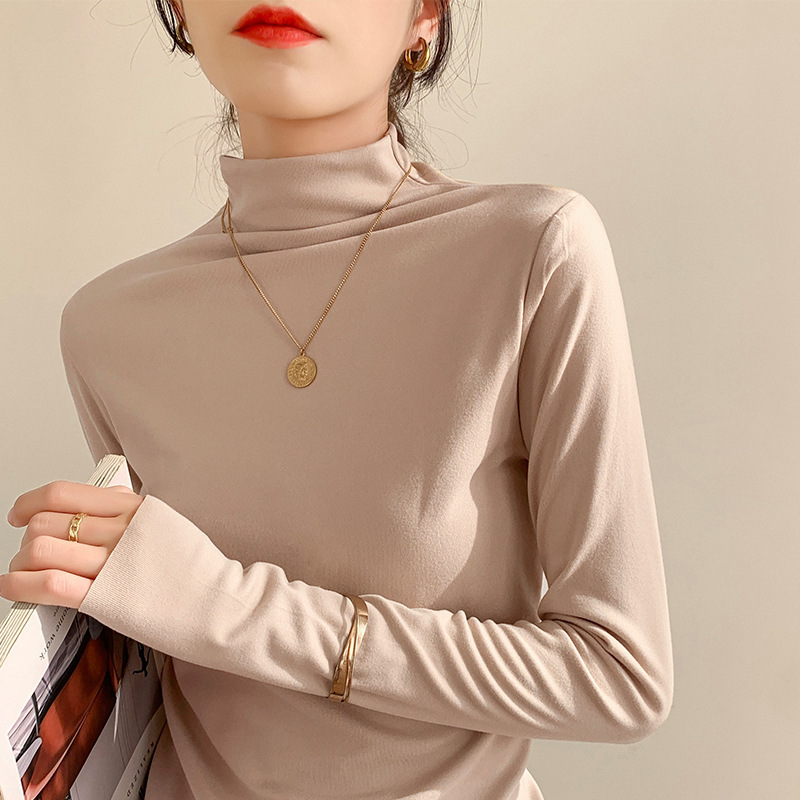 하프 하이 칼라 양면 벨벳 하단셔츠 여성용 가을과 겨울 새로운 한국식 슬림 핏 이너 기모 따뜻한 긴팔 탑