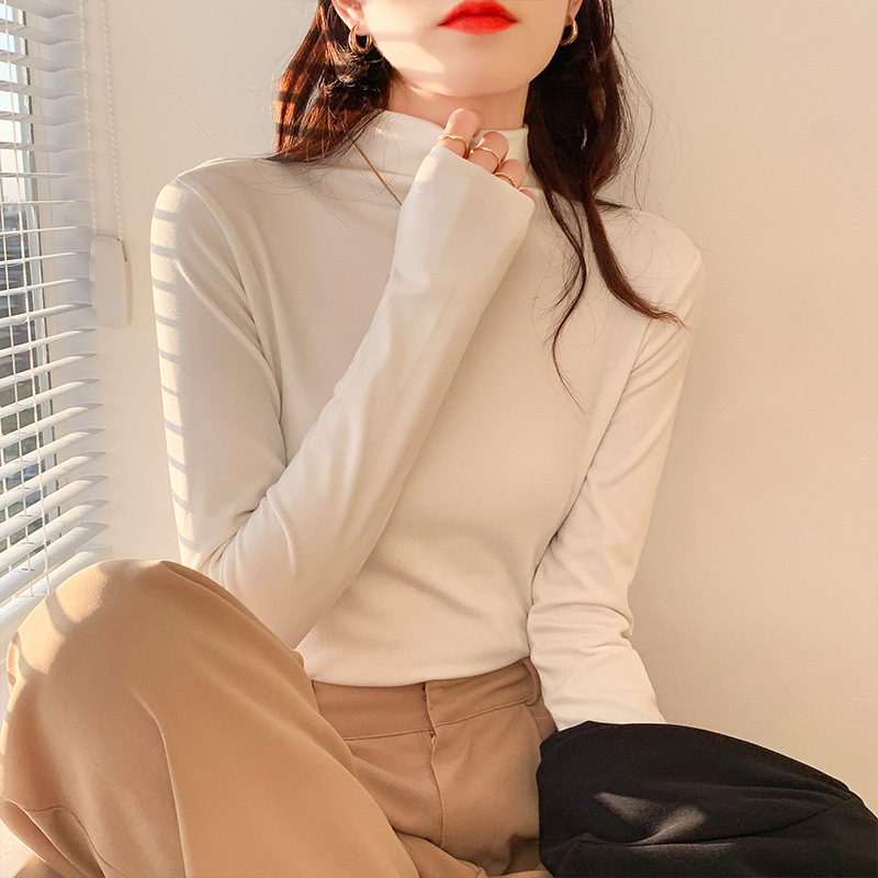 하프 하이 칼라 양면 벨벳 하단셔츠 여성용 가을과 겨울 새로운 한국식 슬림 핏 이너 기모 따뜻한 긴팔 탑스토어 가기
