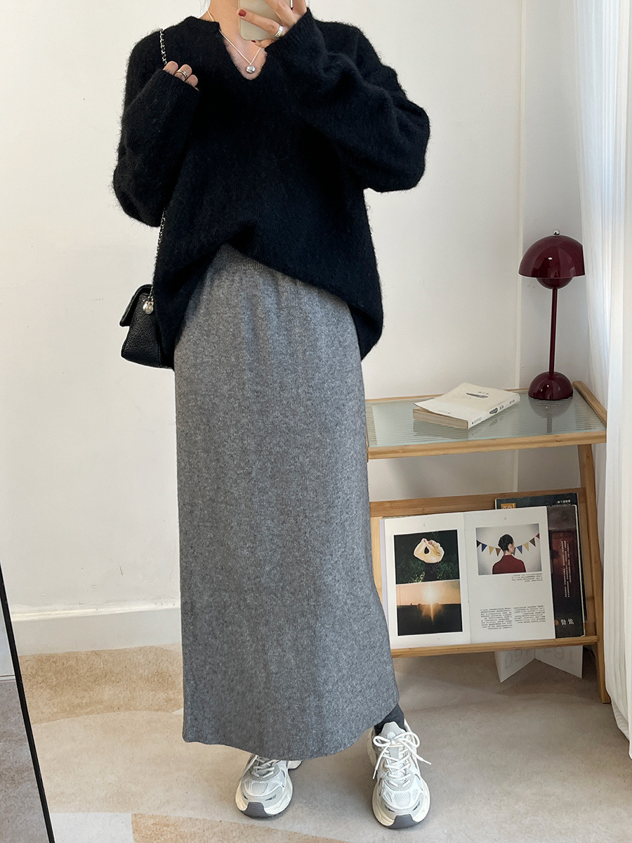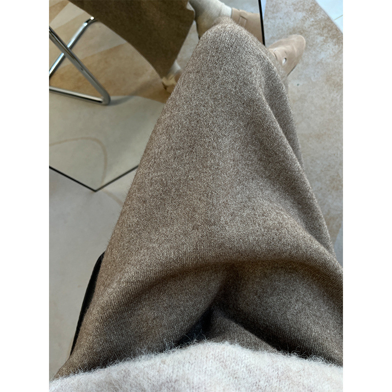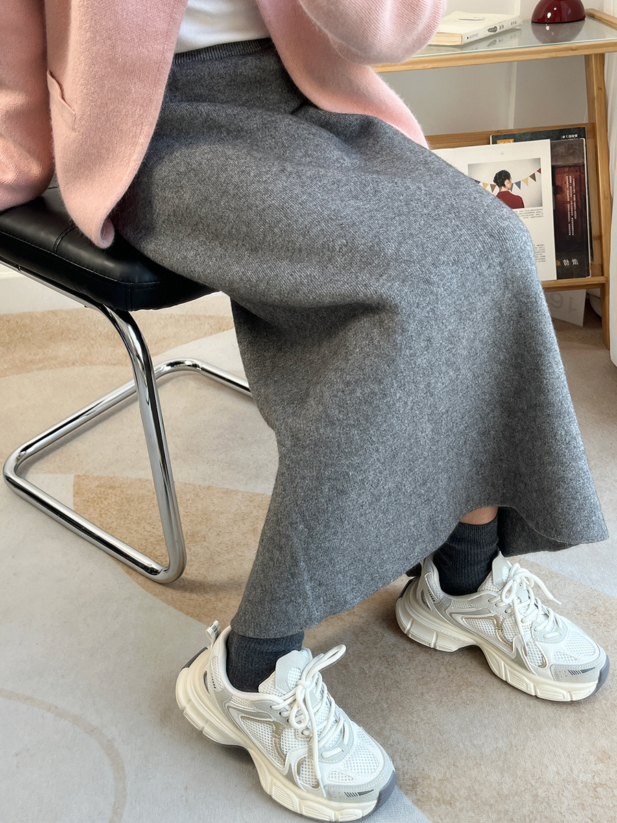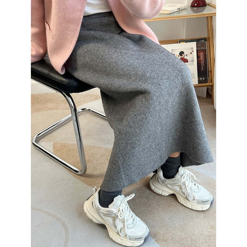 [가을과 겨울 두꺼운] 높은 허리 중간 길이의 스트레이트 니트 스커트 슬리밍 스텝 울 스커트 연필 스커트