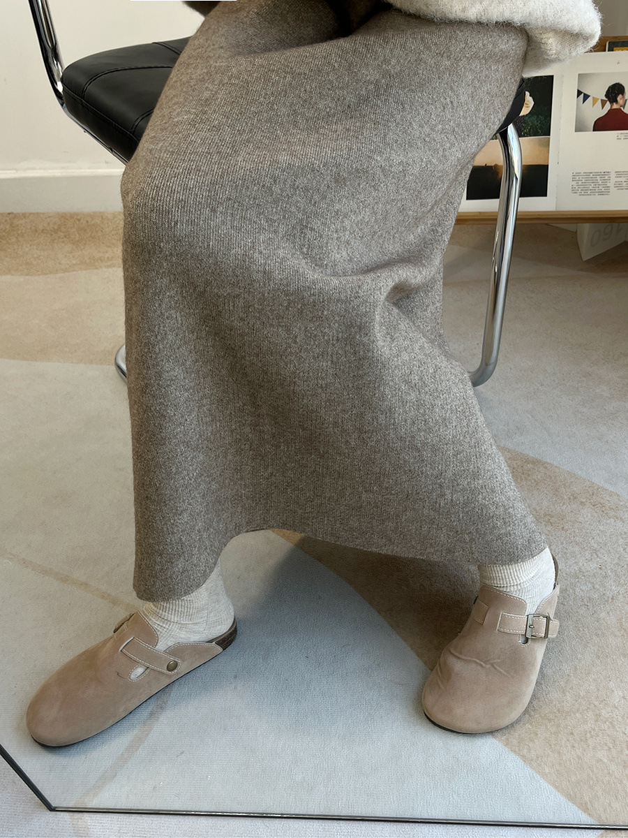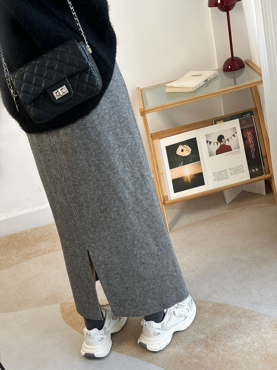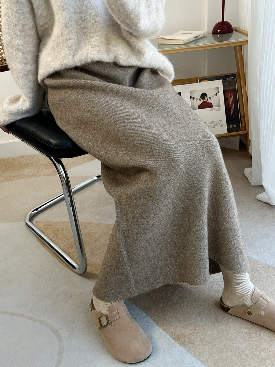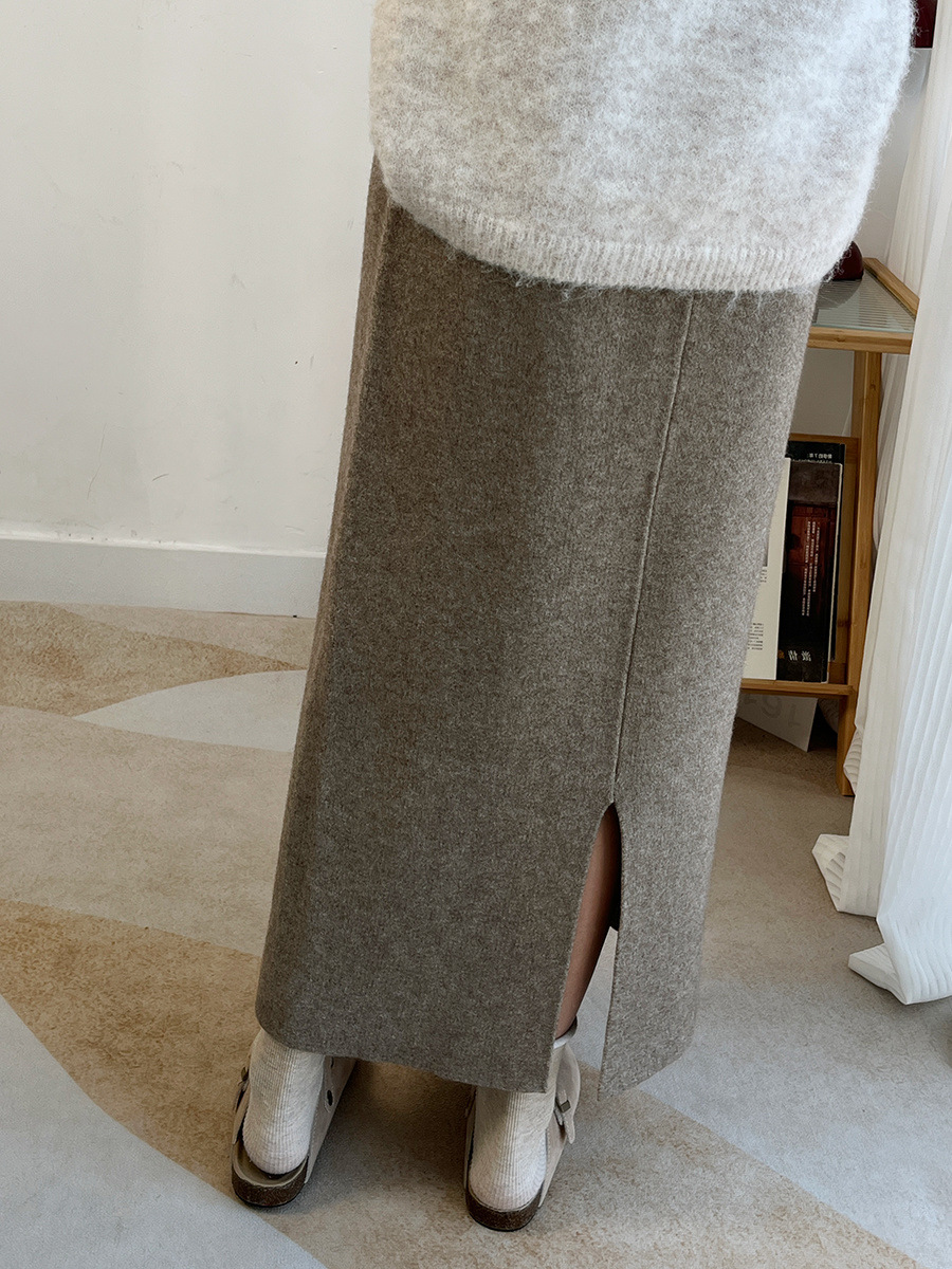 [가을과 겨울 두꺼운] 높은 허리 중간 길이의 스트레이트 니트 스커트 슬리밍 스텝 울 스커트 연필 스커트