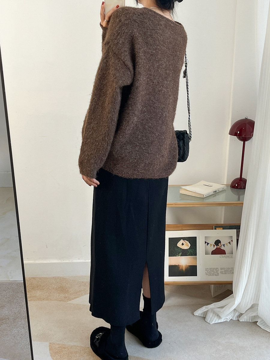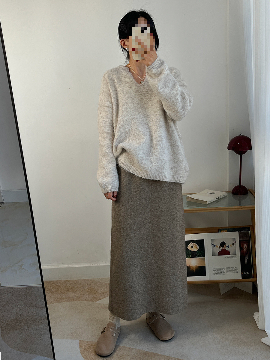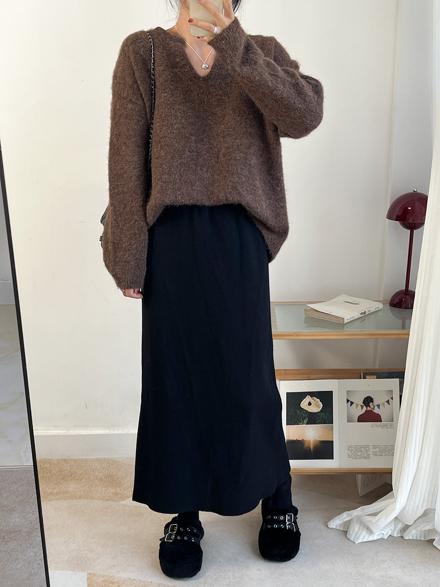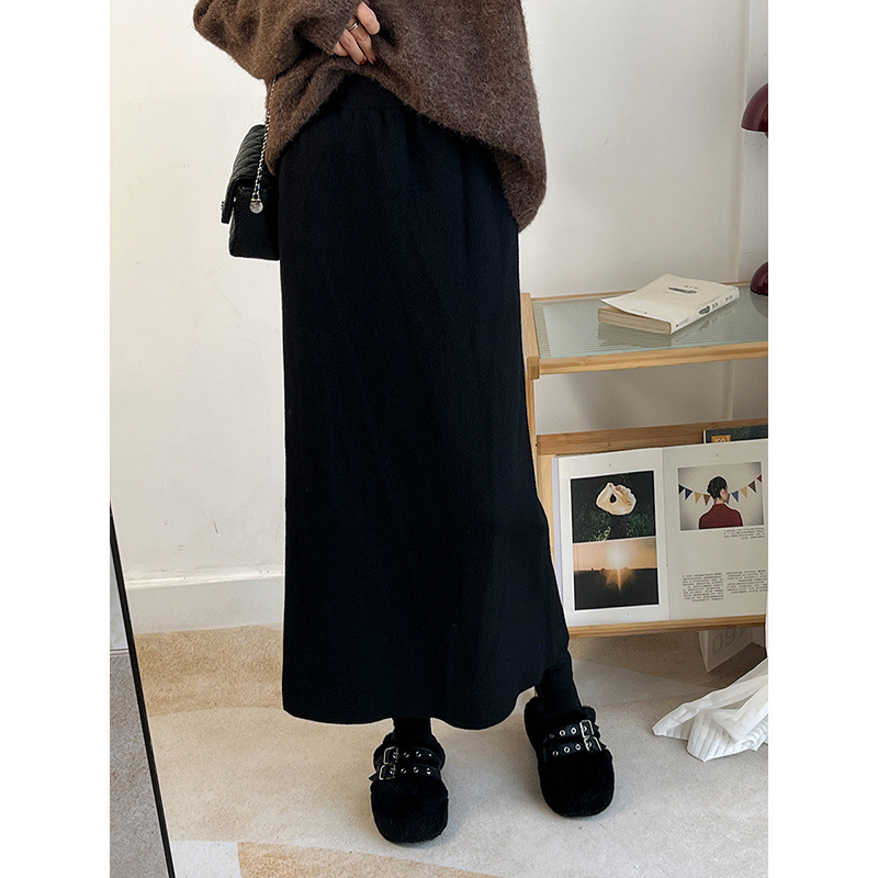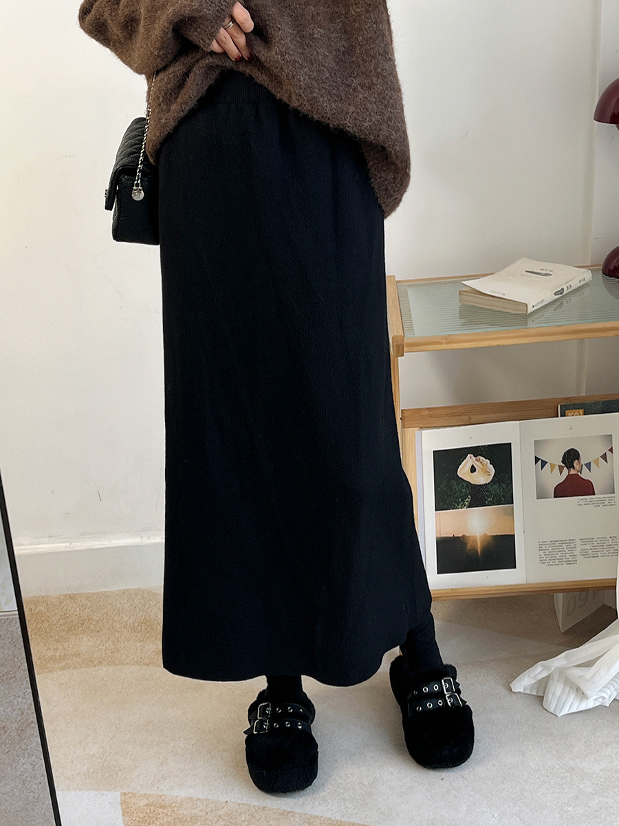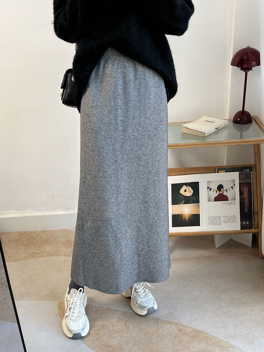 [가을과 겨울 두꺼운] 높은 허리 중간 길이의 스트레이트 니트 스커트 슬리밍 스텝 울 스커트 연필 스커트스토어 가기