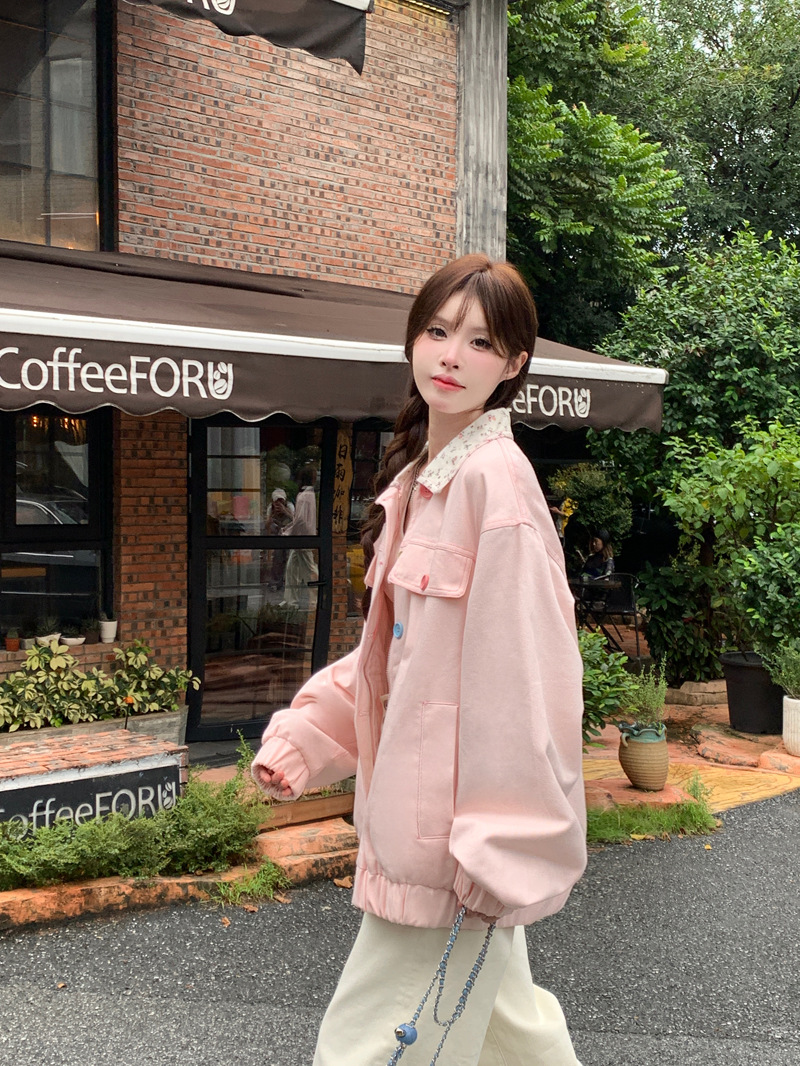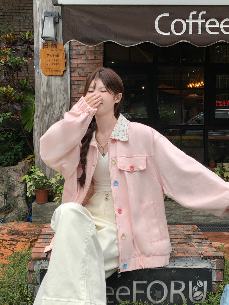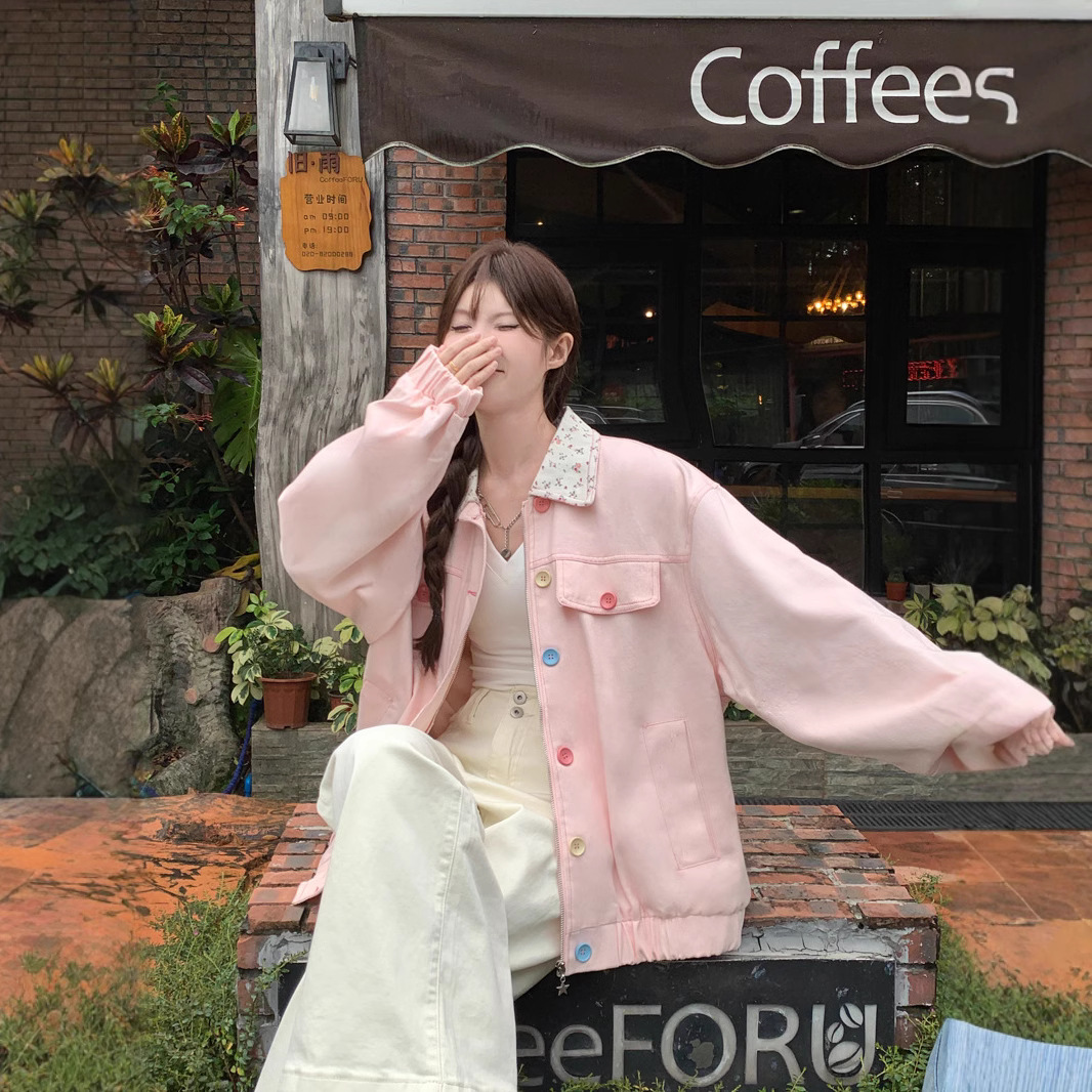 아메리칸 스타일 하이 스트리트 스위트 스타일 재킷 여성 2024 가을 뉴 루즈 Bf 도파민 재킷 한국 스타일 Ins 슈퍼 핫스토어 가기