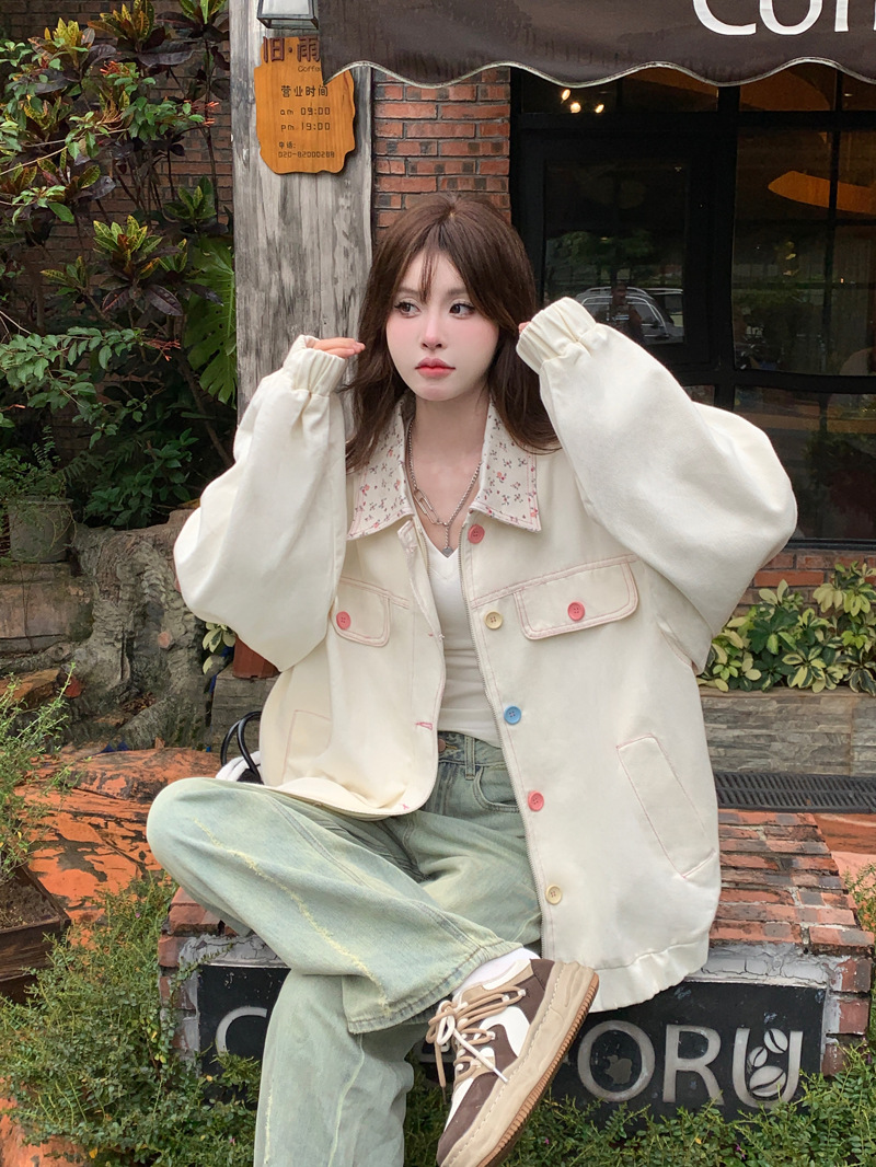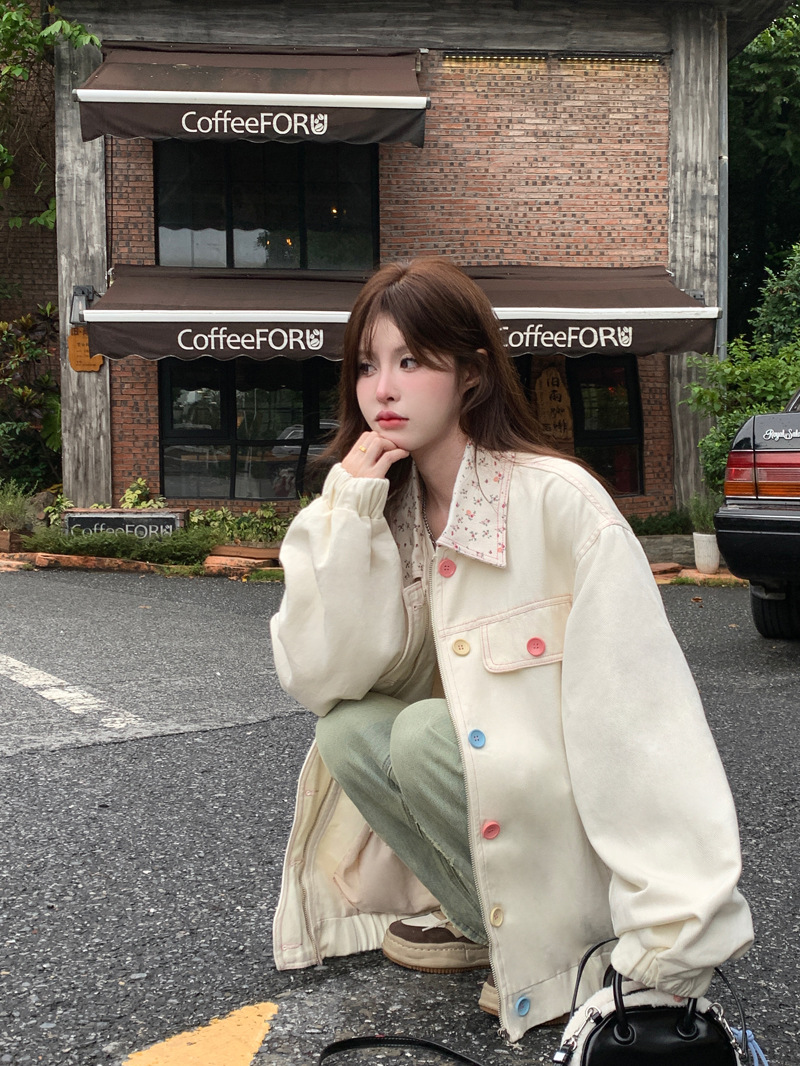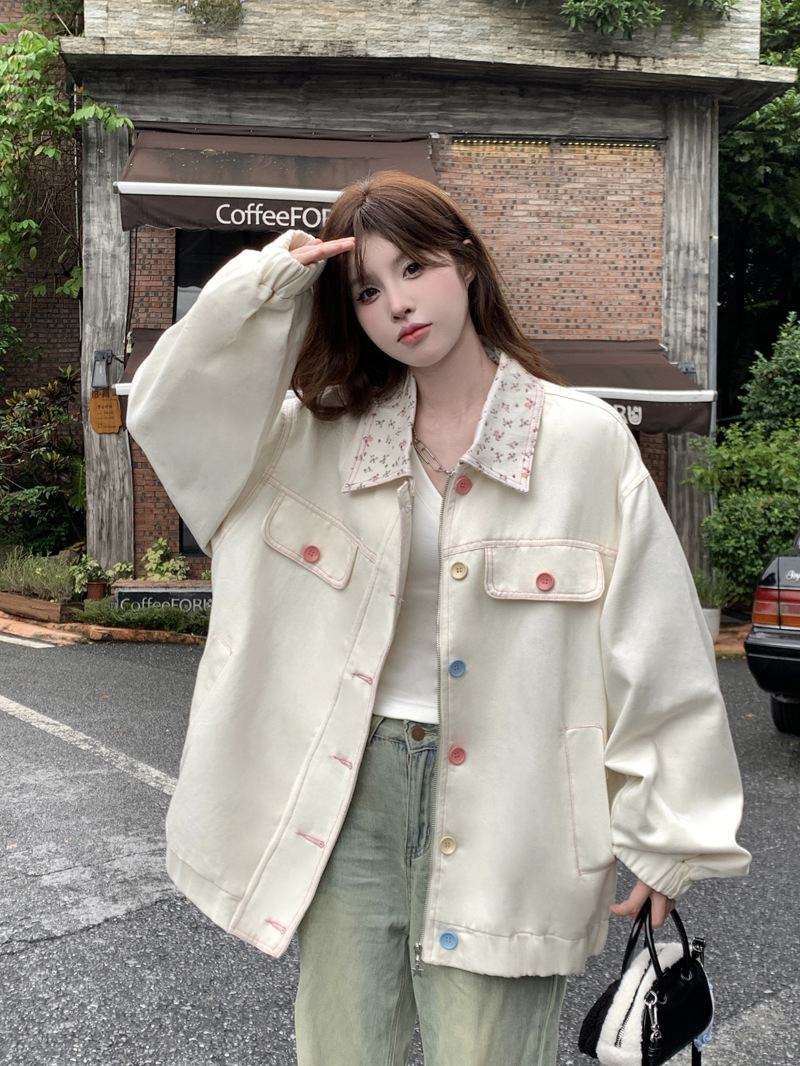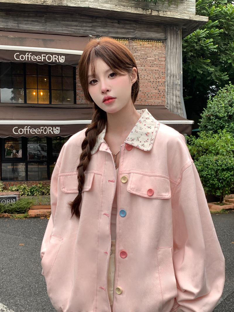 아메리칸 스타일 하이 스트리트 스위트 스타일 재킷 여성 2024 가을 뉴 루즈 Bf 도파민 재킷 한국 스타일 Ins 슈퍼 핫스토어 가기