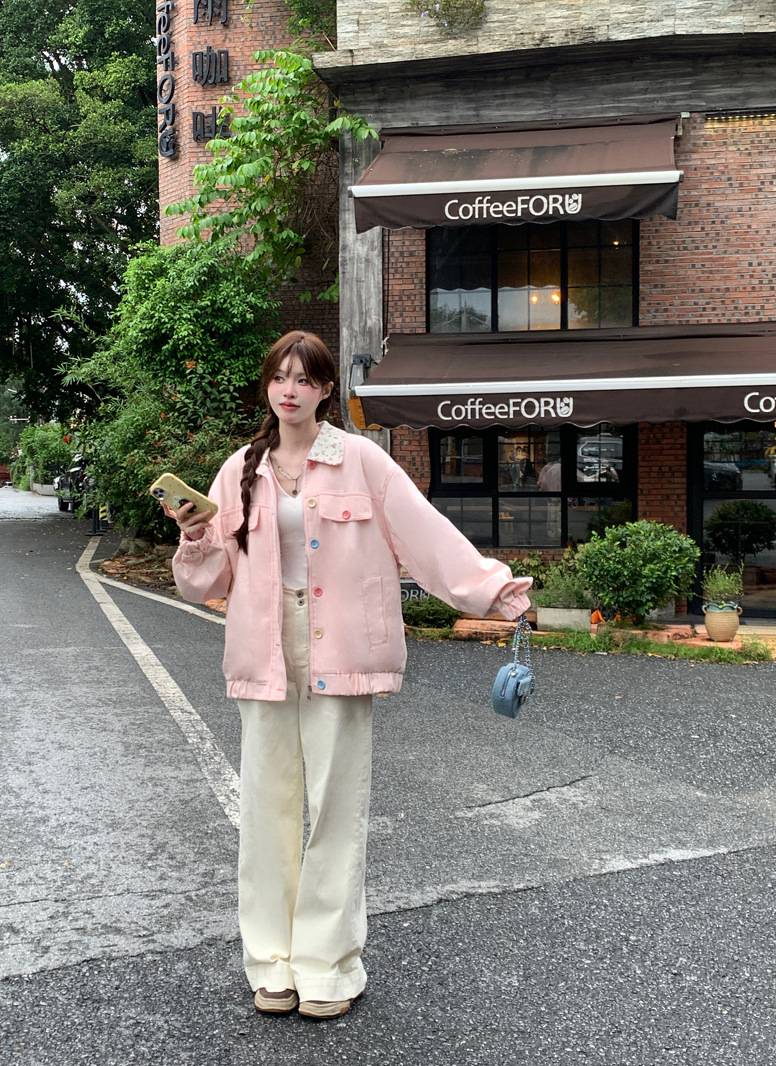 아메리칸 스타일 하이 스트리트 스위트 스타일 재킷 여성 2024 가을 뉴 루즈 Bf 도파민 재킷 한국 스타일 Ins 슈퍼 핫