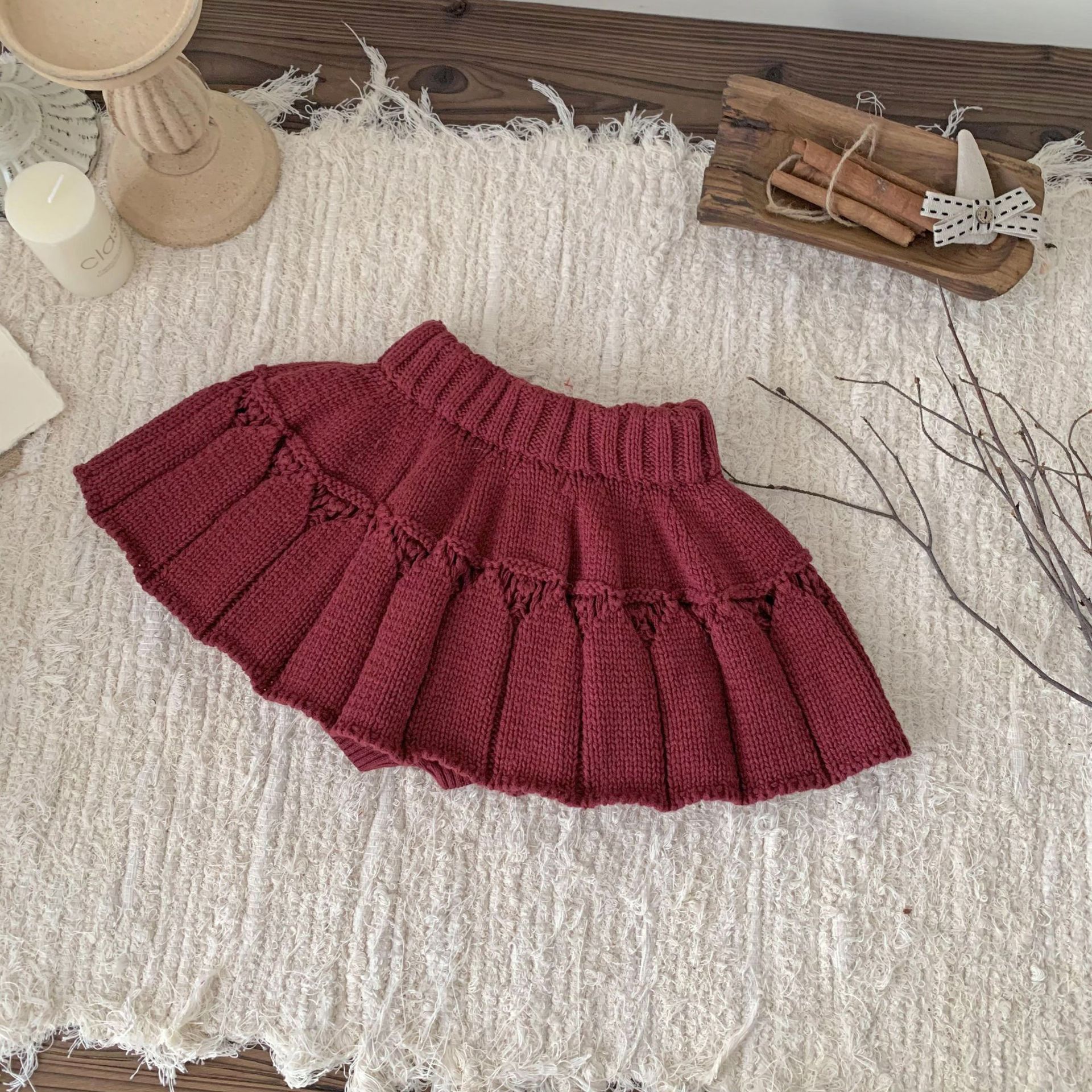 Cutemily 가을과 겨울 아기 소녀의 두꺼운 모직 팬 스커트 여성의 보물 장식 가짜 2 피스 반바지 크리스마스 스타일 바지 스커트스토어 가기