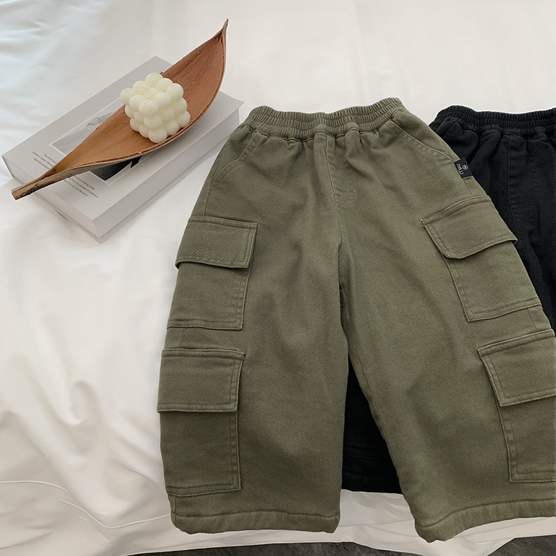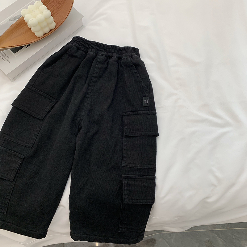 남학생 긴 바지 겨울 어린이 기모 중기 어린이 서양식 크레인 바지 어린이 더피 잘 생긴 패셔너블 올매치 스트리트를 부는 트렌디스토어 가기