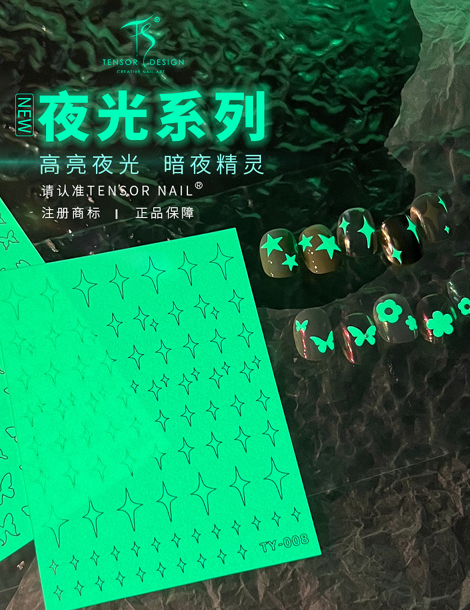 TENSOR 새로운 프로세스 5D 얇은 거친 네일 스티커 바람 젖빛 얇은 투명 접착제 발광 네일 스티커 TY032
