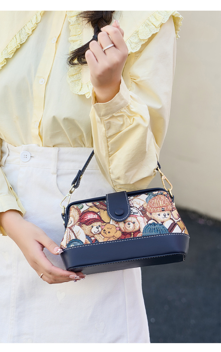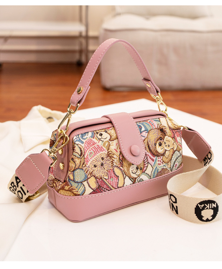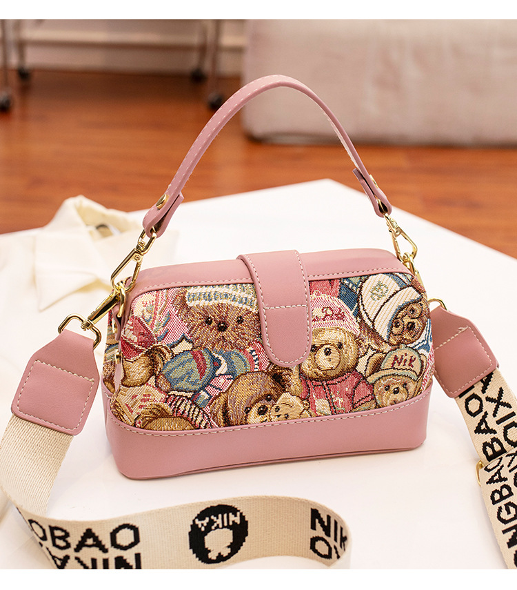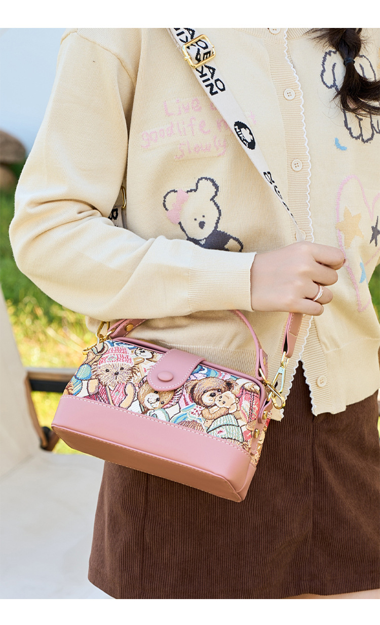 귀여운 딸기 곰 수 놓은 여성 가방 대용량 크로스 바디 가방 여성의 우아한 어깨 가방 캐주얼 올 매치 매일 작은 광장 가방
