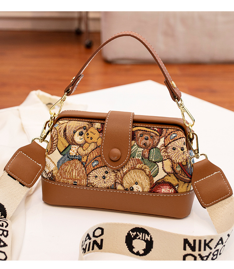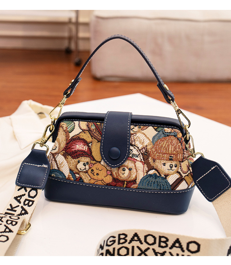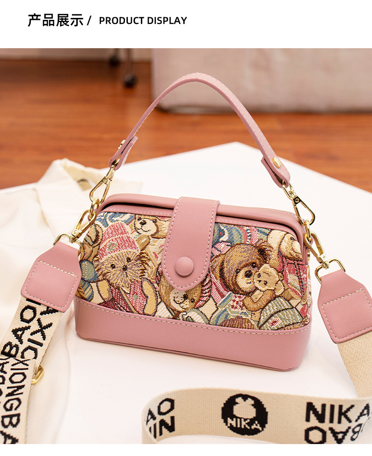 귀여운 딸기 곰 수 놓은 여성 가방 대용량 크로스 바디 가방 여성의 우아한 어깨 가방 캐주얼 올 매치 매일 작은 광장 가방스토어 가기