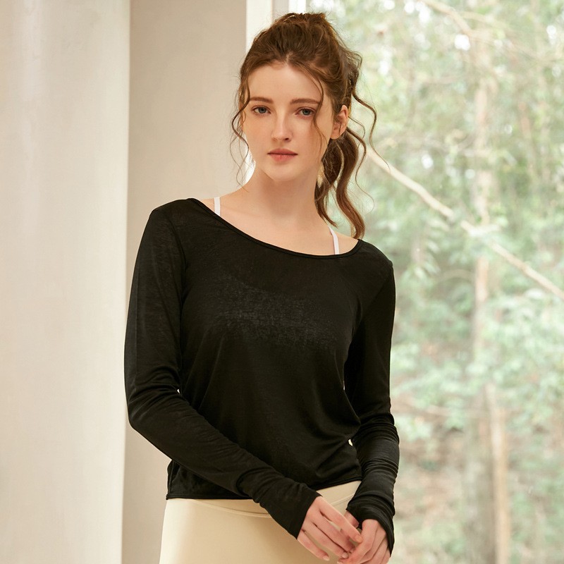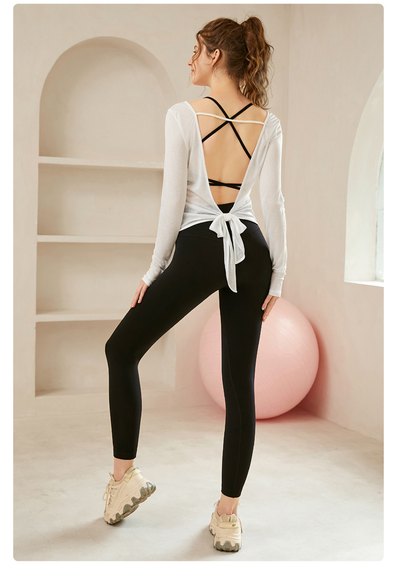 Jiyi Spring New Back Hollow Split Butterfly Tie-knot 블라우스 빠른 건조 통기성 탑 요가 옷