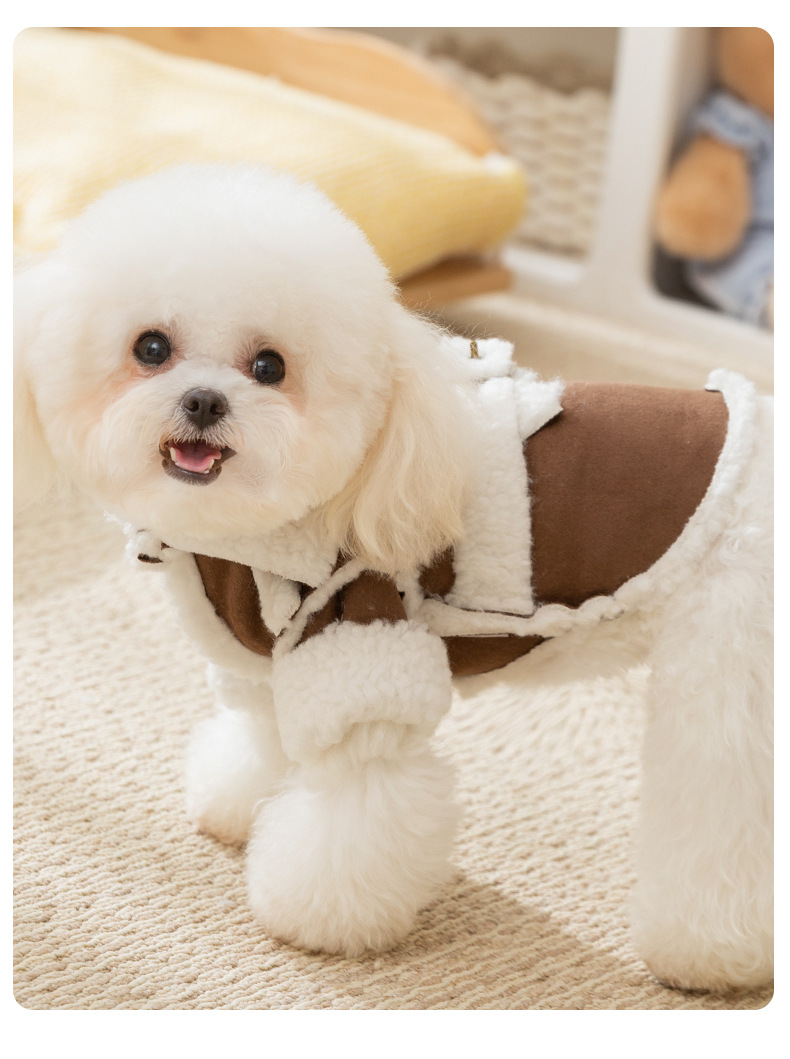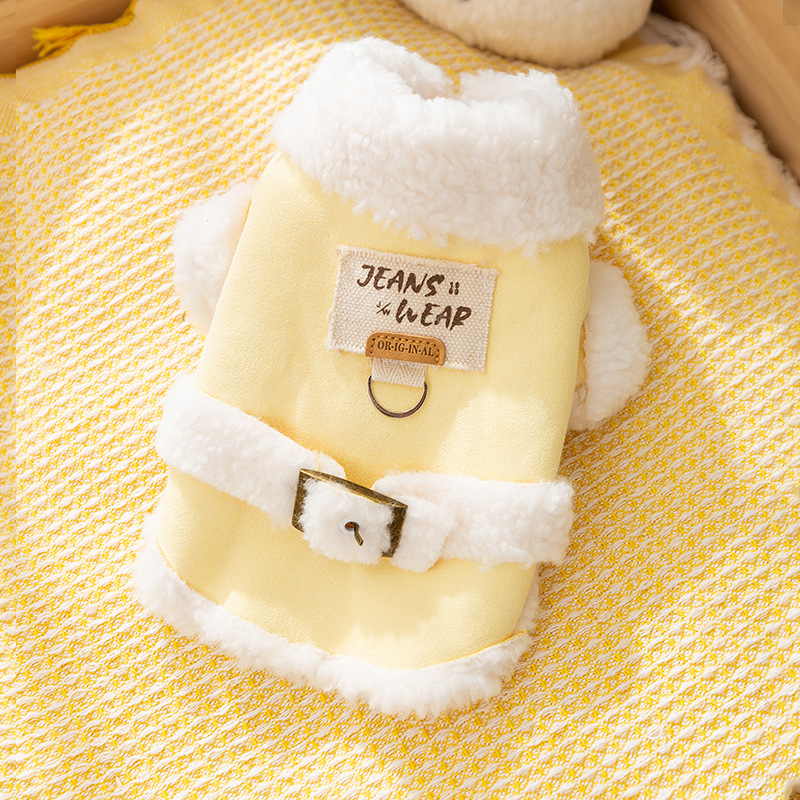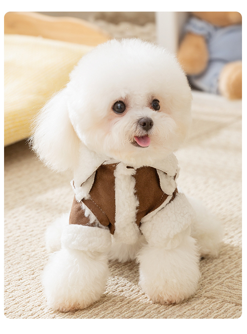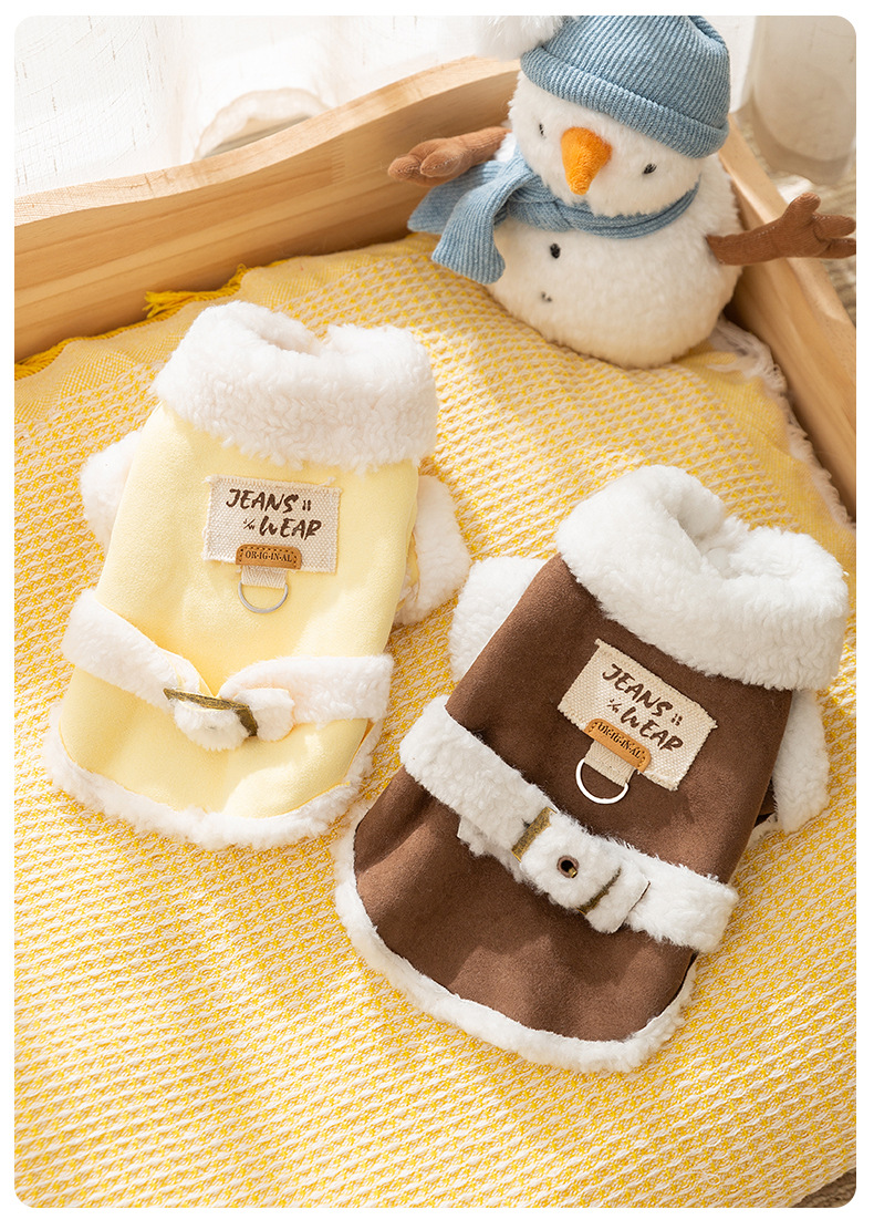 간단한 영국 스타일의 스웨이드 캐주얼 천 패치 작은 개 가을과 겨울 두꺼운 애완 동물 개 옷을위한 두 다리 면화 패딩 옷