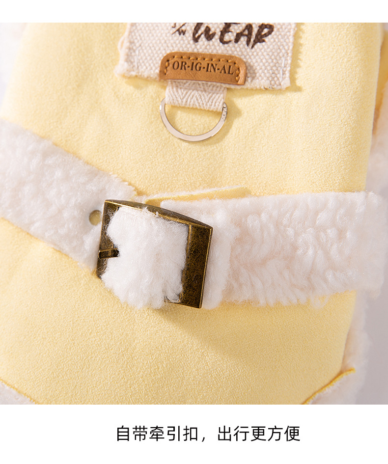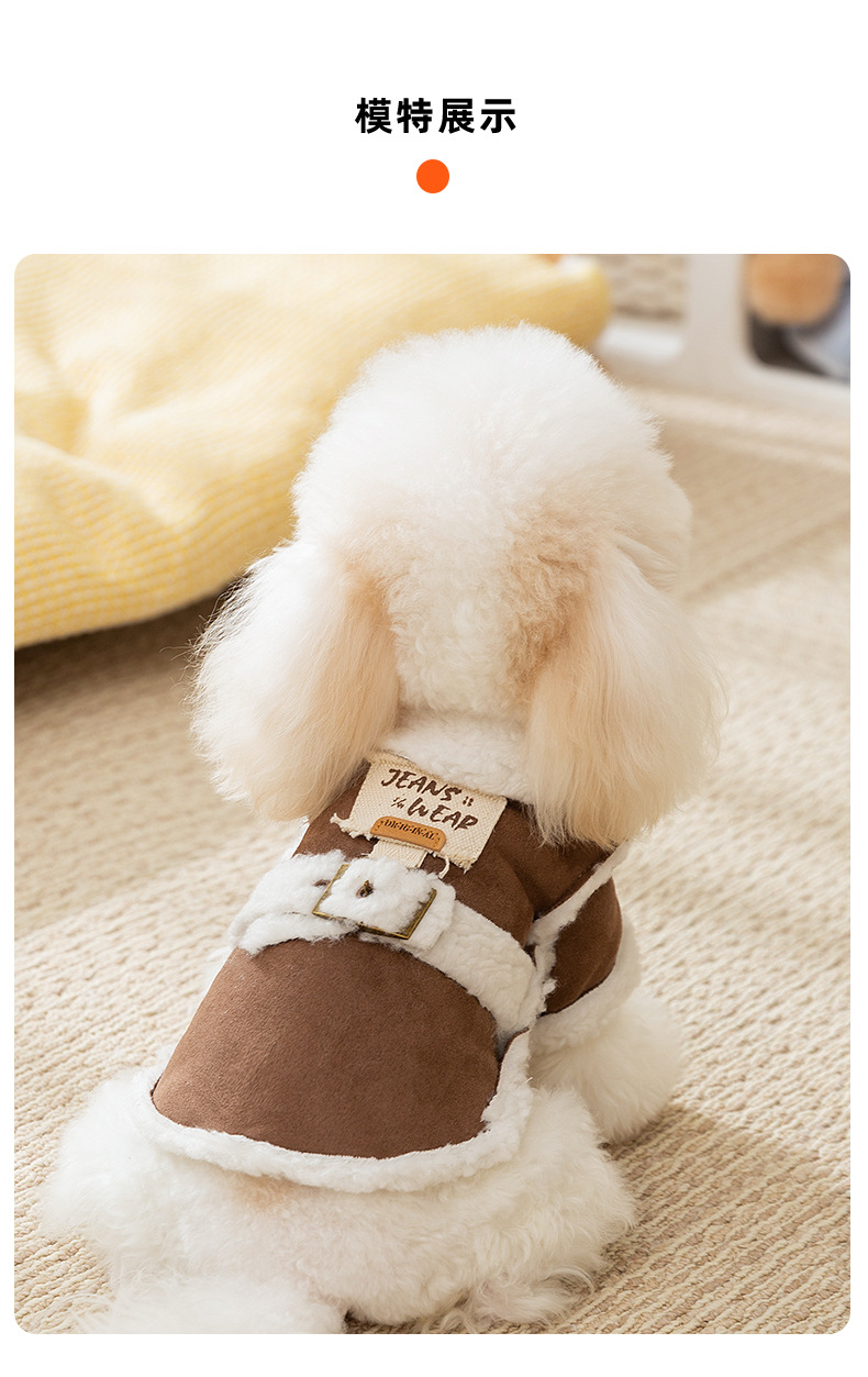 간단한 영국 스타일의 스웨이드 캐주얼 천 패치 작은 개 가을과 겨울 두꺼운 애완 동물 개 옷을위한 두 다리 면화 패딩 옷스토어 가기