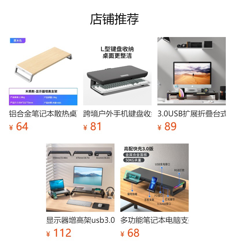 국경 금속 3.0usb 지원 빠른 충전 확장 사무실 디스플레이 기본 컴퓨터 디스플레이 스탠드스토어 가기