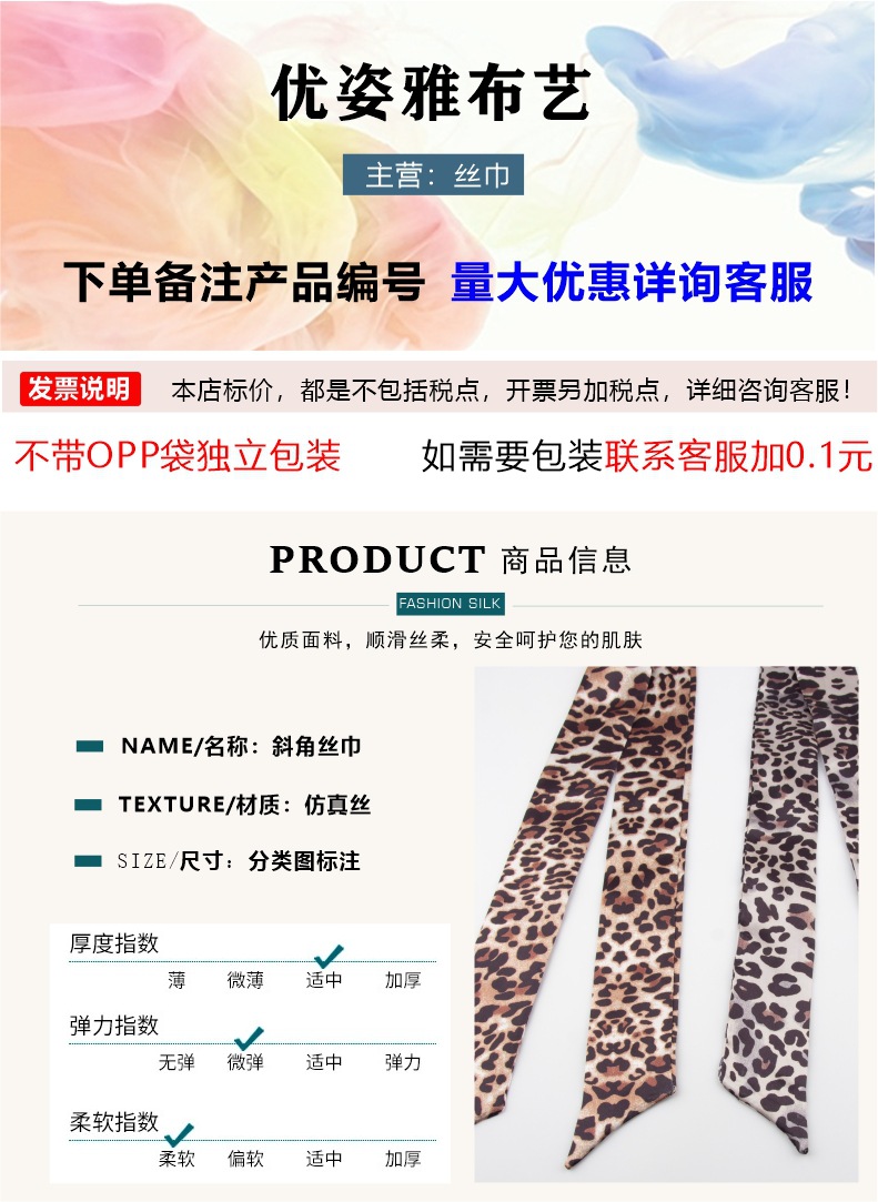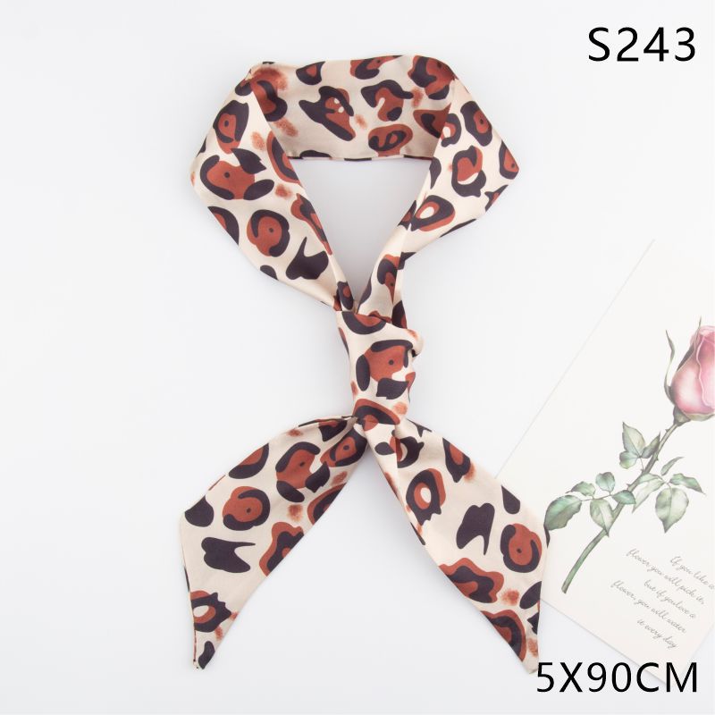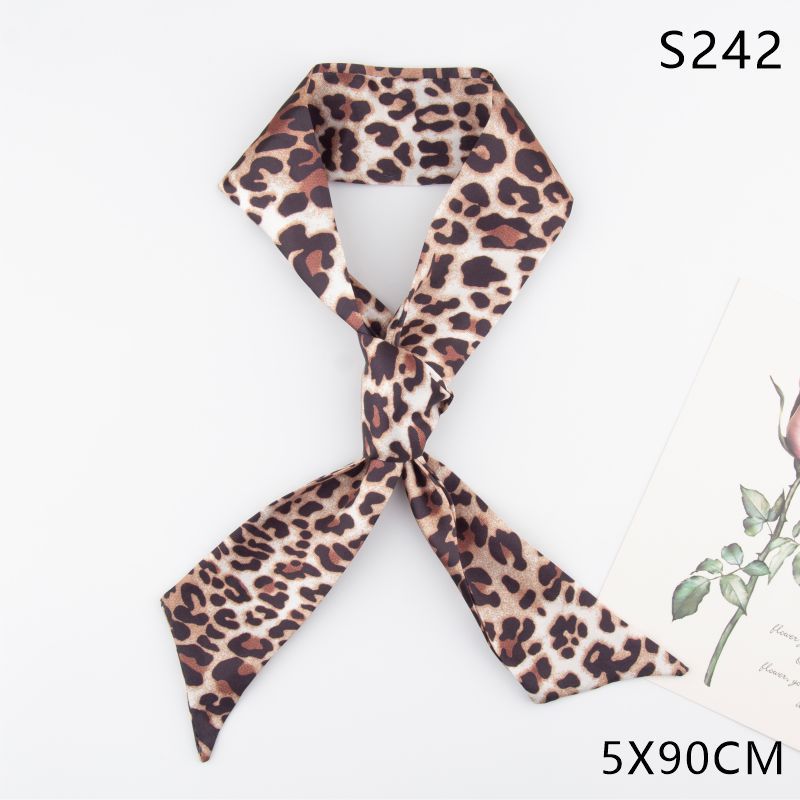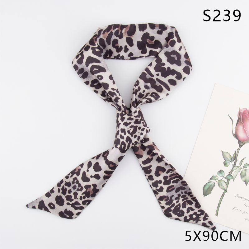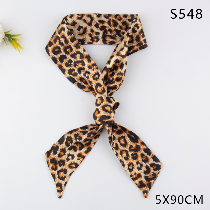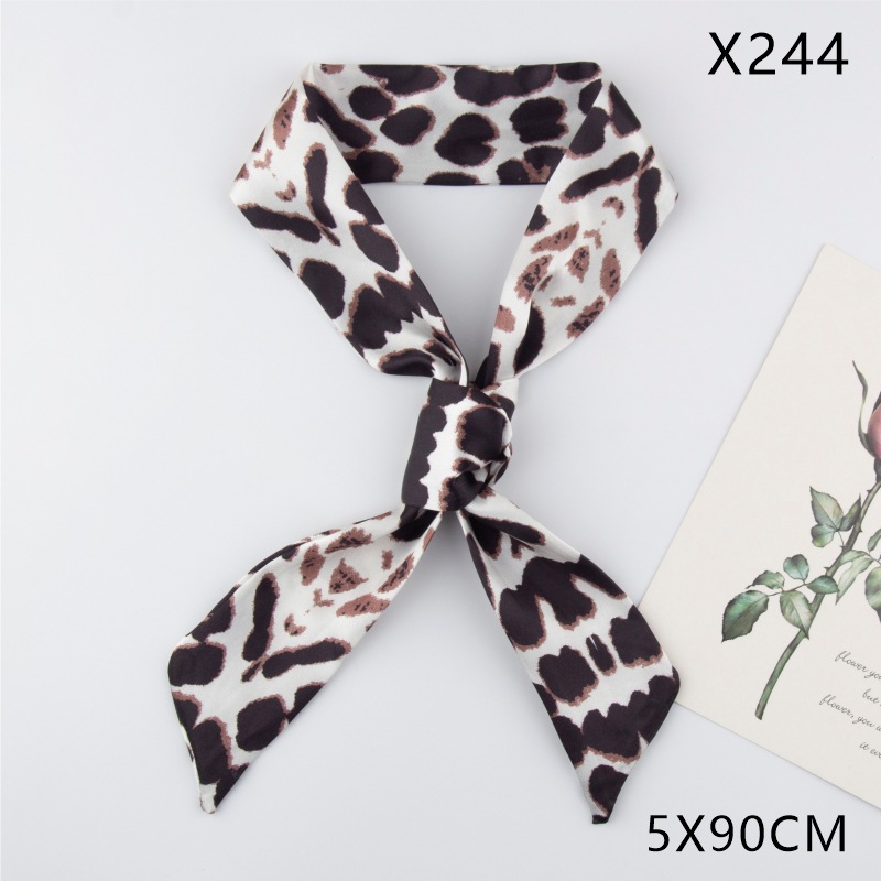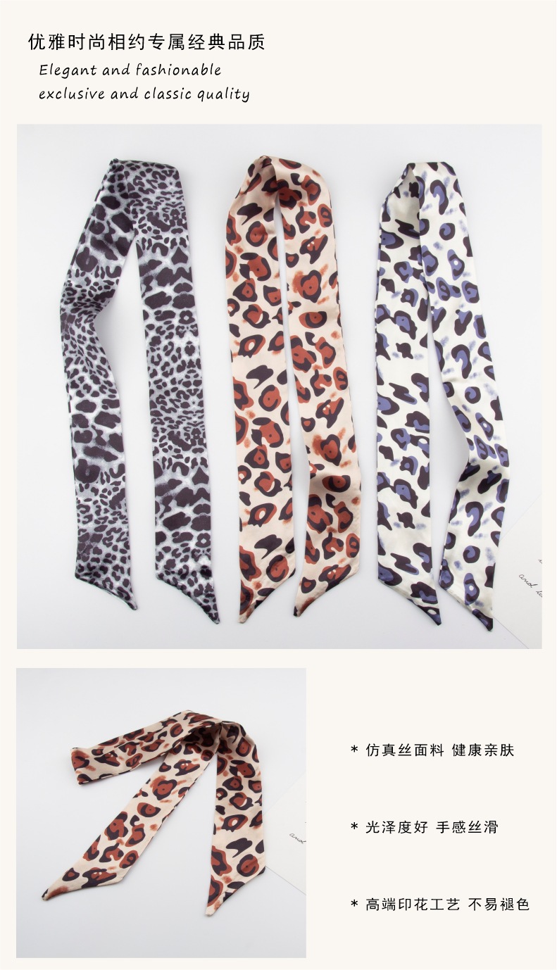 새로운 레오파드 무늬 작은 스카프 스카프 여성의 봄 가을과 여름 넥타이 가방 손잡이 리본 작은 손목 리본
