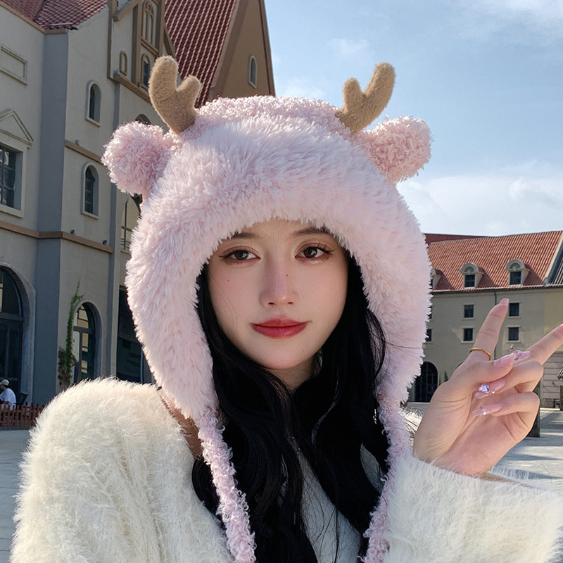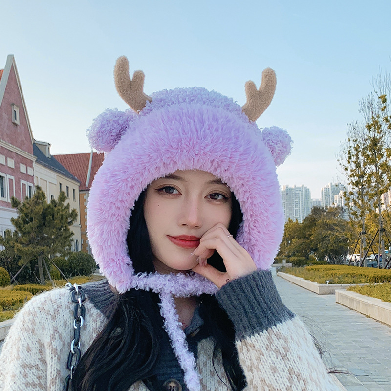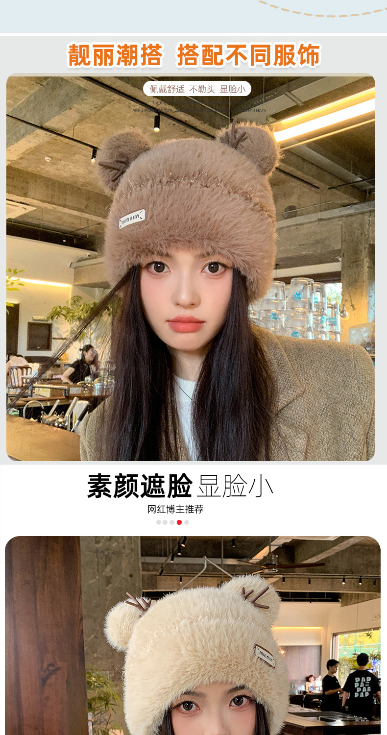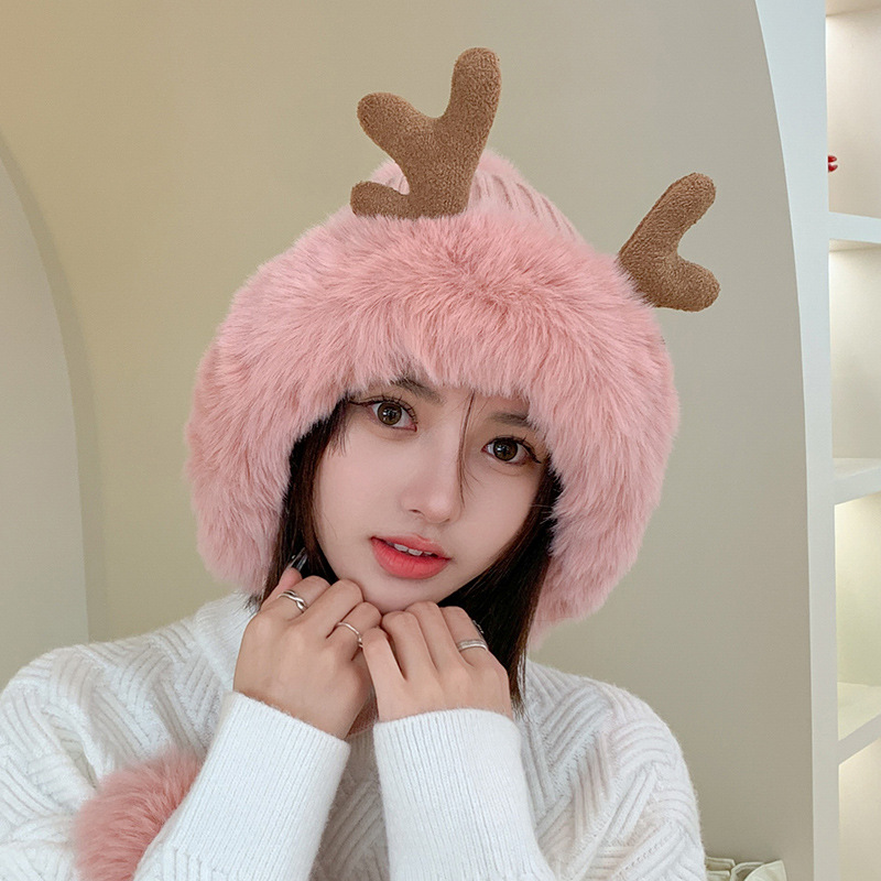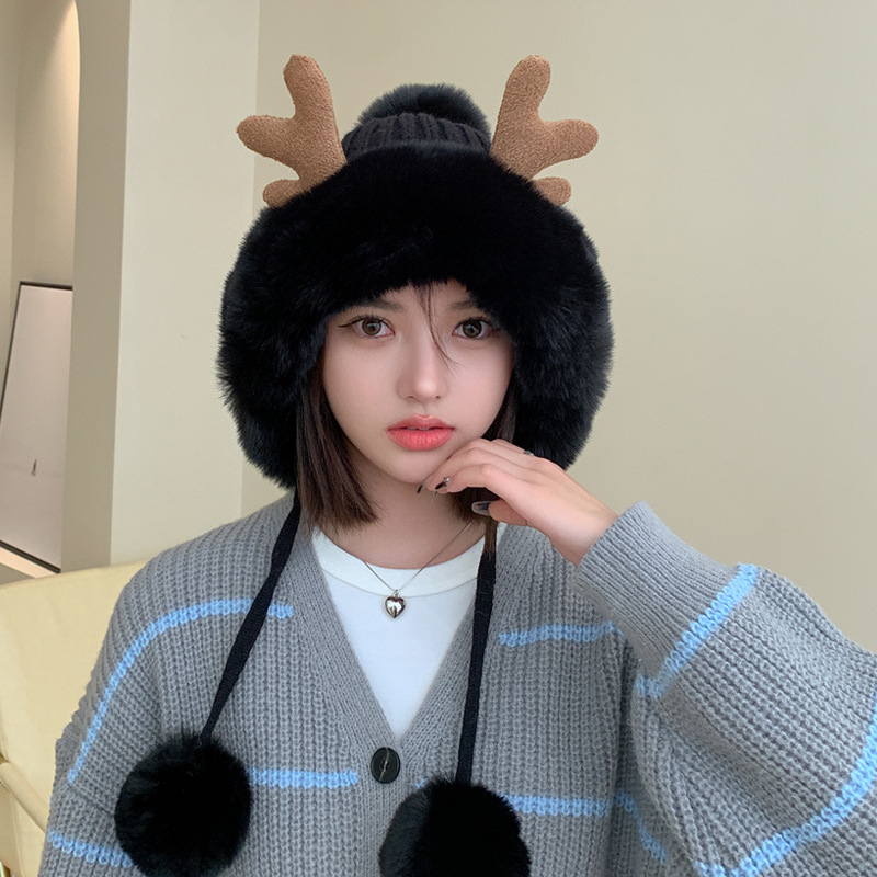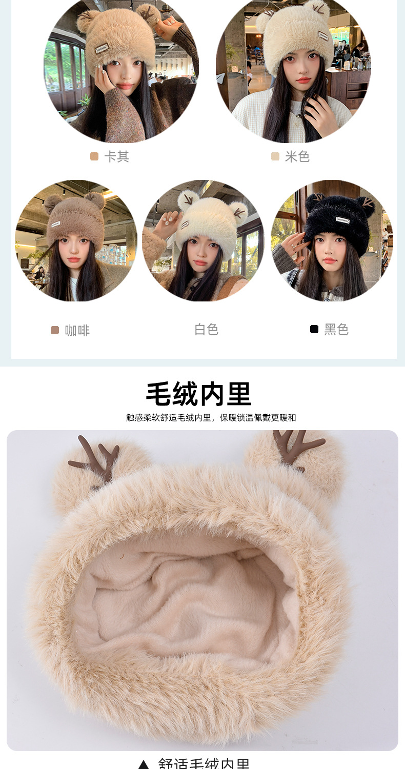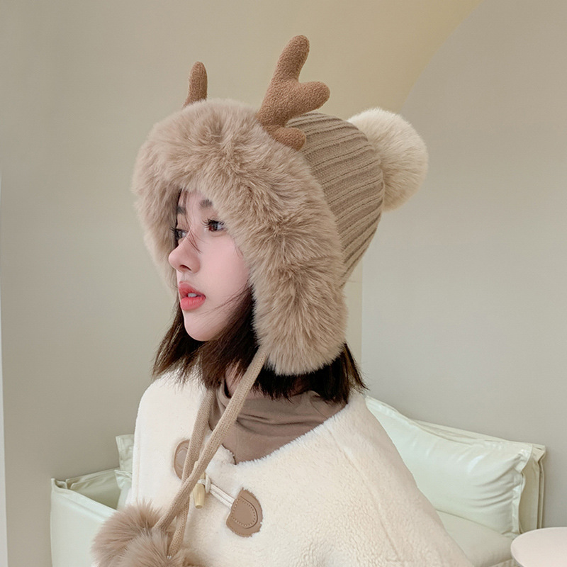 새로운 크리스마스 한국식 뿔 봉제 모자 여성의 가을과 겨울 두꺼운 따뜻한 풀오버 캡 일본식 달콤한 니트 캡