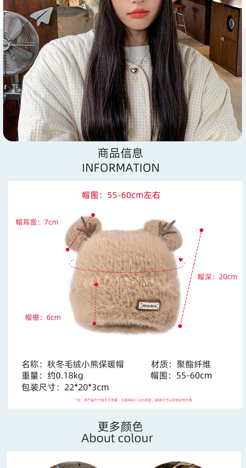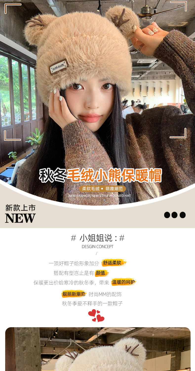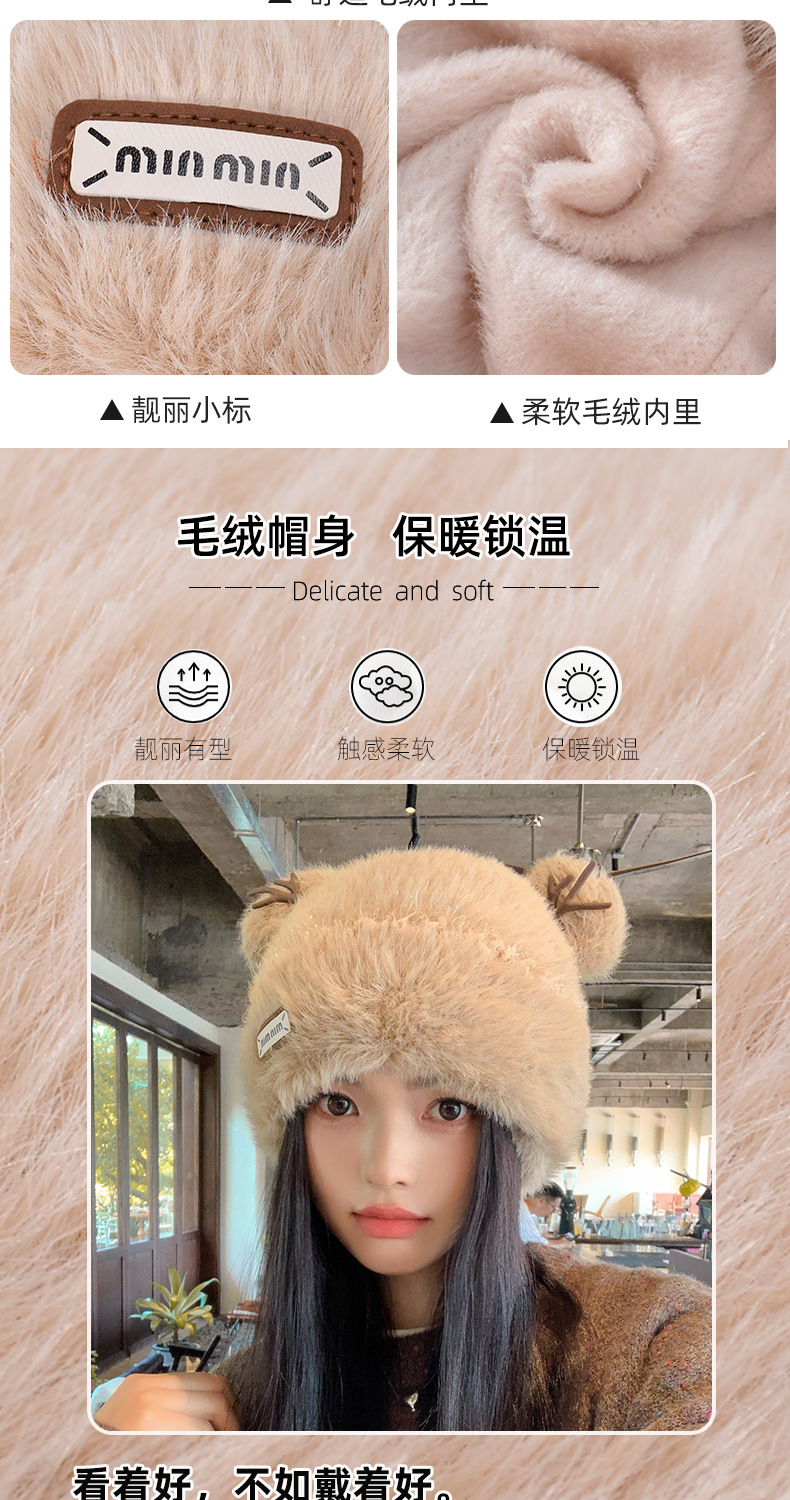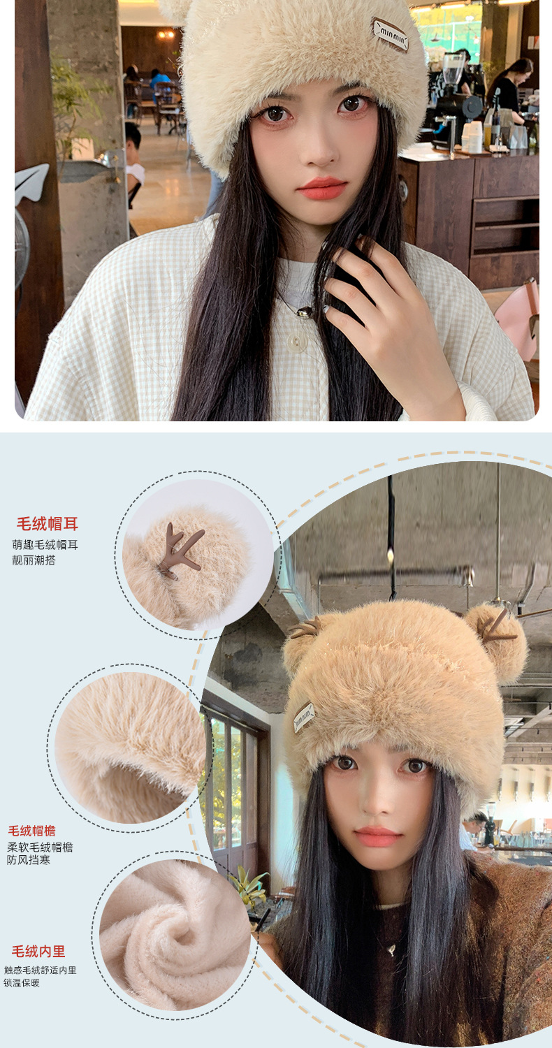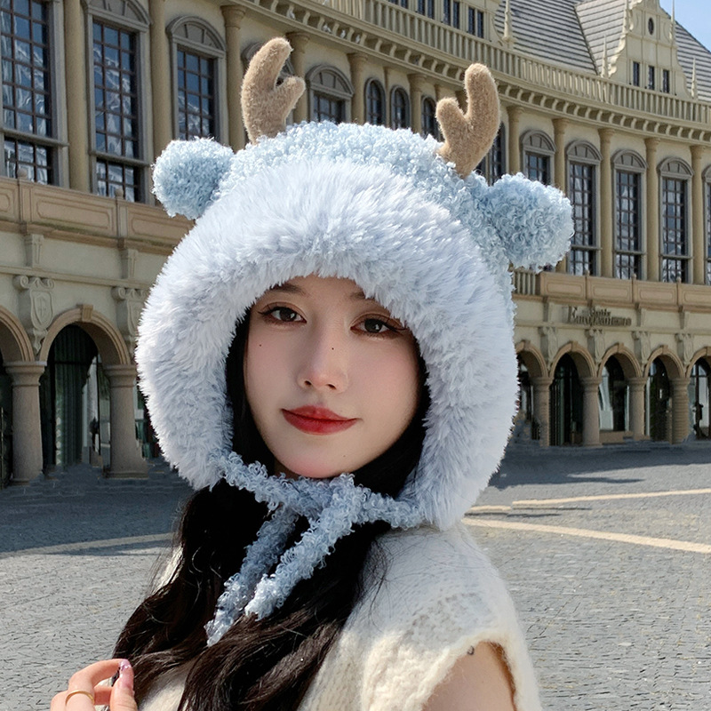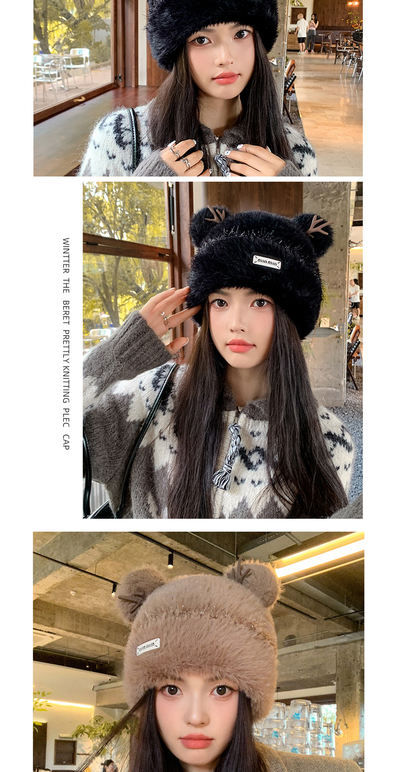 새로운 크리스마스 한국식 뿔 봉제 모자 여성의 가을과 겨울 두꺼운 따뜻한 풀오버 캡 일본식 달콤한 니트 캡