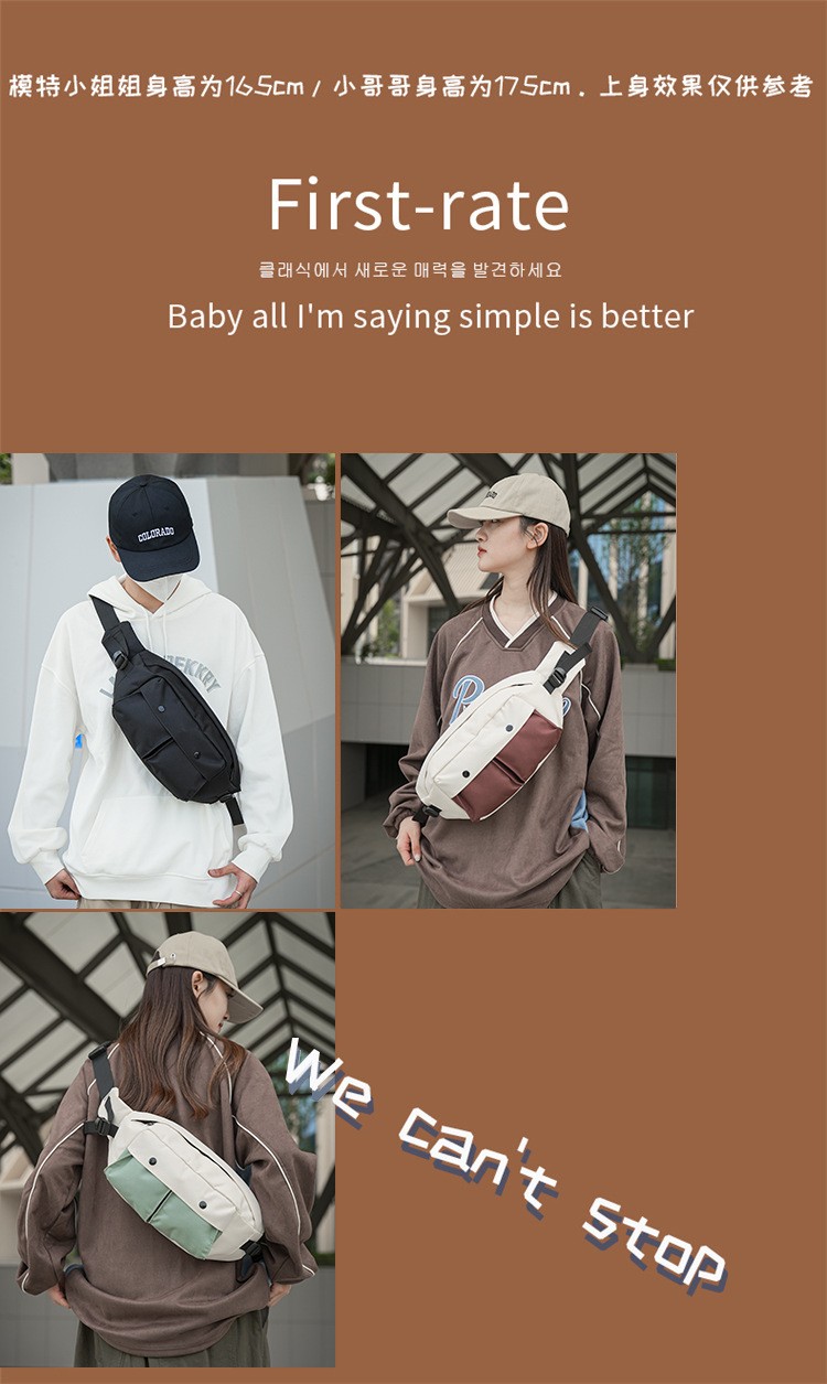 여성 및 남성용 가슴 가방 브랜드 색상 일치 대용량 스포츠 허리 가방 타고 작은 사첼 경량 올매치 숄더 백