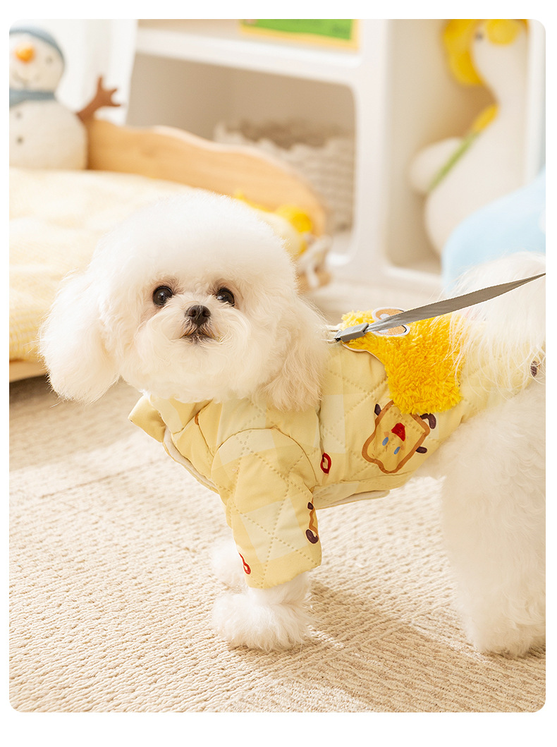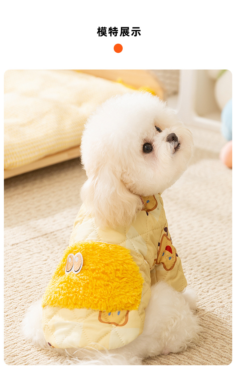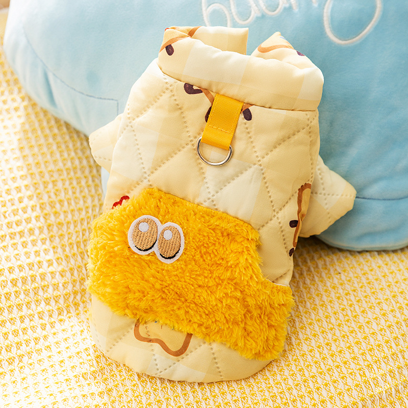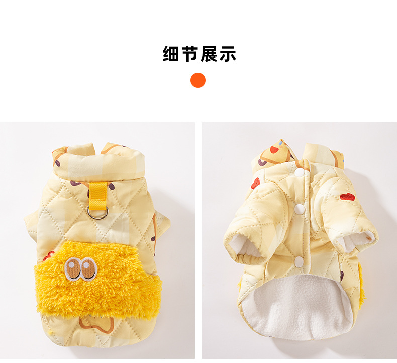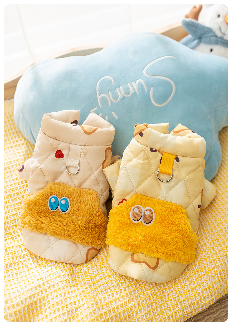 노란 토스트 큰 눈 인쇄는 2 피트 면화 패딩 된 가을과 겨울 두꺼운 애완견 개 옷 도매를 당길 수 있습니다.스토어 가기