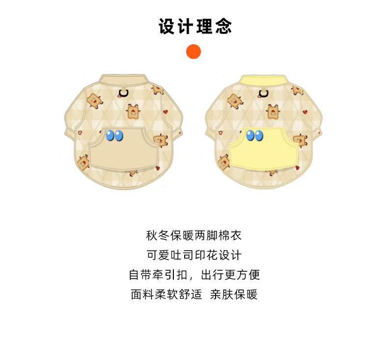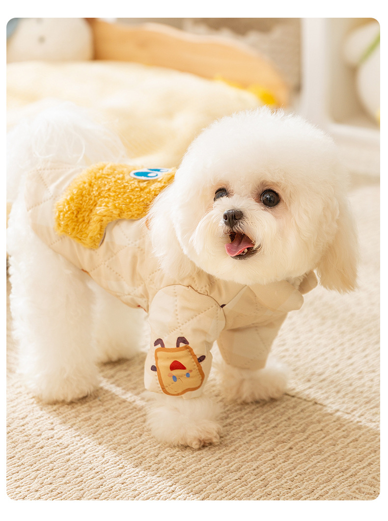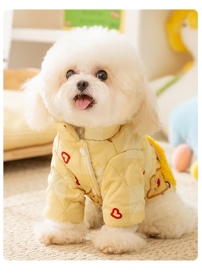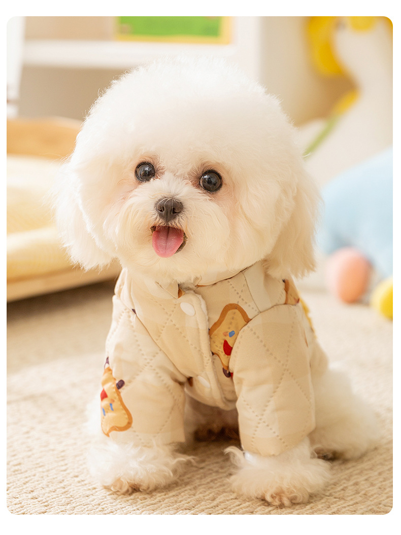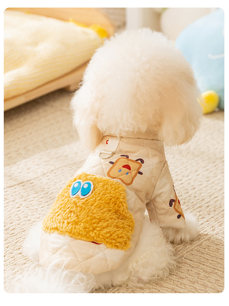 노란 토스트 큰 눈 인쇄는 2 피트 면화 패딩 된 가을과 겨울 두꺼운 애완견 개 옷 도매를 당길 수 있습니다.스토어 가기