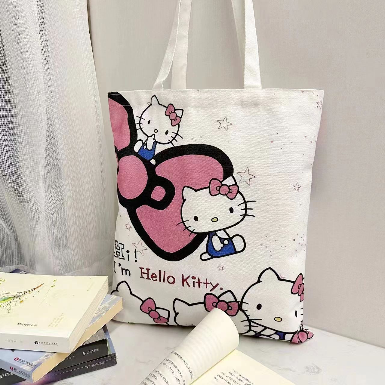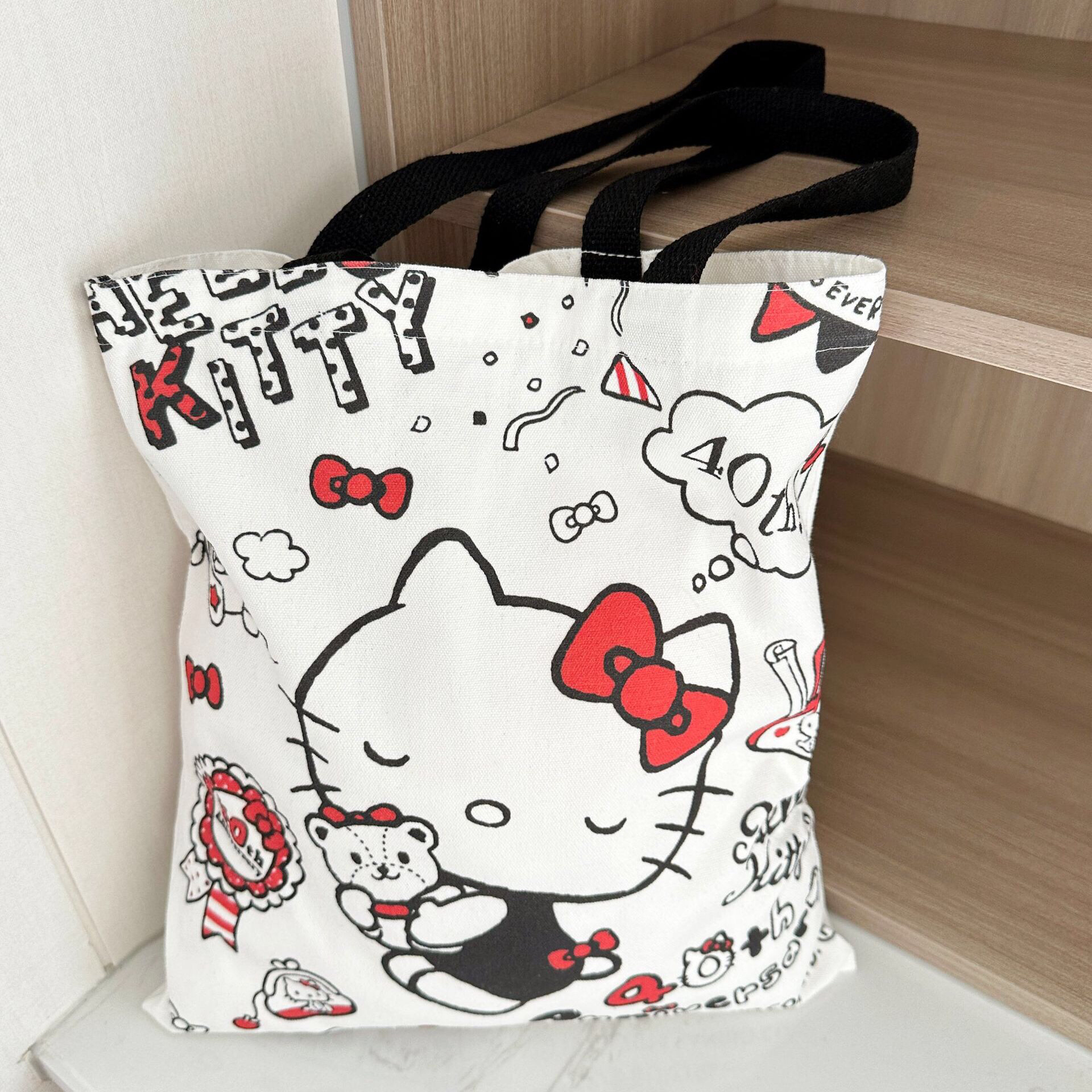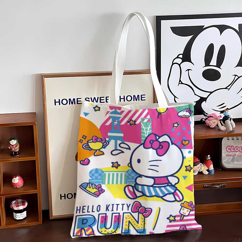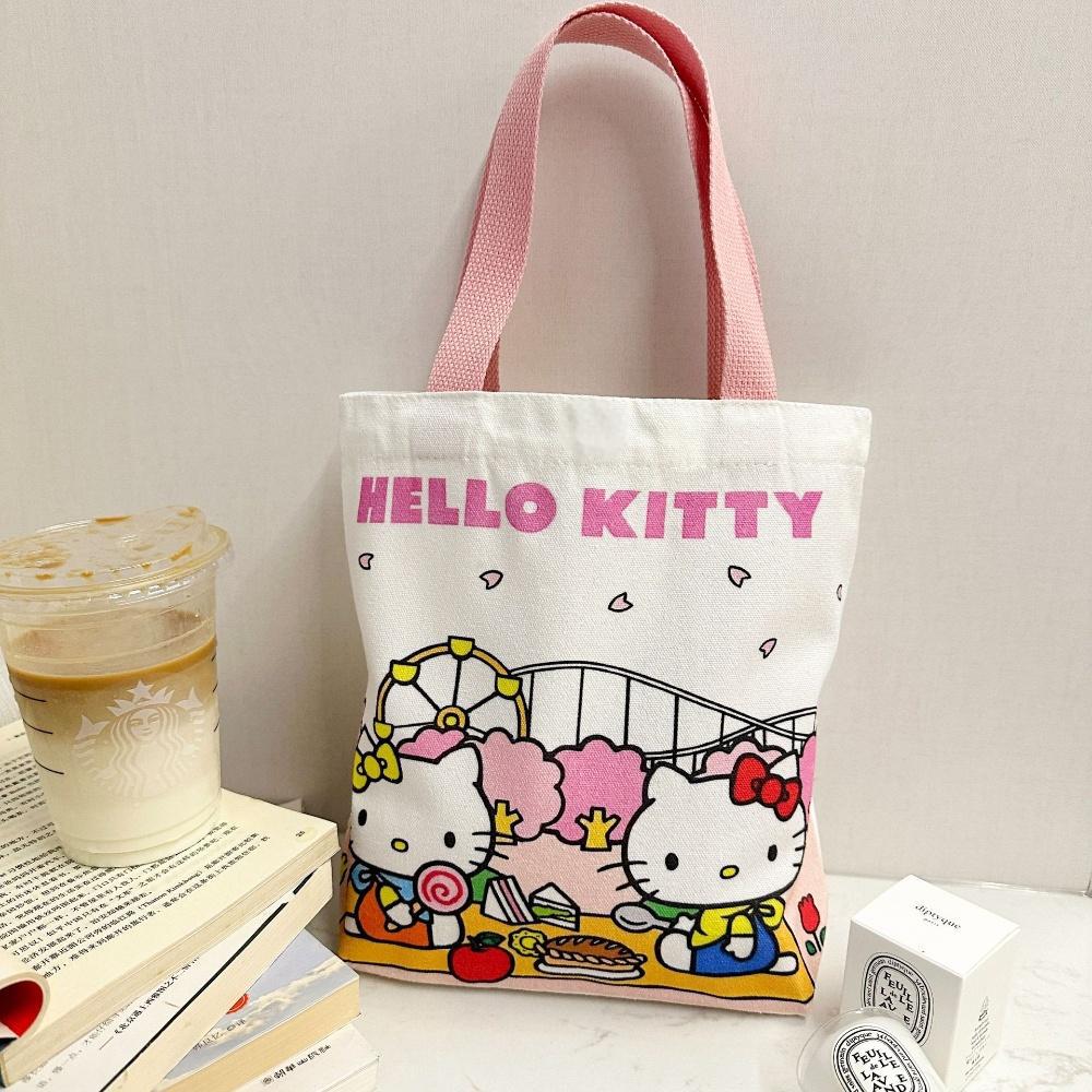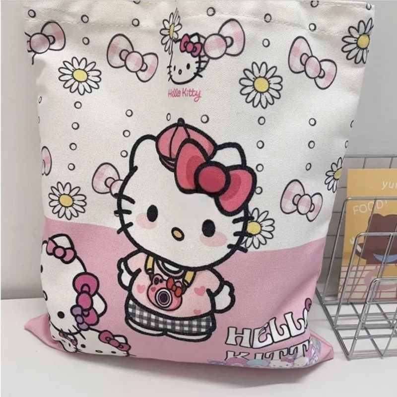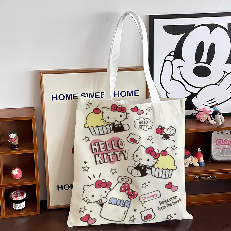 키티 고양이 2024 새로운 캔버스 가방 귀여운 헬로 키티 대용량 학생 어깨 가방 만화 핸드백 여성스토어 가기