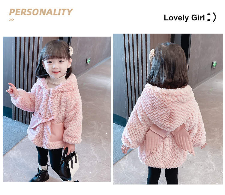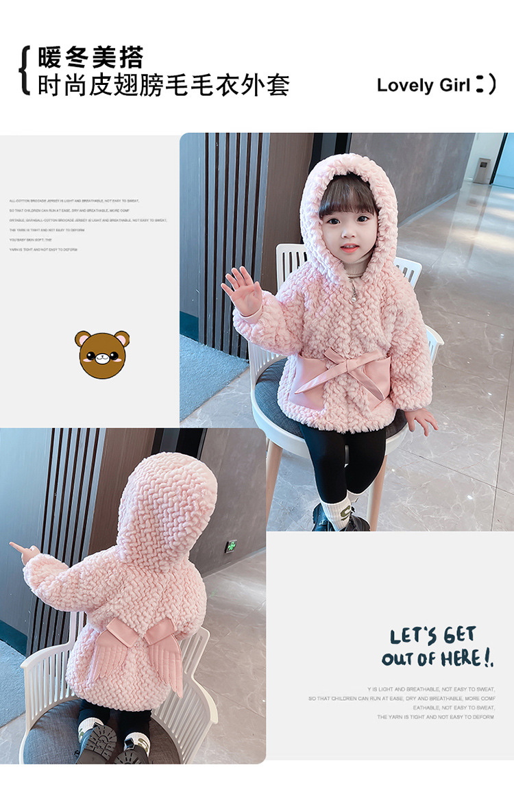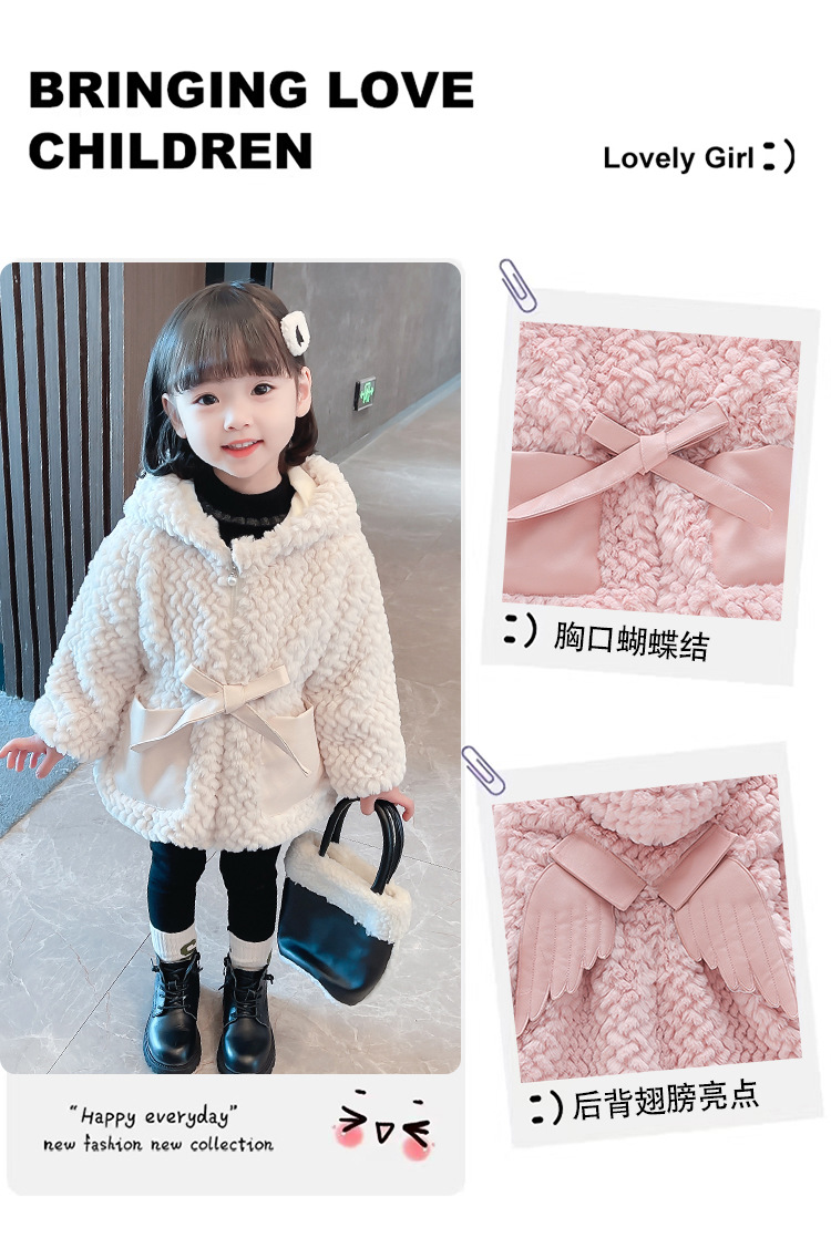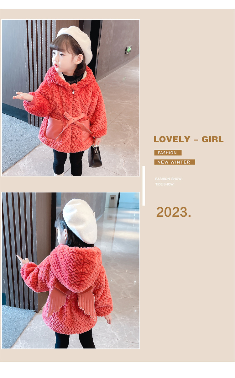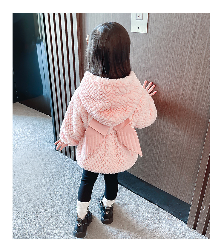 소녀 자수 가죽 날개 모직 스웨터 2024 새로운 패션 아기 소녀 중간 길이 두꺼운 코트 트렌디스토어 가기