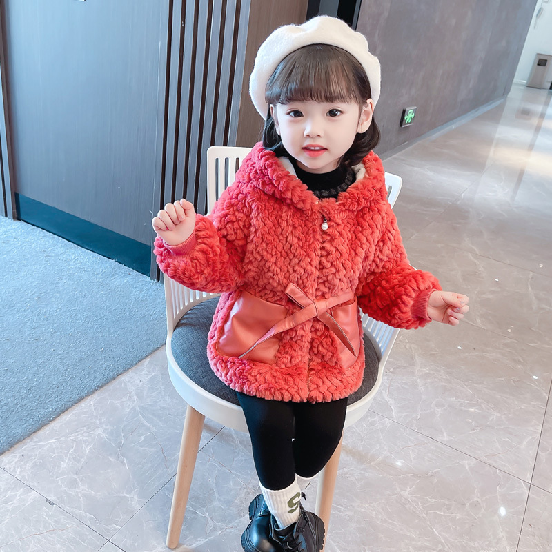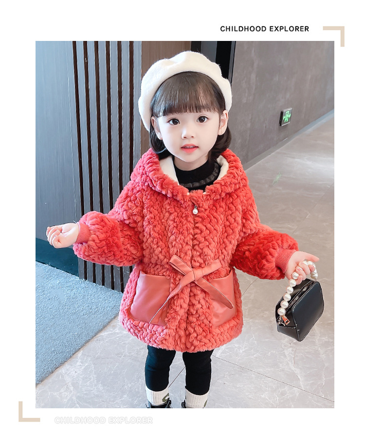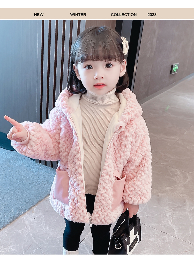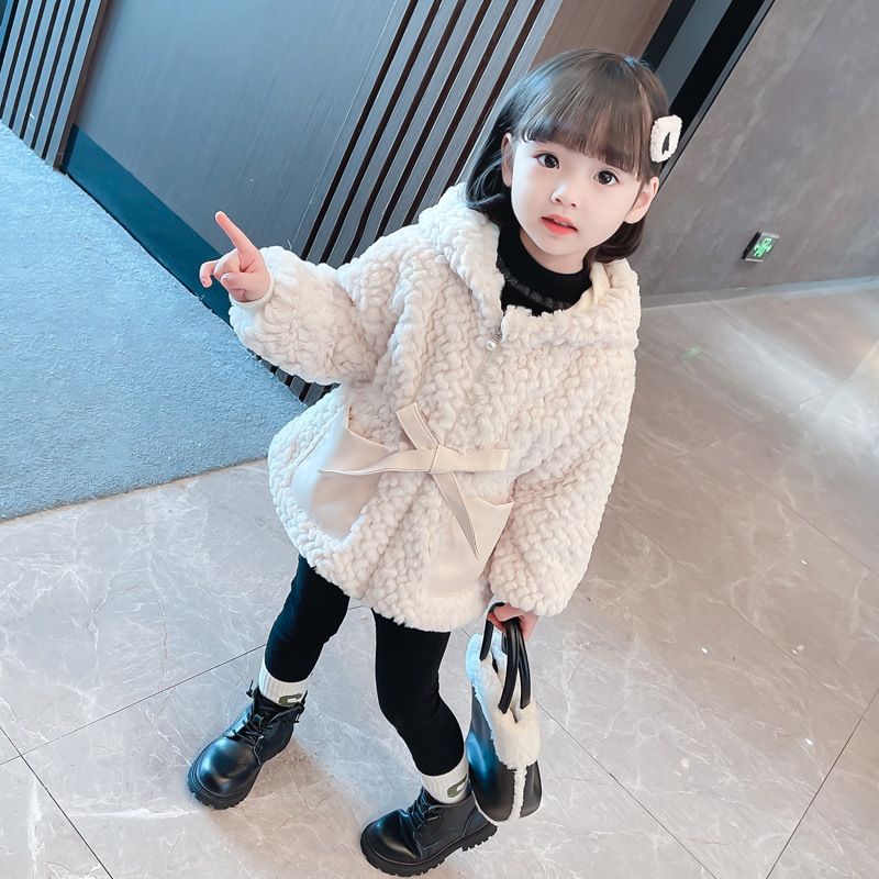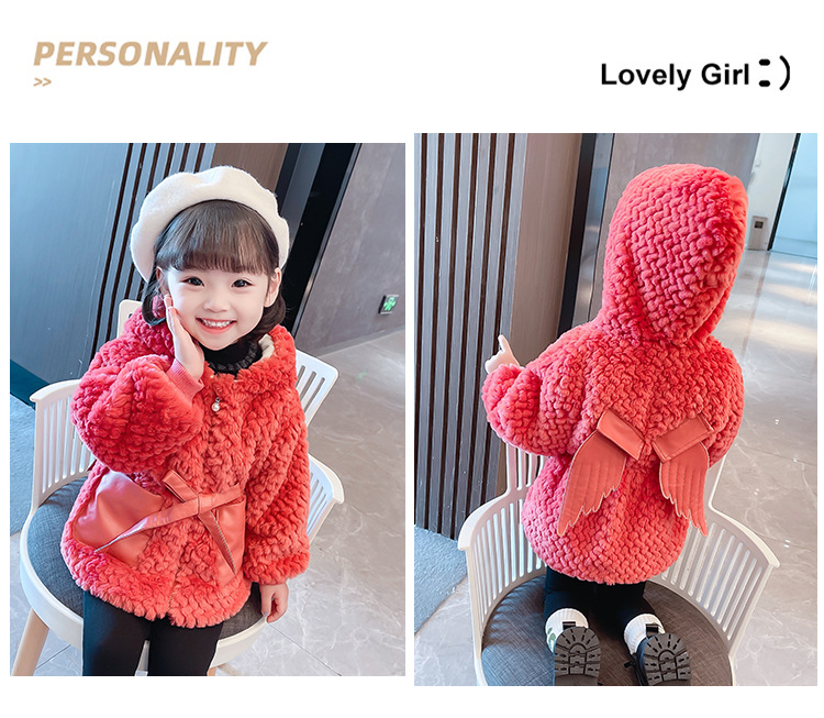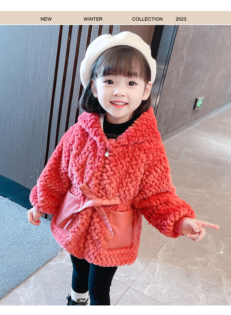 소녀 자수 가죽 날개 모직 스웨터 2024 새로운 패션 아기 소녀 중간 길이 두꺼운 코트 트렌디스토어 가기