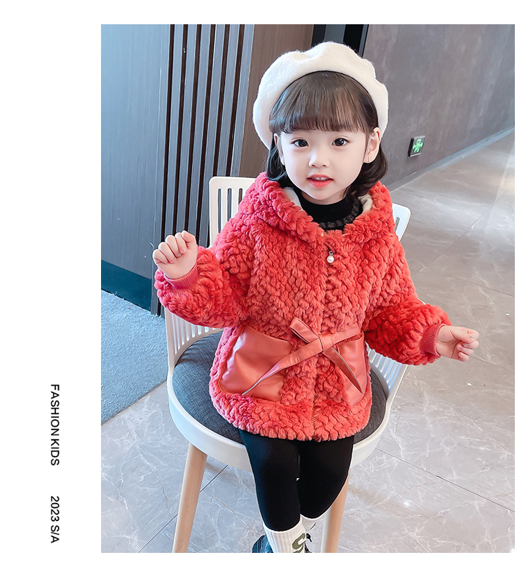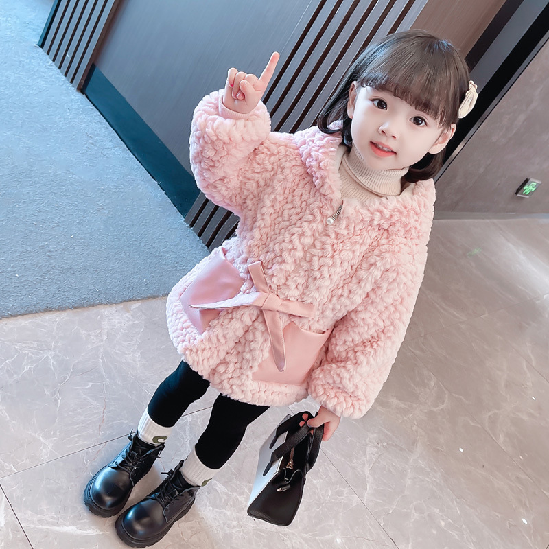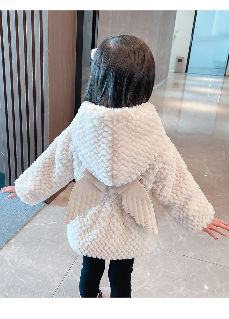 여아 자수 가죽 날개 모피 스웨터 가을 겨울 2025 신상 패션 여아 중간 길이 두꺼운 코트 트렌디