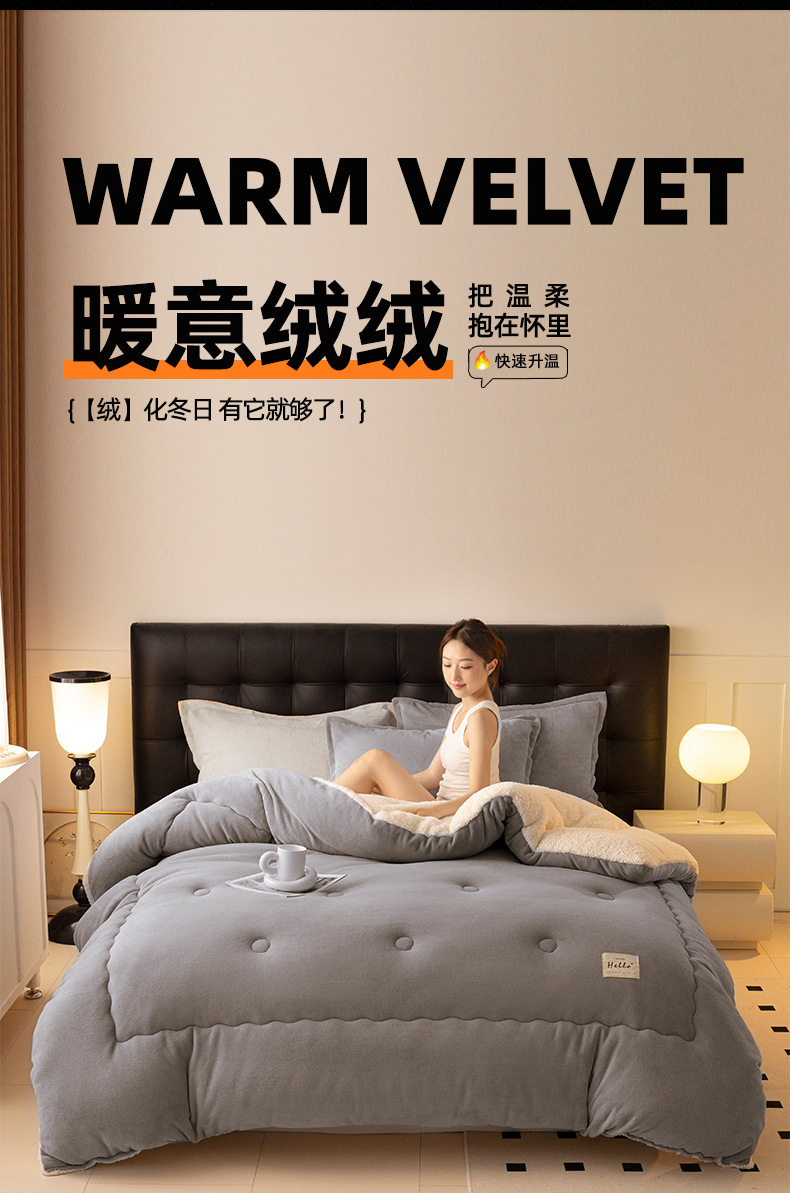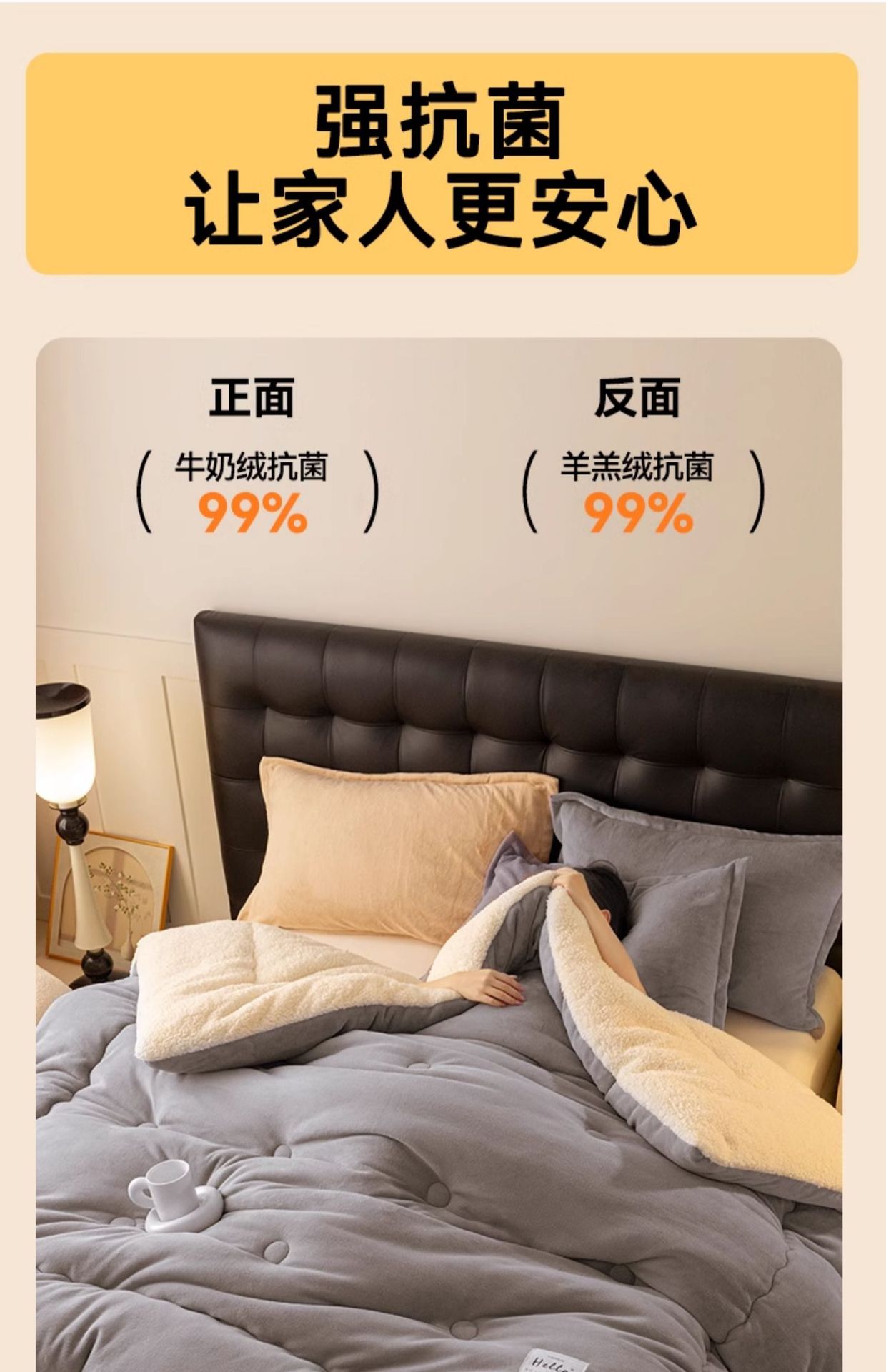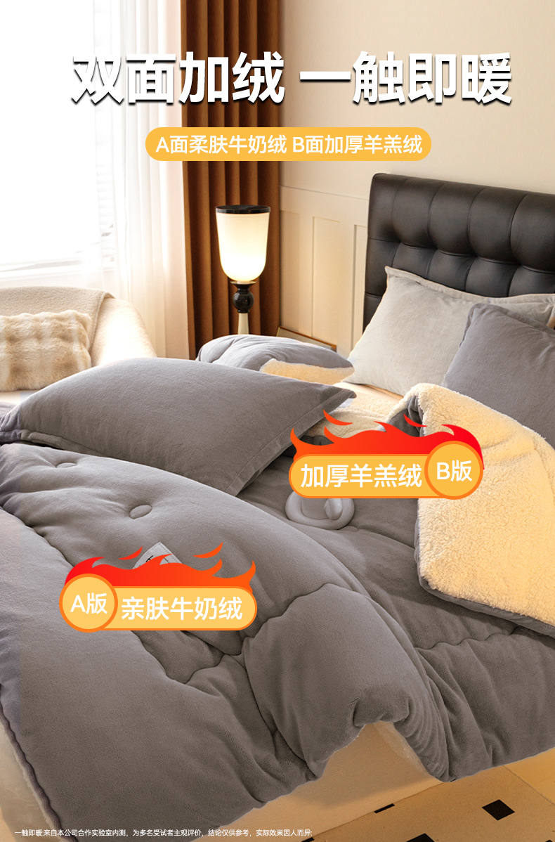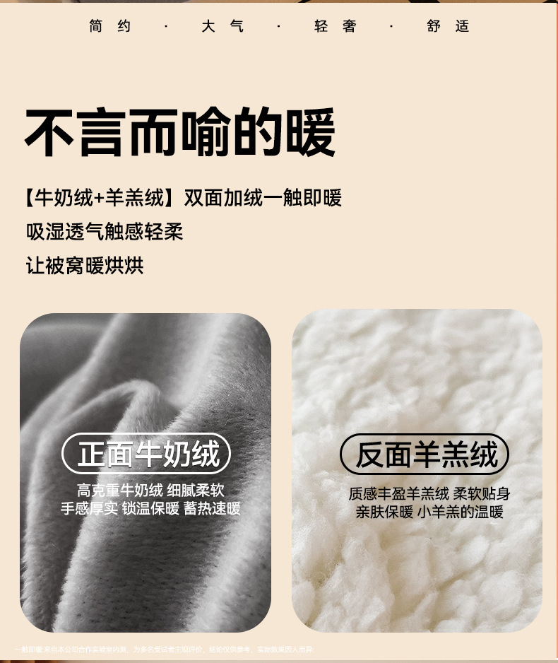 • 고등급 그레이 [A급 항균 밀크 벨벳 + 램스울] 양면 벨벳❤오래 지속되는 온도 잠금