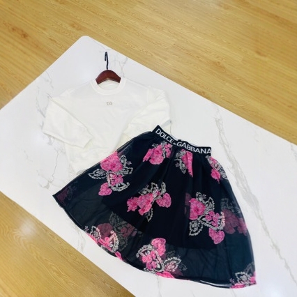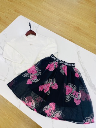 2024 가을과 겨울 재고 새로운 소녀 긴 소매 상단 인쇄 쉬폰 스커트 어린이 세트 도매