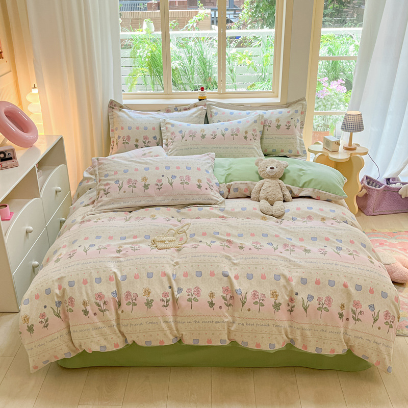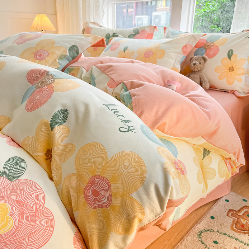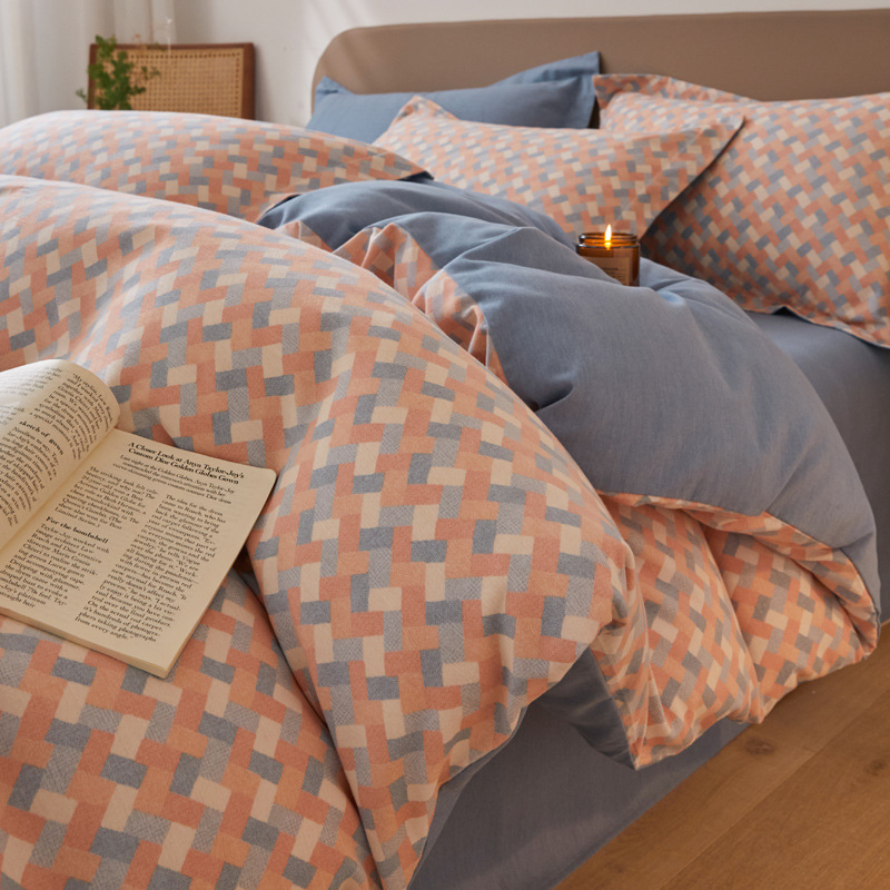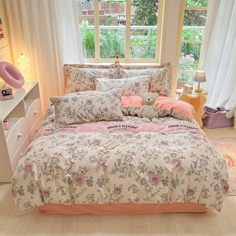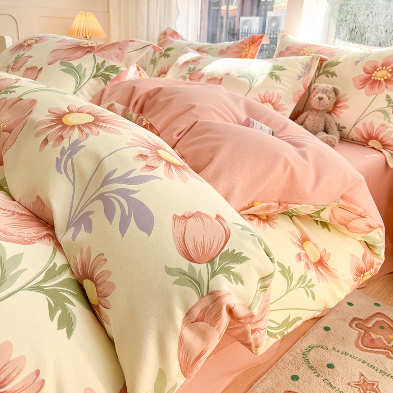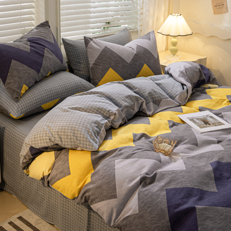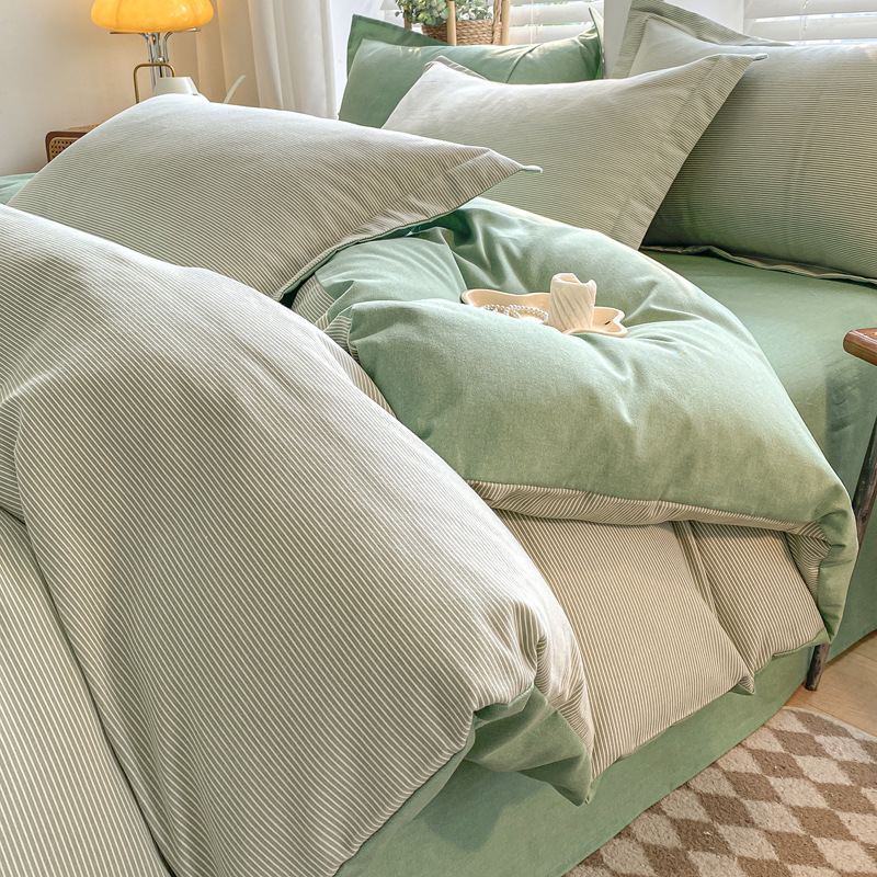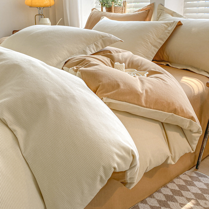 가을과 겨울 코튼 샌딩 4 피스 세트 겨울 두꺼운 코튼 침대 시트 퀼트 커버 3 피스 세트 가정용 침구 키트