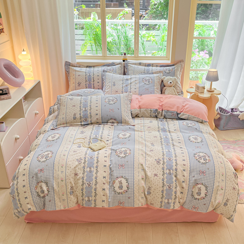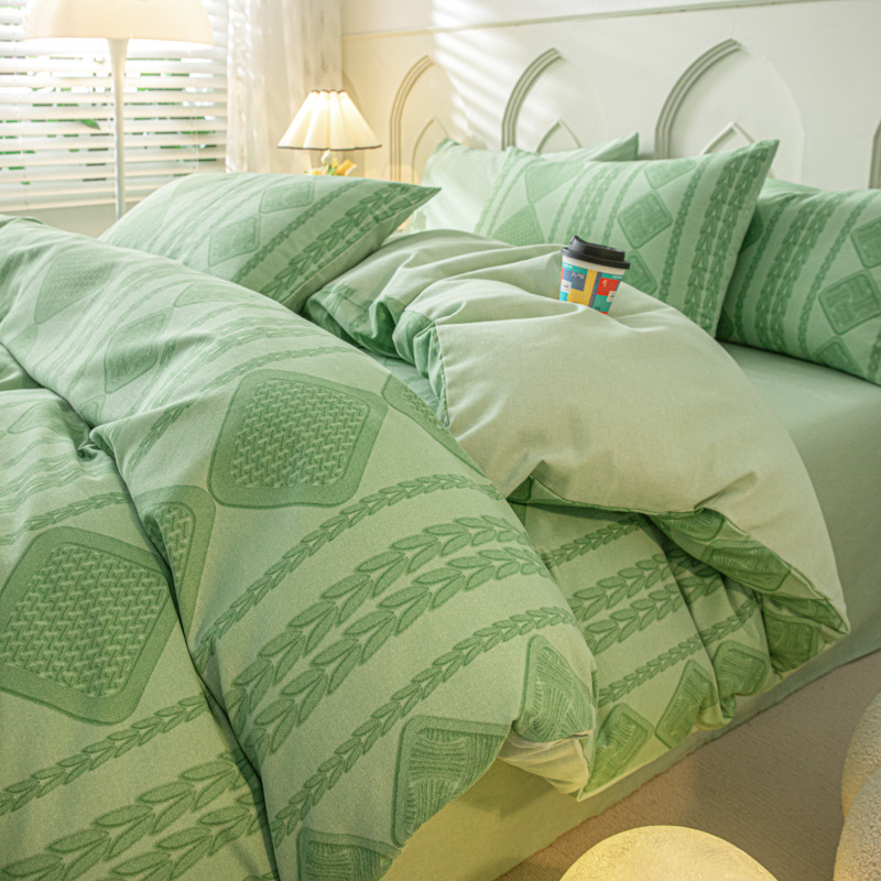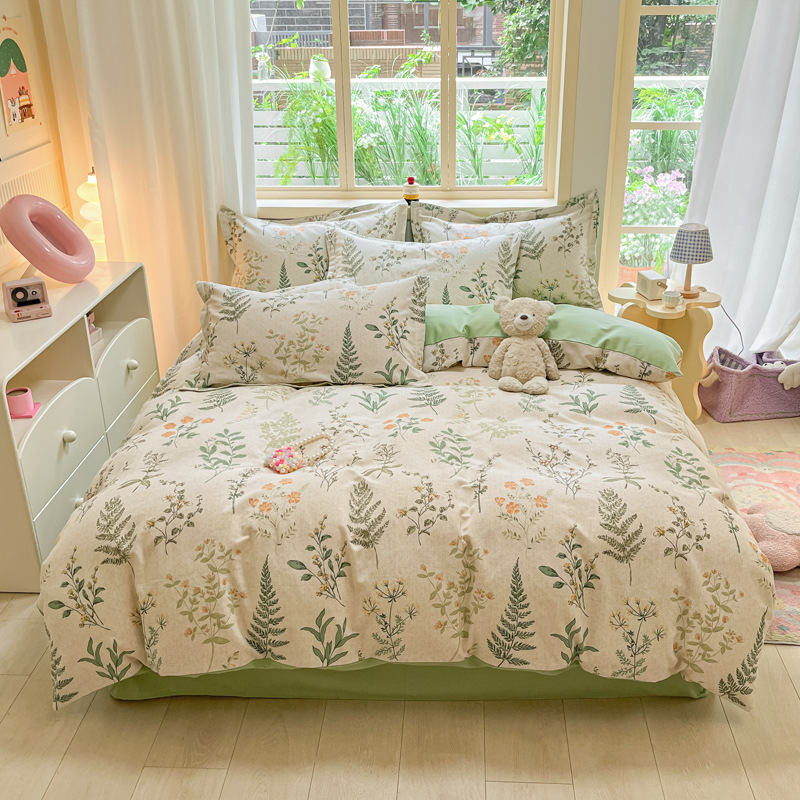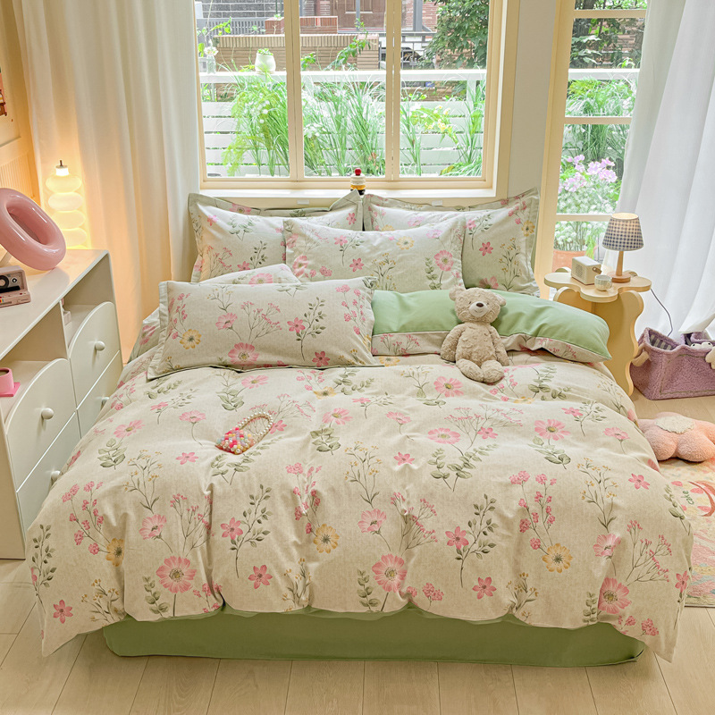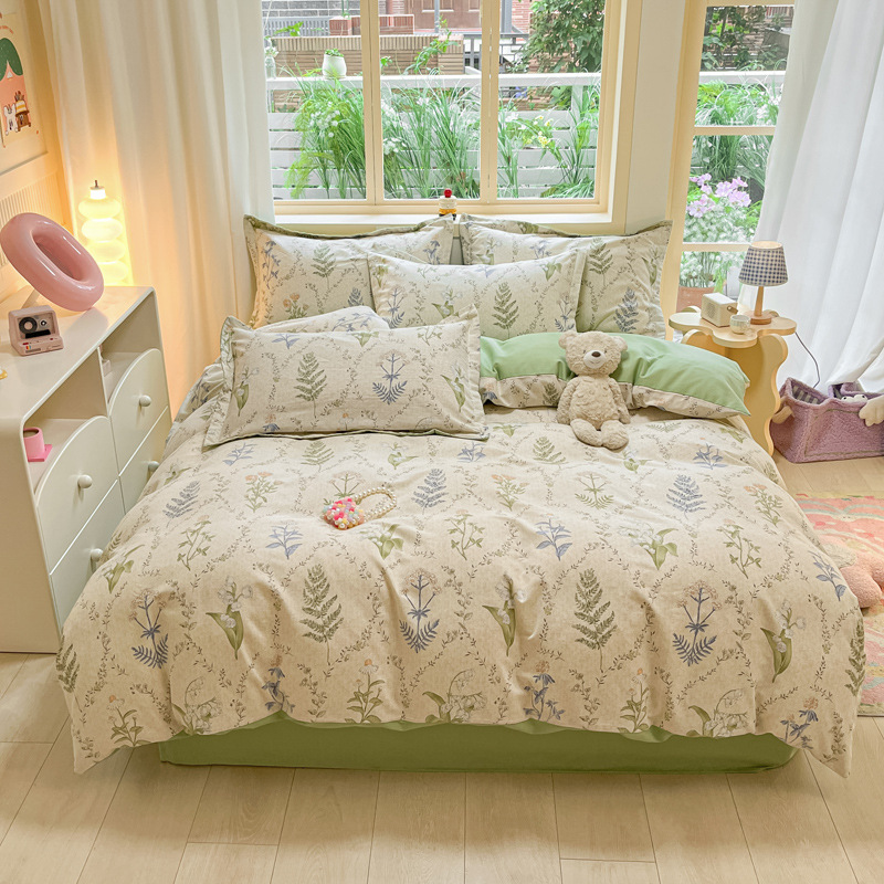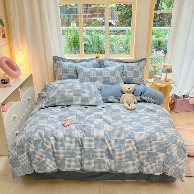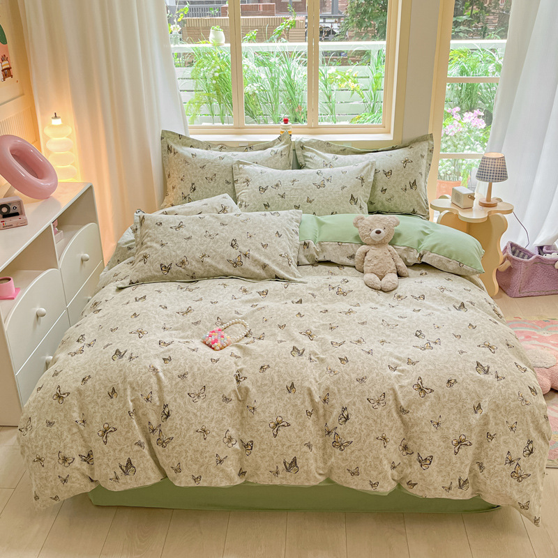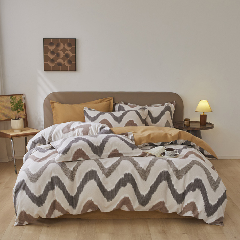 가을과 겨울 코튼 샌딩 4 피스 세트 겨울 두꺼운 코튼 침대 시트 퀼트 커버 3 피스 세트 가정용 침구 키트