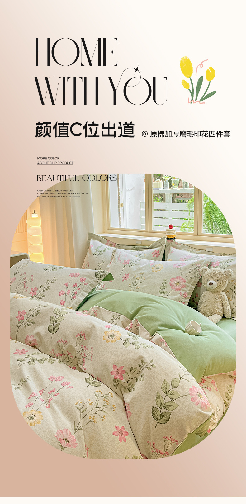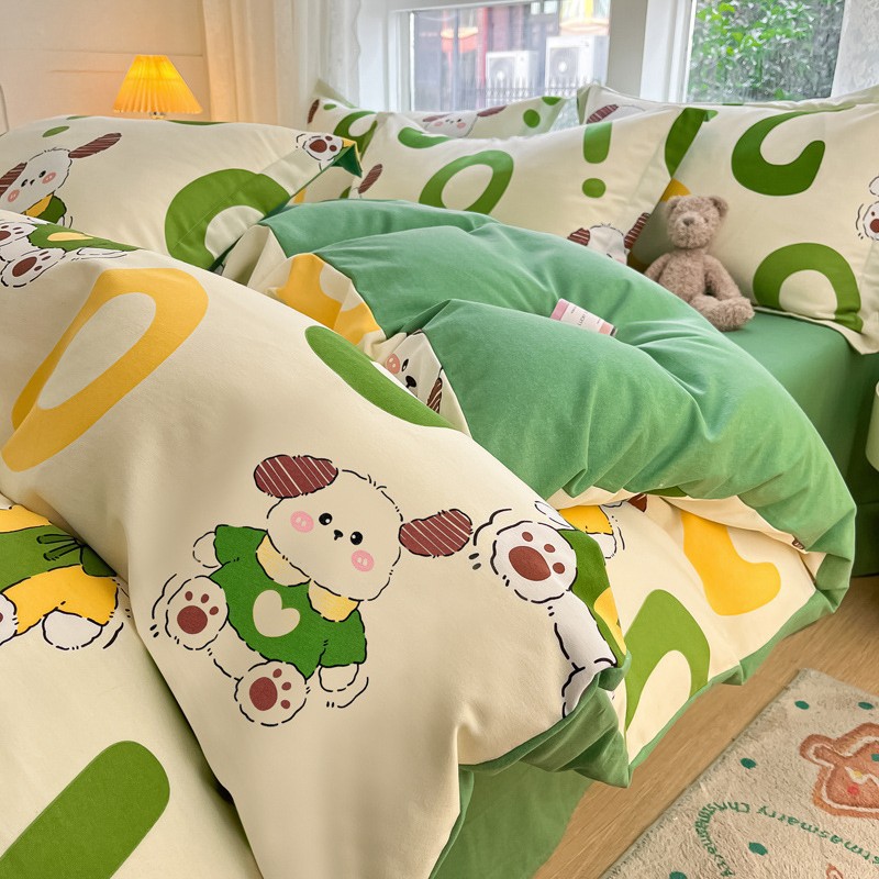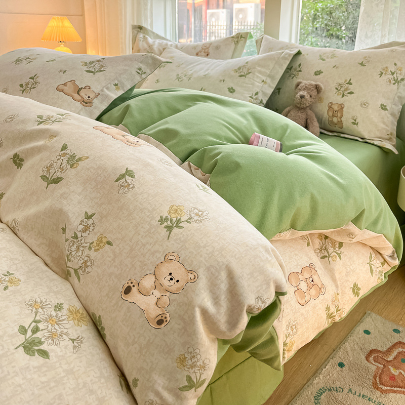 가을과 겨울 코튼 샌딩 4 피스 세트 겨울 두꺼운 코튼 침대 시트 퀼트 커버 3 피스 세트 가정용 침구 키트스토어 가기