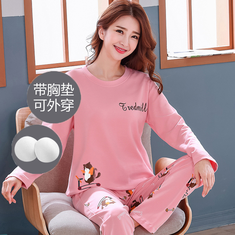 크루 넥 풀오버 파자마 여자 세트 봄 가을 가슴 패드 긴 소매 안티 범프 소녀 의상 홈 의류 가을스토어 가기