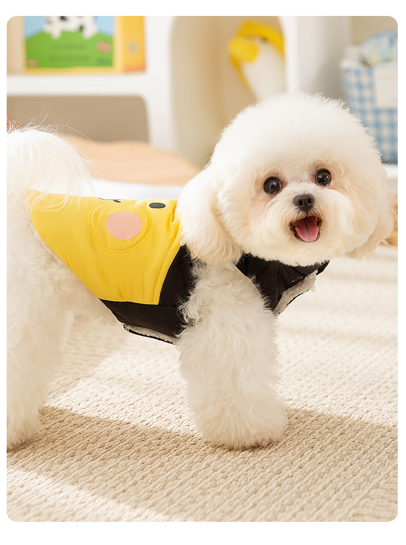 노란색과 검은 색 대비 귀여운 곰 퀼트 면화 조끼 작은 개 가을과 겨울 두꺼운 애완 동물 개 옷 도매