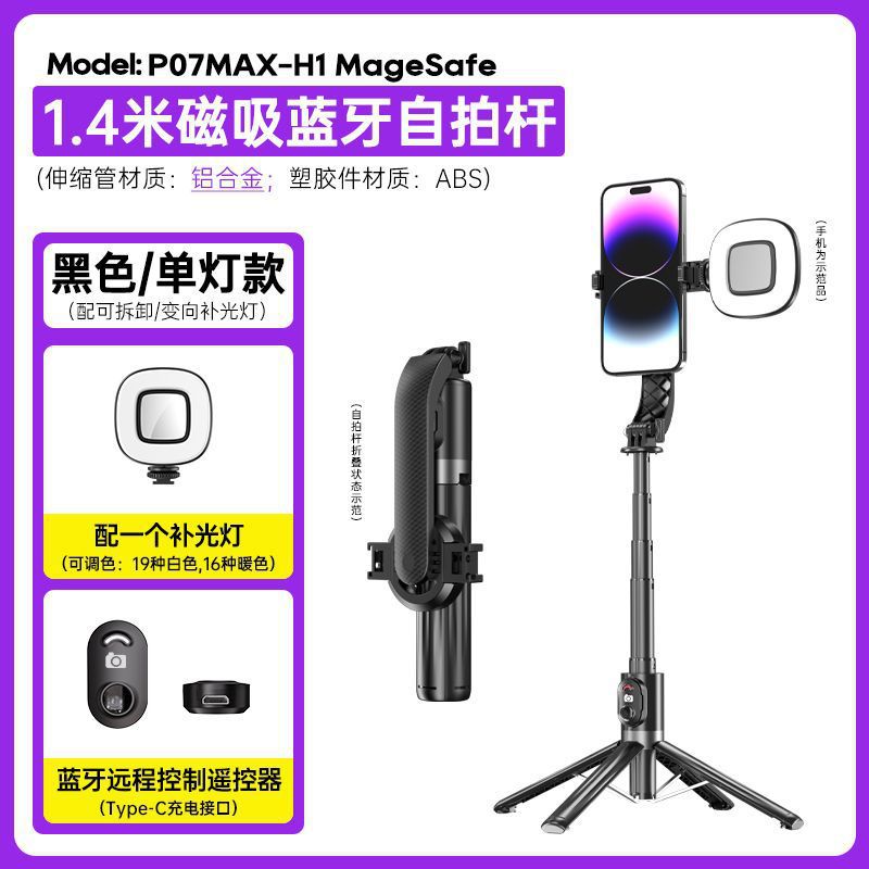 • P07MAX-H1 Magsafe 마그네틱 셀카봉/블랙/싱글라이트