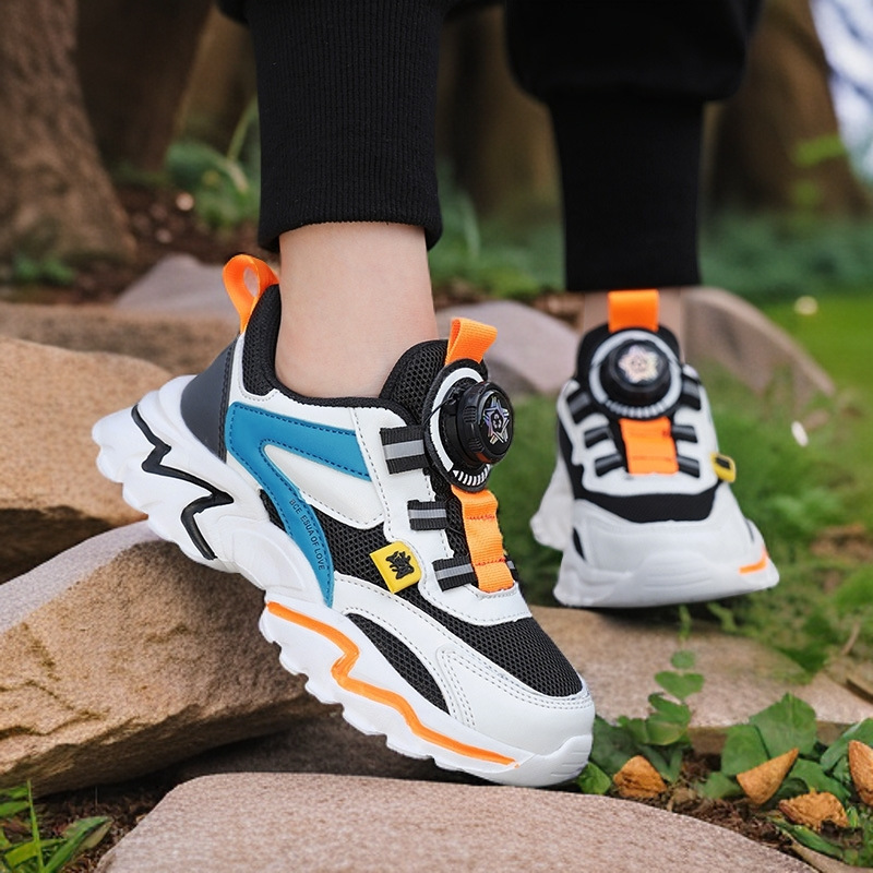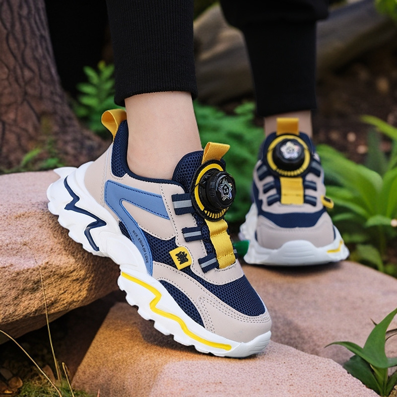 소년 신발 2024 봄 메쉬 통기성 새로운 대형 어린이 운동화 소년 회전 버클 어린이 신발 조수