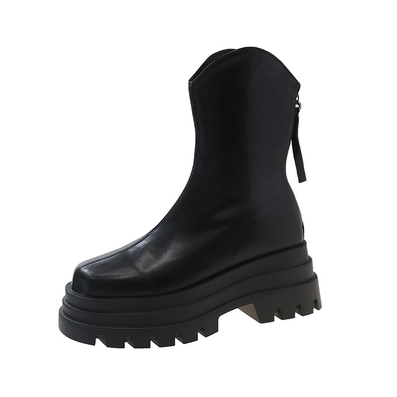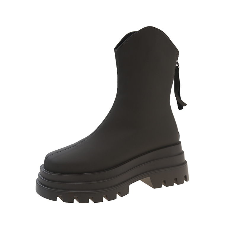 솔리드 컬러 리어 지퍼 패션 부츠 여성 2024 가을 및 겨울 새로운 두꺼운 밑창 긴 여성용 부츠 한국 유행 여성 신발스토어 가기