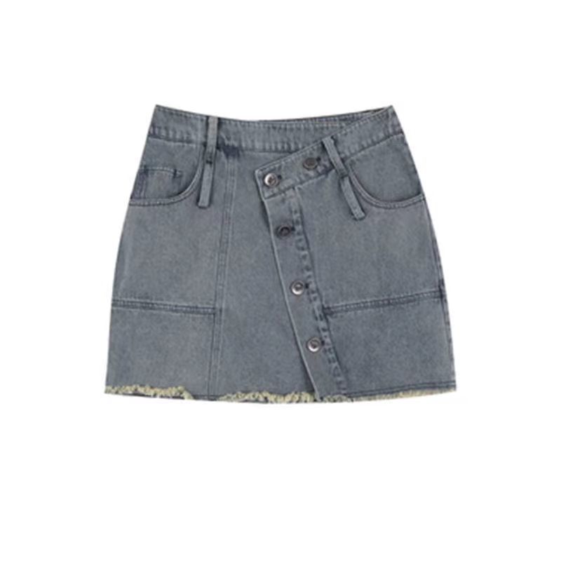재킷 세트 뜨거운 소녀 짧은 치마 거리 파괴 청바지 초가을 2024 새로운 불규칙한 헴 세척 데님스토어 가기